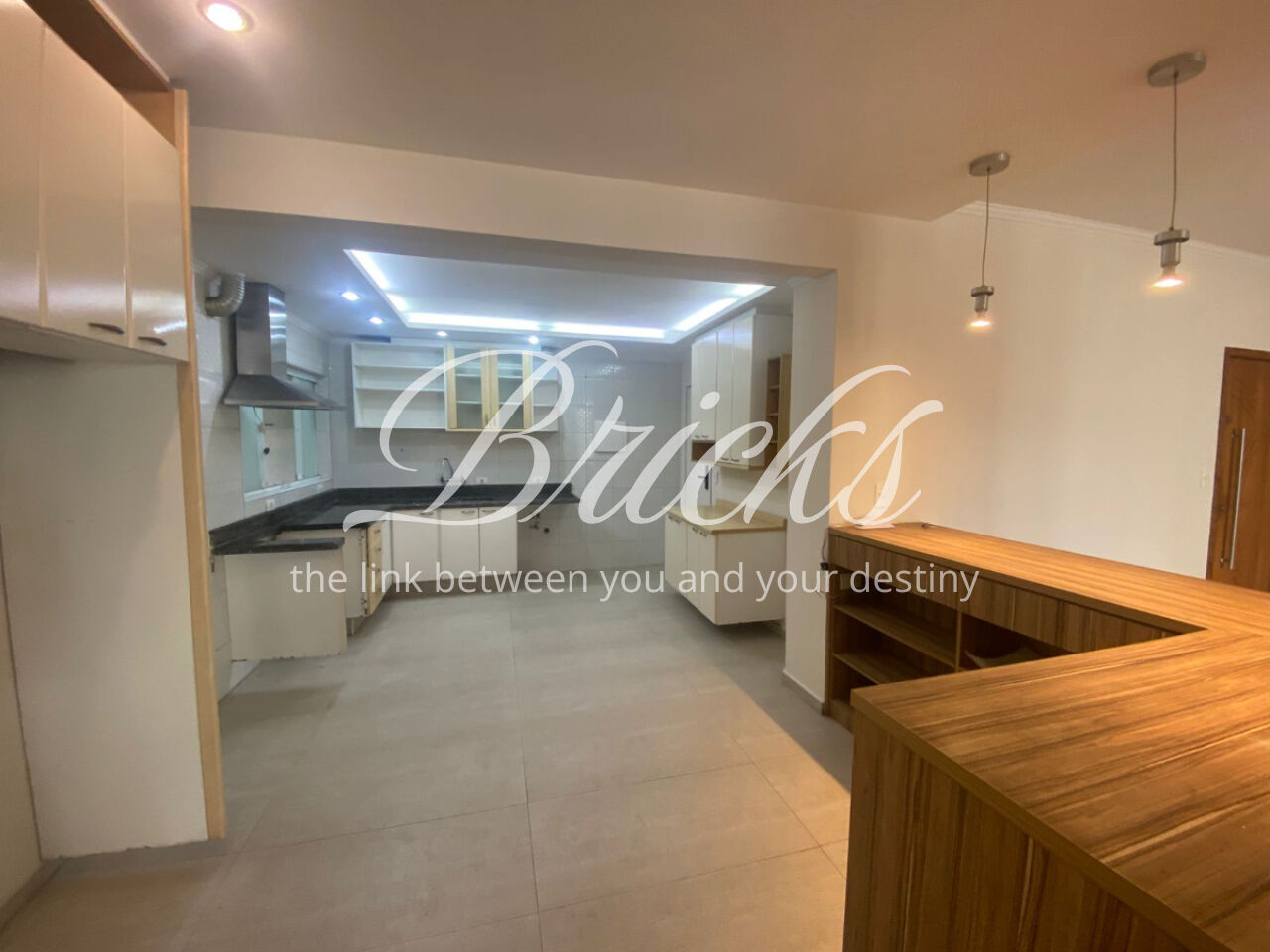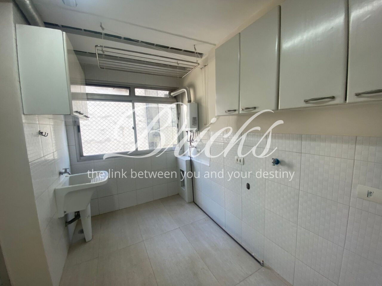 A cozinha é ampla e bem distribuída, com lavanderia ventilada, banheiro de serviço e quarto de apoio, mantendo toda a área funcional bem organizada.