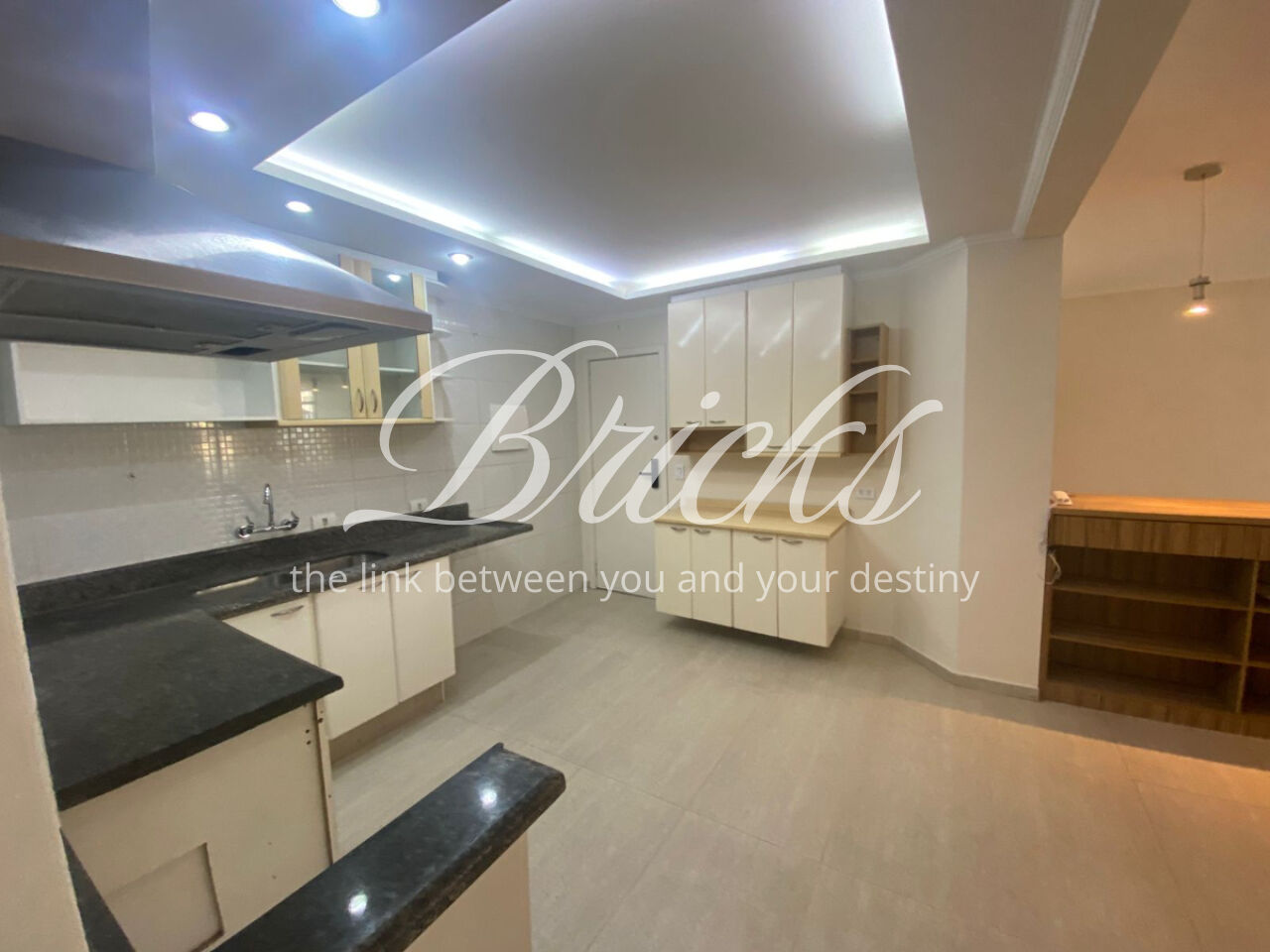 A parede que divide a sala da cozinha não é estrutural, o que abre a possibilidade de criar um living integrado, contemporâneo e funcional, perfeito para quem busca praticidade e conforto.