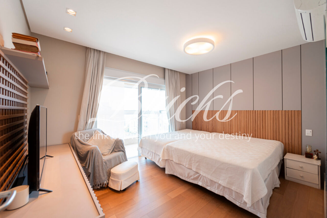 Um imóvel com apenas cinco anos de construção, que une arquitetura contemporânea e alto padrão de acabamento, se destaca não apenas pela disposição inteligente dos espaços, mas também pelo nível de atenção aos detalhes. A cozinha é totalmente equipada, há armários planejados em todos os cômodos, e cada escolha foi feita com extremo cuidado. Todas as persianas possuem acionamento elétrico. Além disso, o apartamento conta com ar condicionado nos principais ambientes, hall privativo com fechadura eletrônica, porta de serviço blindada e a comodidade de seis vagas de garagem e um depósito privativo no subsolo. Tudo isso, com uma localização em andar alto, garantindo privacidade, luminosidade e uma paisagem urbana de tirar o fôlego.