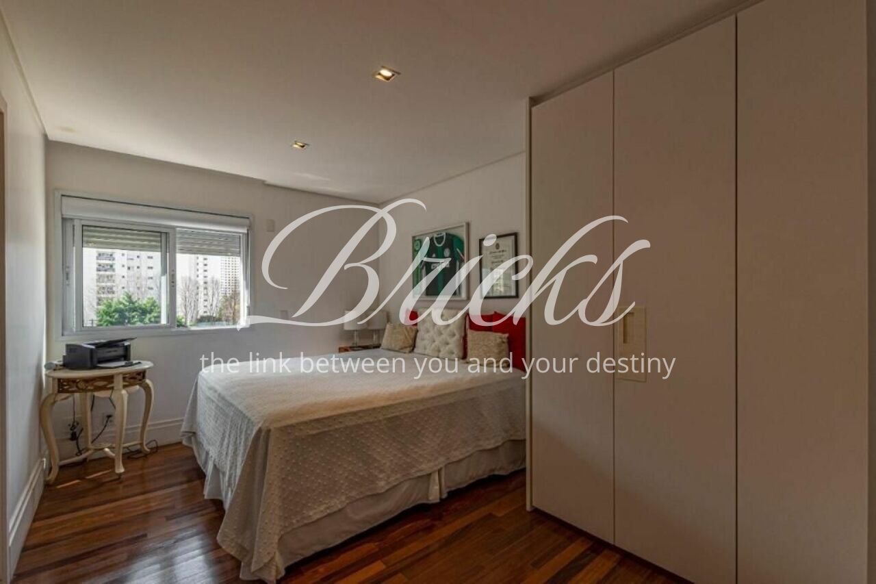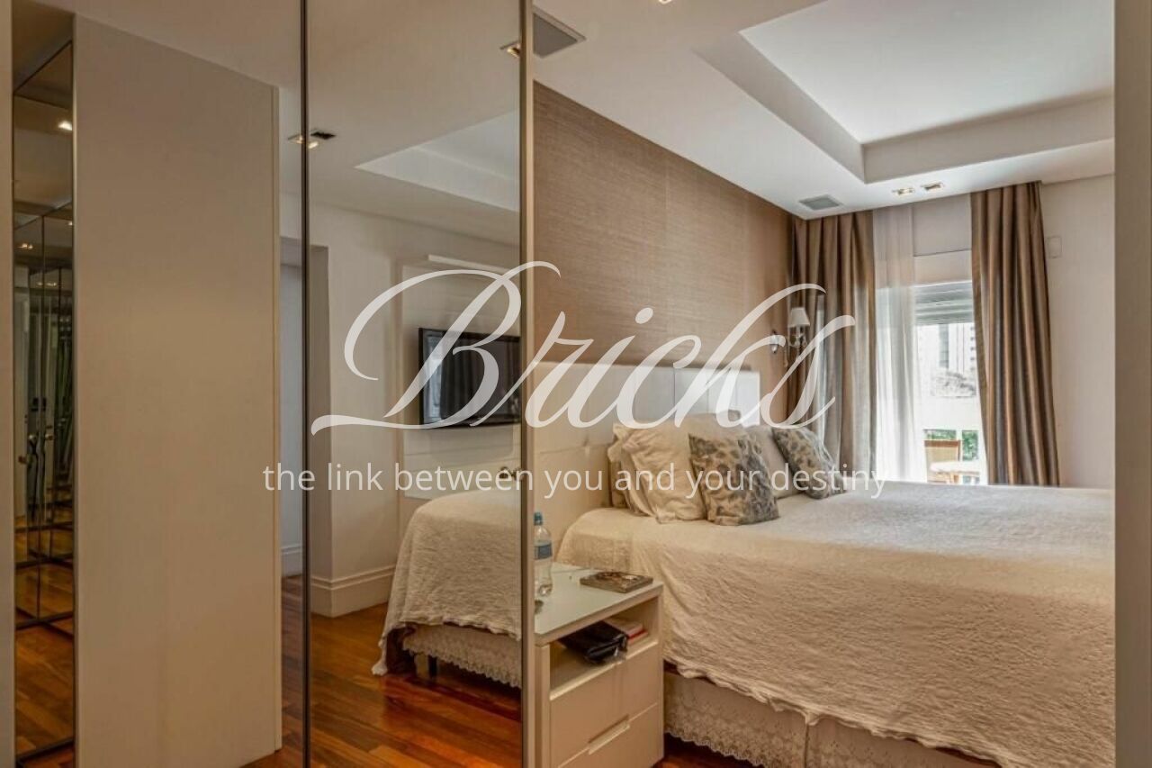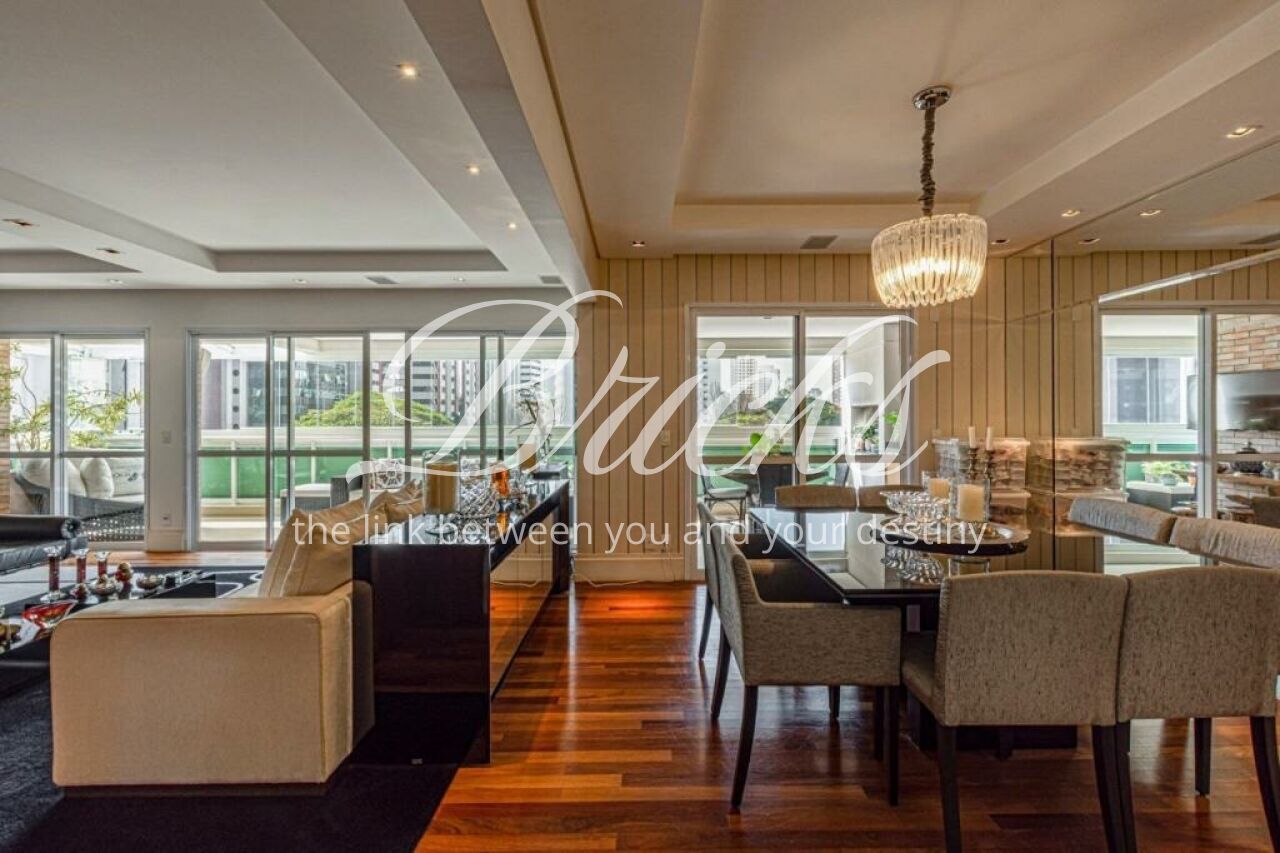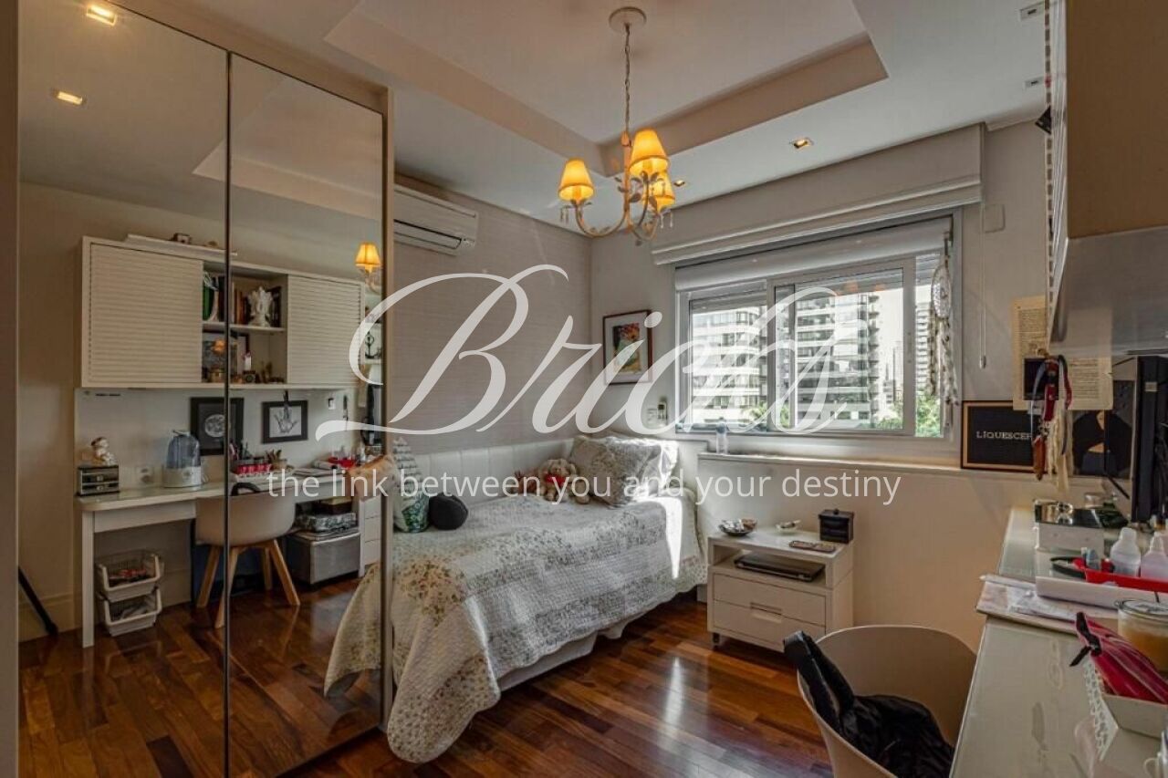 Ótimo apartamento de 239m2, 4 suítes e 4 vagas situado em um dos melhores e mais procurados condomínios da tipologia no Brooklin, disponível para ser seu próximo lar! Conta com generoso living para vários ambientes integrados, incluindo hall, estar, sala de tv e de jantar atendido por grande varanda gourmet, sistema de som in-ceiling e iluminação diferenciada em LED. Todas as suítes são espaçosas e servidas por ar condicionado e excelente marcenaria. Sendo a máster com walk-in closet muito bonito, funcional e elegante. A cozinha é um charme, ampla, com ótima iluminação e ventilação natural e marcenaria muito condizente. Toda a parte social e privativa é servida por piso em madeira nobre em ótimo estado. Nos ambientes frios, porcelanatos bem clean. O condomínio oferece piscinas adulto e infantil, academia muito boa, salão de festas, de jogos, brinquedoteca, playground, espaço gourmet, sauna e belíssimos jardins. A torre é de estilo contemporâneo, hiper recuada em relação a tua. Agende sua visita, viva seu novo momento!
