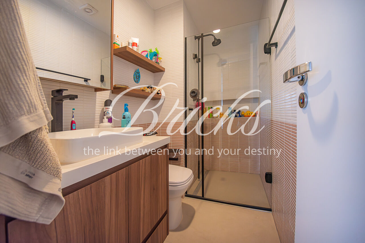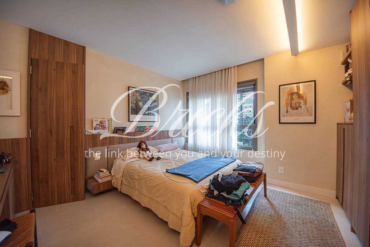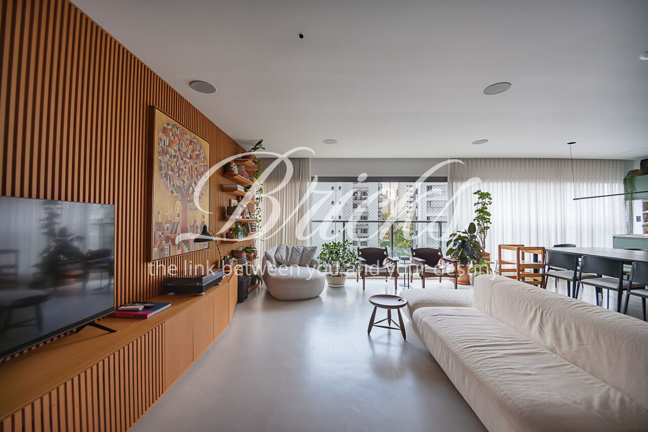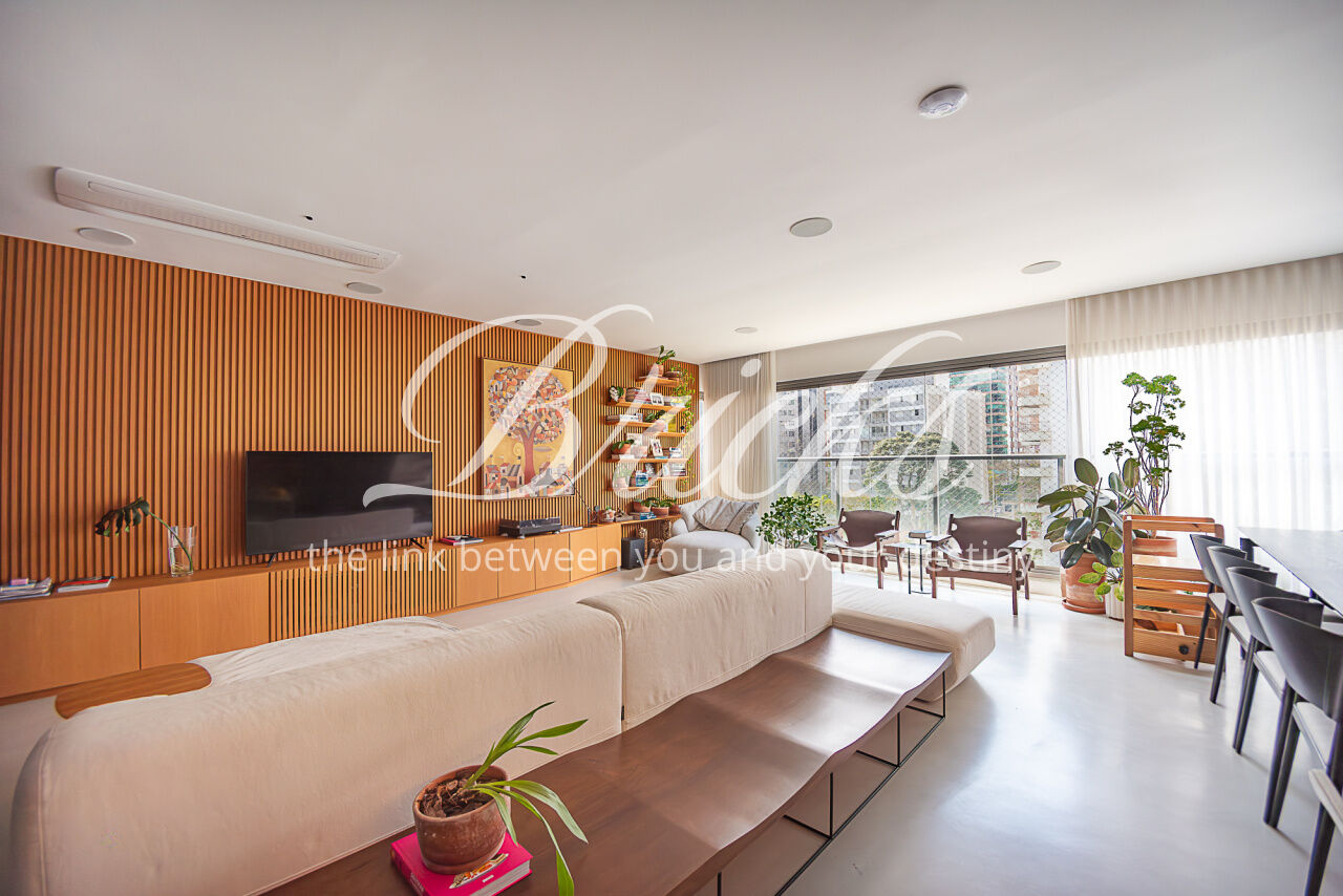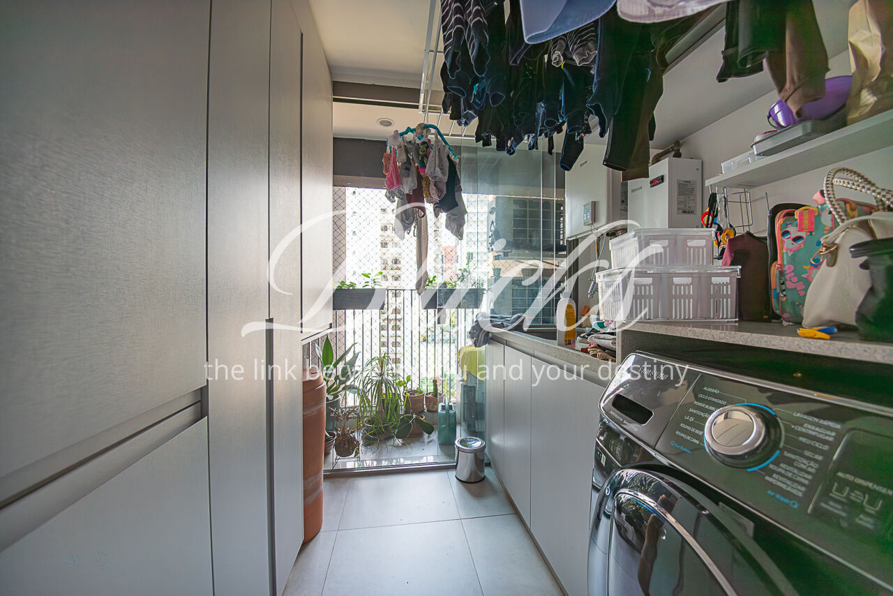 Apartamento localizado no Campo Belo, com área privativa de 143 m². Possui varanda integrada à sala e cozinha, com fechamento em vidro, proporcionando ampla integração entre os ambientes e maior sensação de espaço. São 3 dormitórios, sendo 1 suíte master com cuba dupla, além de lavabo e 2 vagas de garagem fixas. Área de serviço independente. Quarto infantil equipado com cama de visita retrátil.