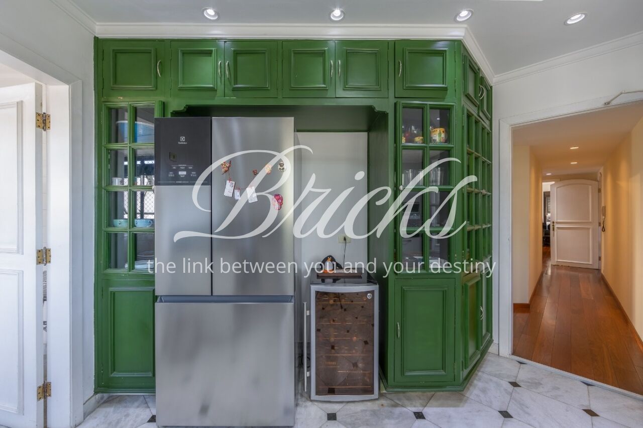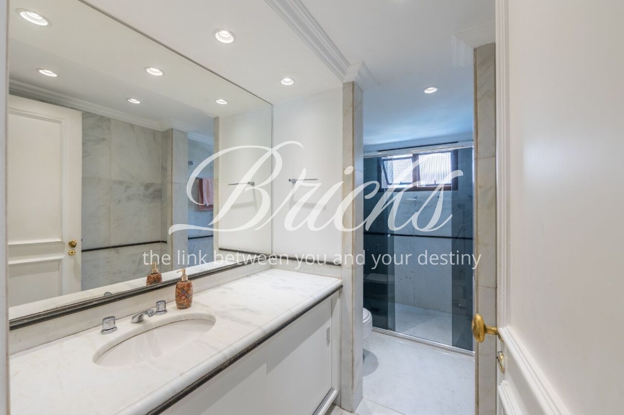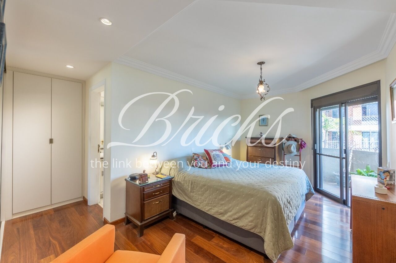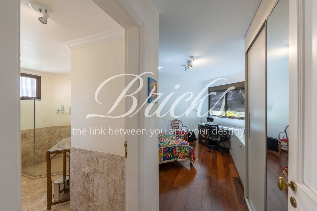 Apartamento com vista privilegiada para a copa das árvores, oferecendo sala ampla para três ambientes, lavabo e terraço generoso. A sala de estar conta com lareira, trazendo aconchego e elegância. A antessala distribui o acesso à área íntima, composta por três suítes com sacada e ar-condicionado, sendo a suíte master equipada com closet. Há ainda uma sala de TV que funciona como quarto adicional, com fácil reversão.