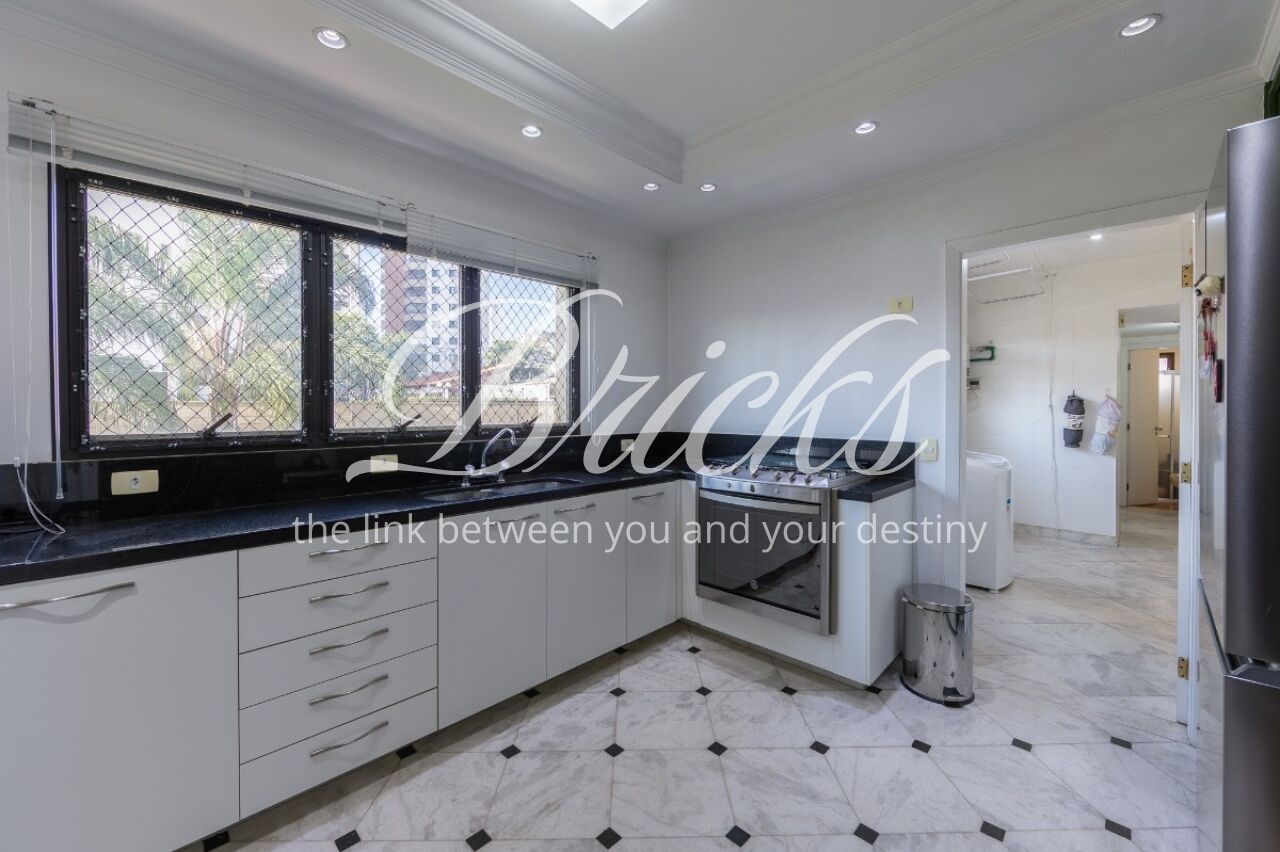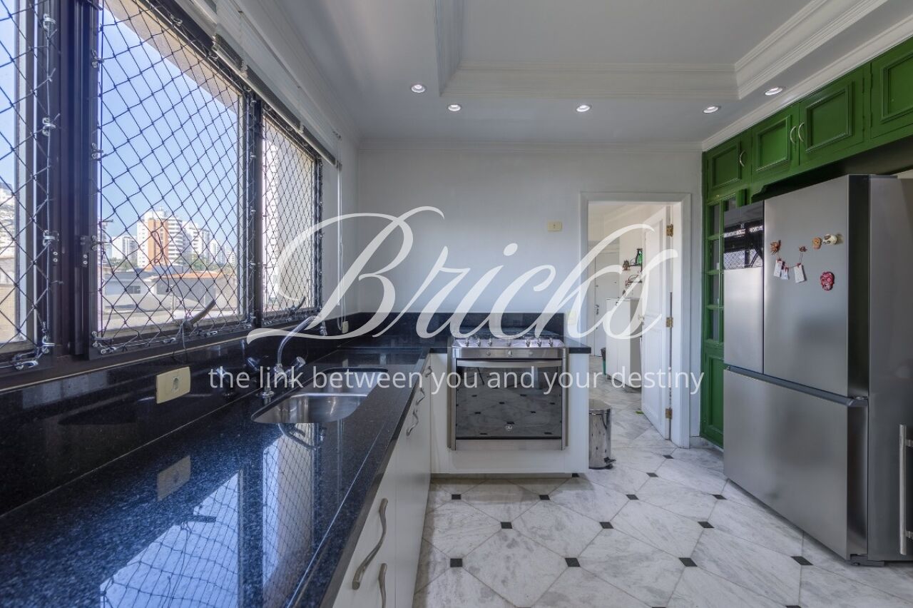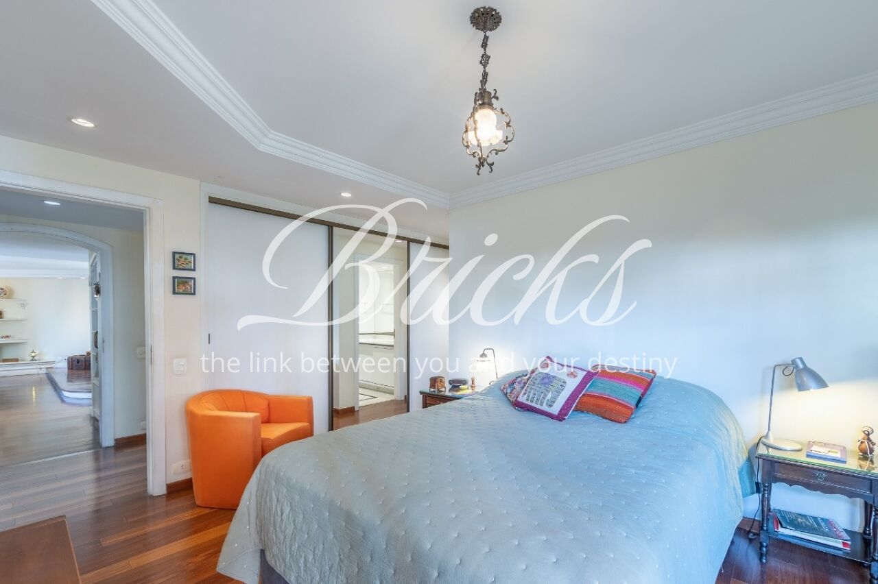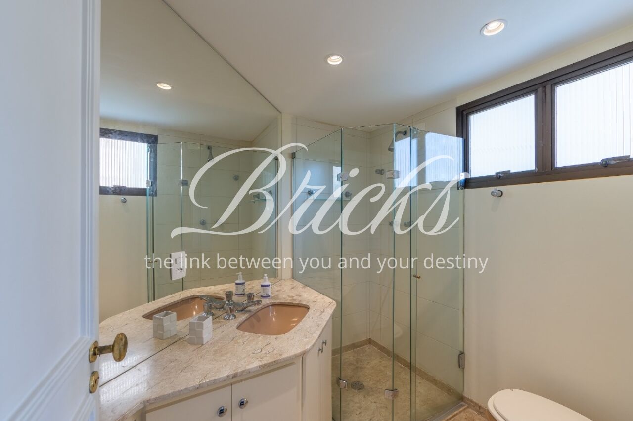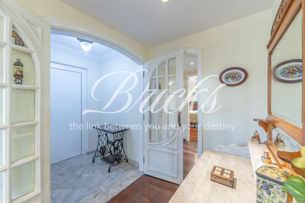 Apartamento com vista privilegiada para a copa das árvores, oferecendo sala ampla para três ambientes, lavabo e terraço generoso. A sala de estar conta com lareira, trazendo aconchego e elegância. A antessala distribui o acesso à área íntima, composta por três suítes com sacada e ar-condicionado, sendo a suíte master equipada com closet. Há ainda uma sala de TV que funciona como quarto adicional, com fácil reversão.