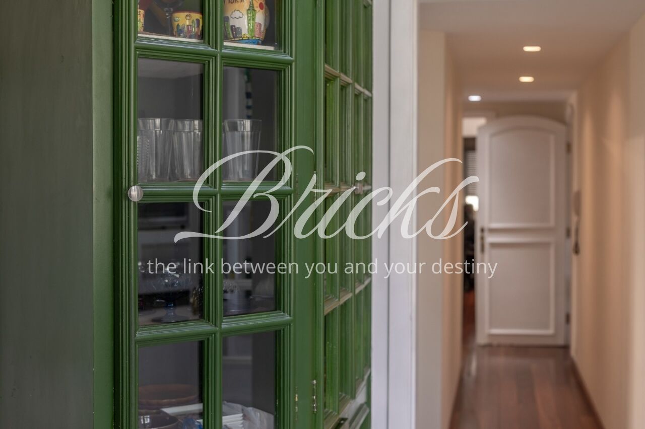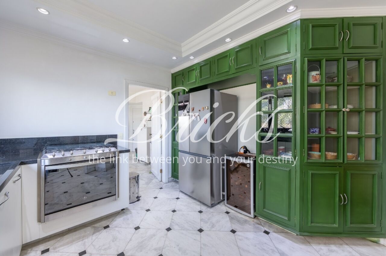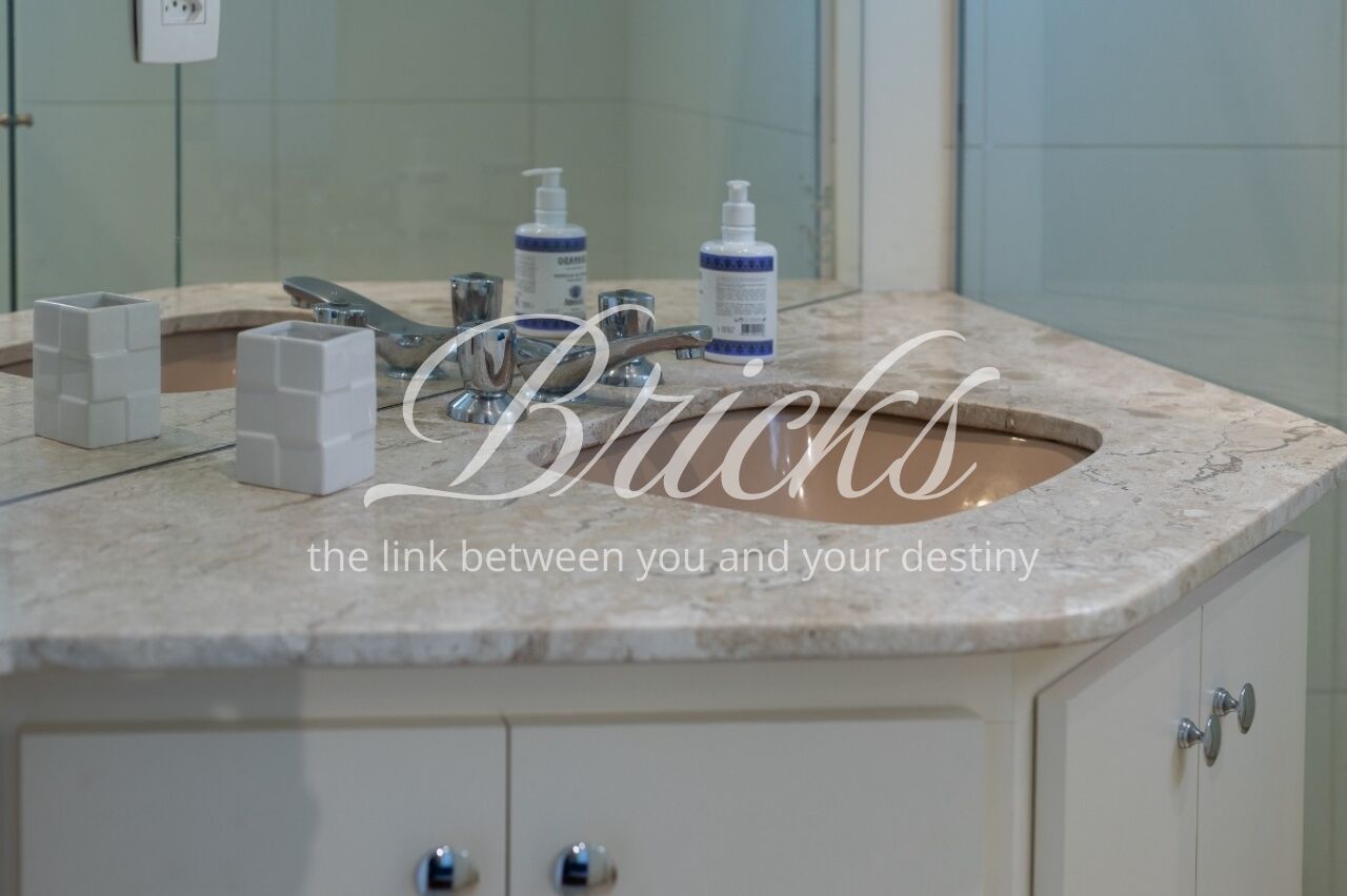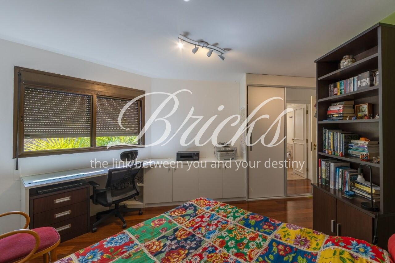 Os ambientes sociais possuem piso em tábuas de madeira, enquanto os banheiros contam com acabamento em granito. A cozinha é ampla, acompanhada de copa, além de duas dependências de empregada com banheiro. Um diferencial do imóvel é a presença de gerador que, além das áreas comuns, alimenta três tomadas internas selecionadas, garantindo maior segurança em eventuais quedas de energia.