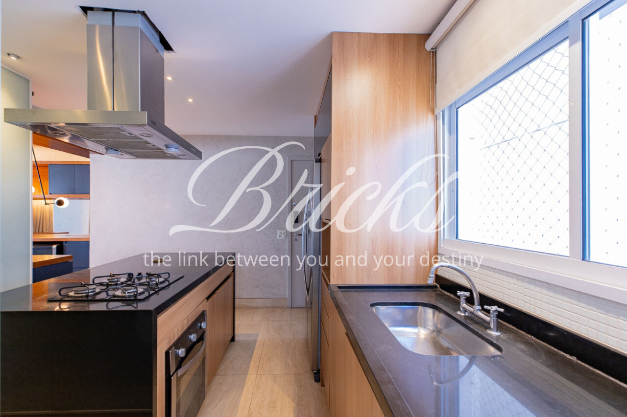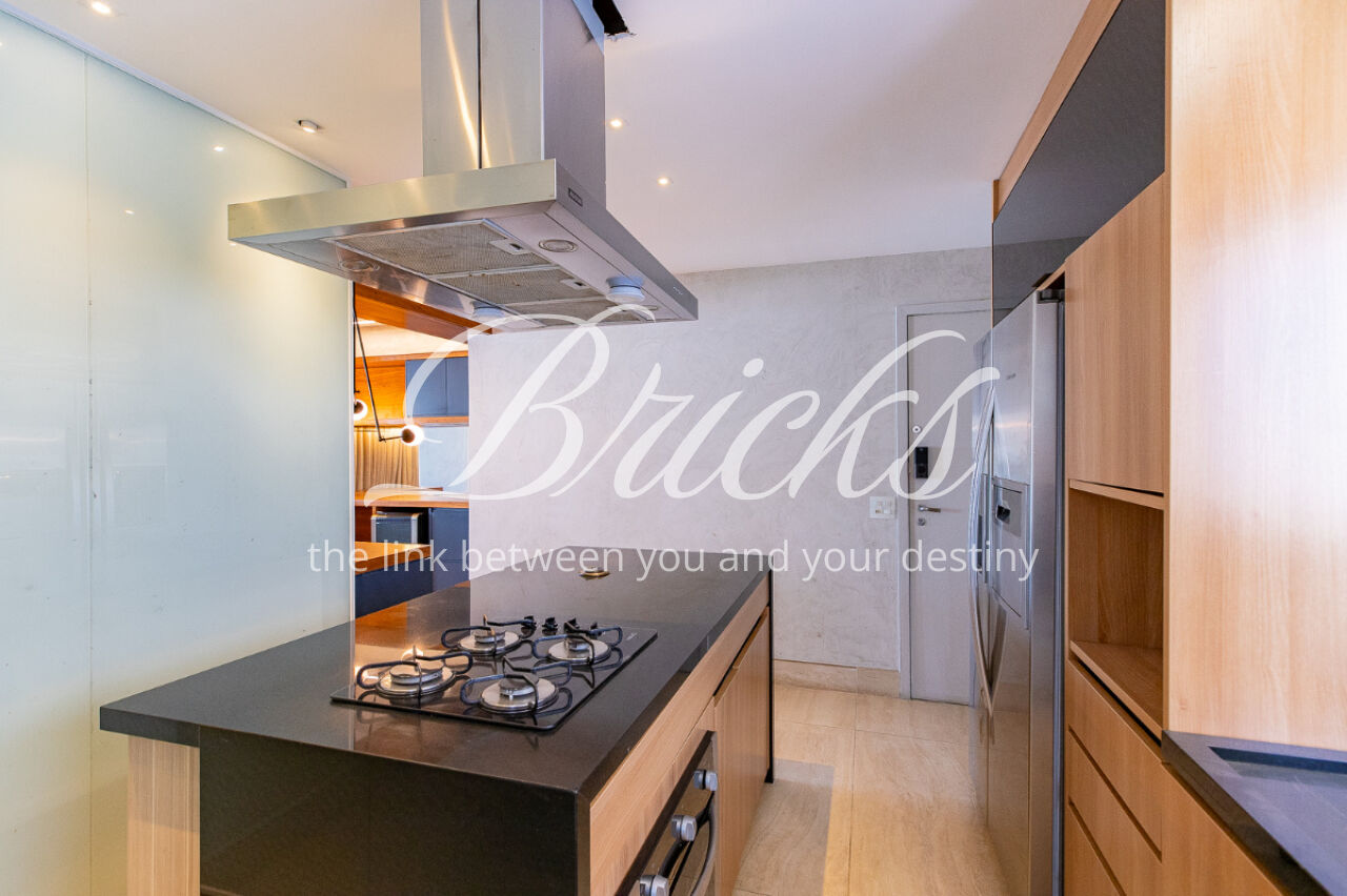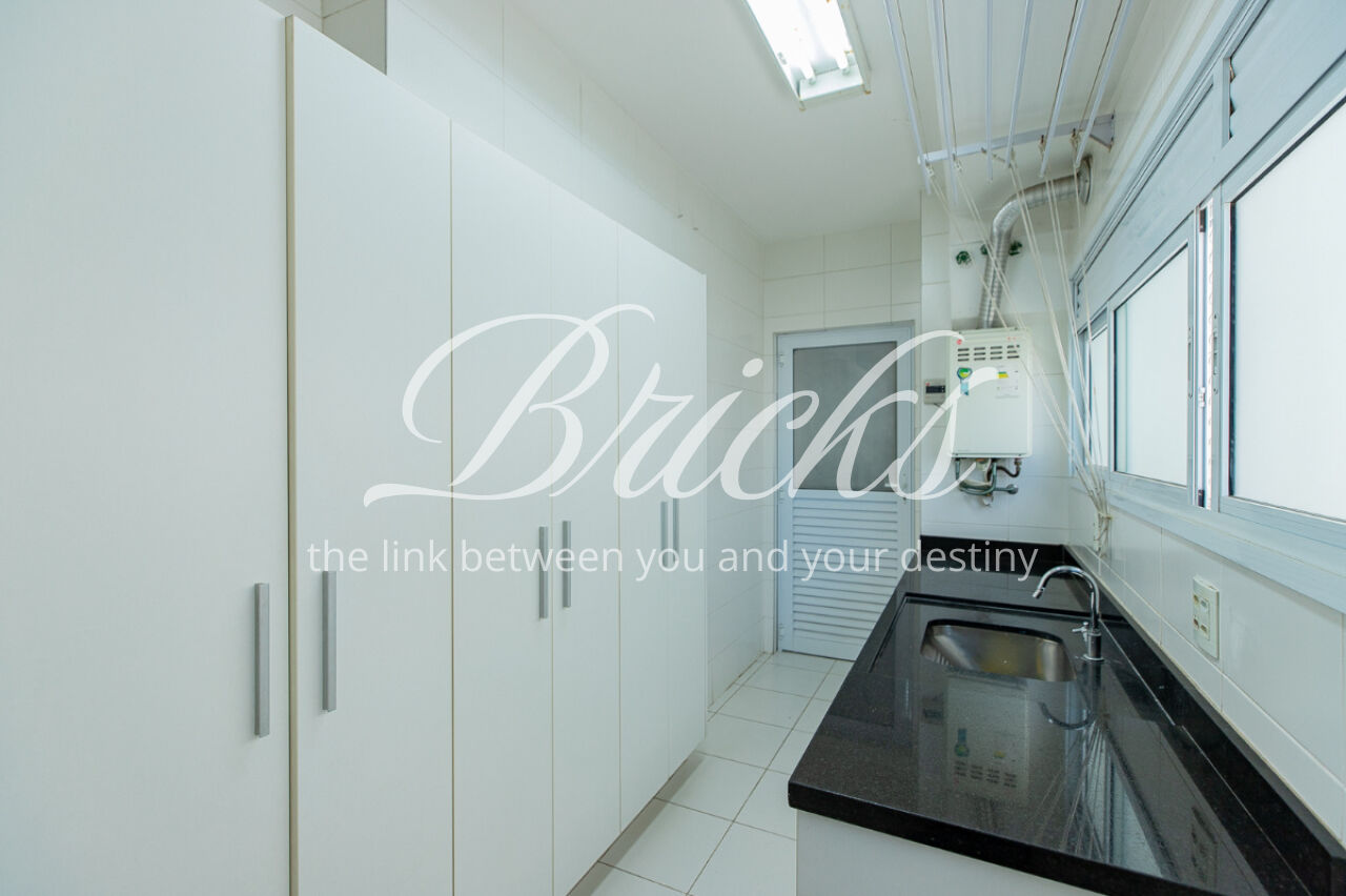 A cozinha é funcional com janelão e está apoiada pela lavanderia, com dependencia para funcionário e passagem íntima.
