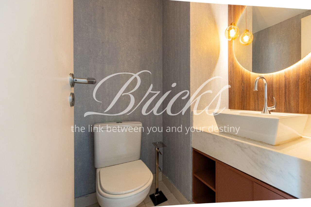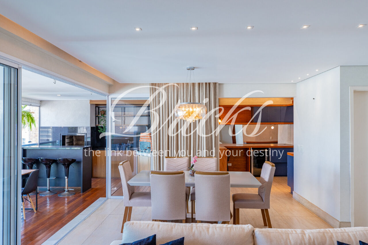 O living para 3 ambientes está totalmente integrado com o terraço gourmet com churrasqueira e forno de pizza, que por sua vez faz integração à sala de almoço e cozinha ( aqui são quase 36 m²). A planta perfeita e funcional. Lavabo.