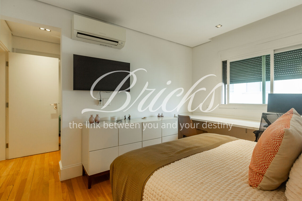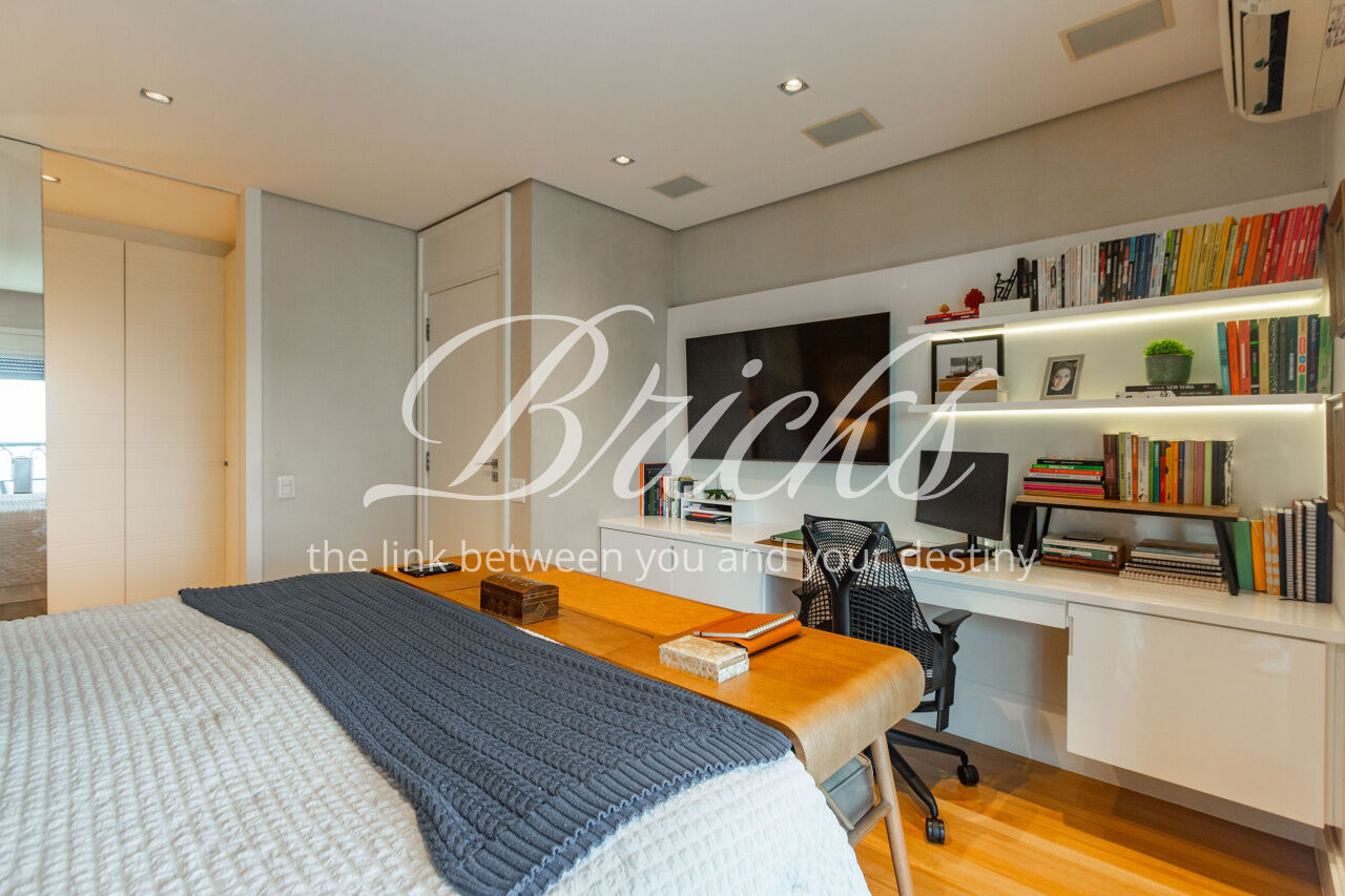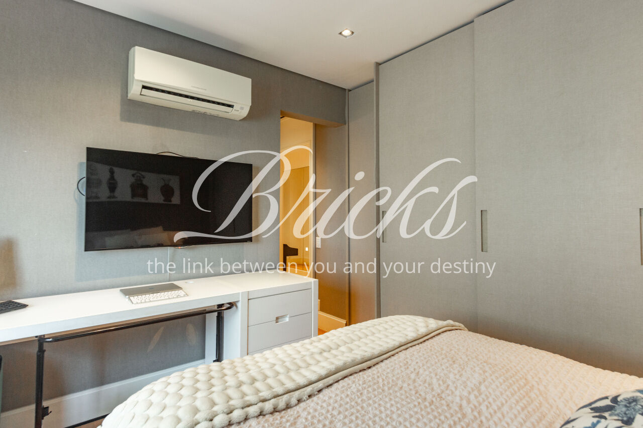 Todas as suítes possuem ar-condicionado e armários Ornare, além de outros detalhes que trazem praticidade e conforto. O apartamento está pronto para receber seus novos moradores e pode ser vendido com todos os móveis.