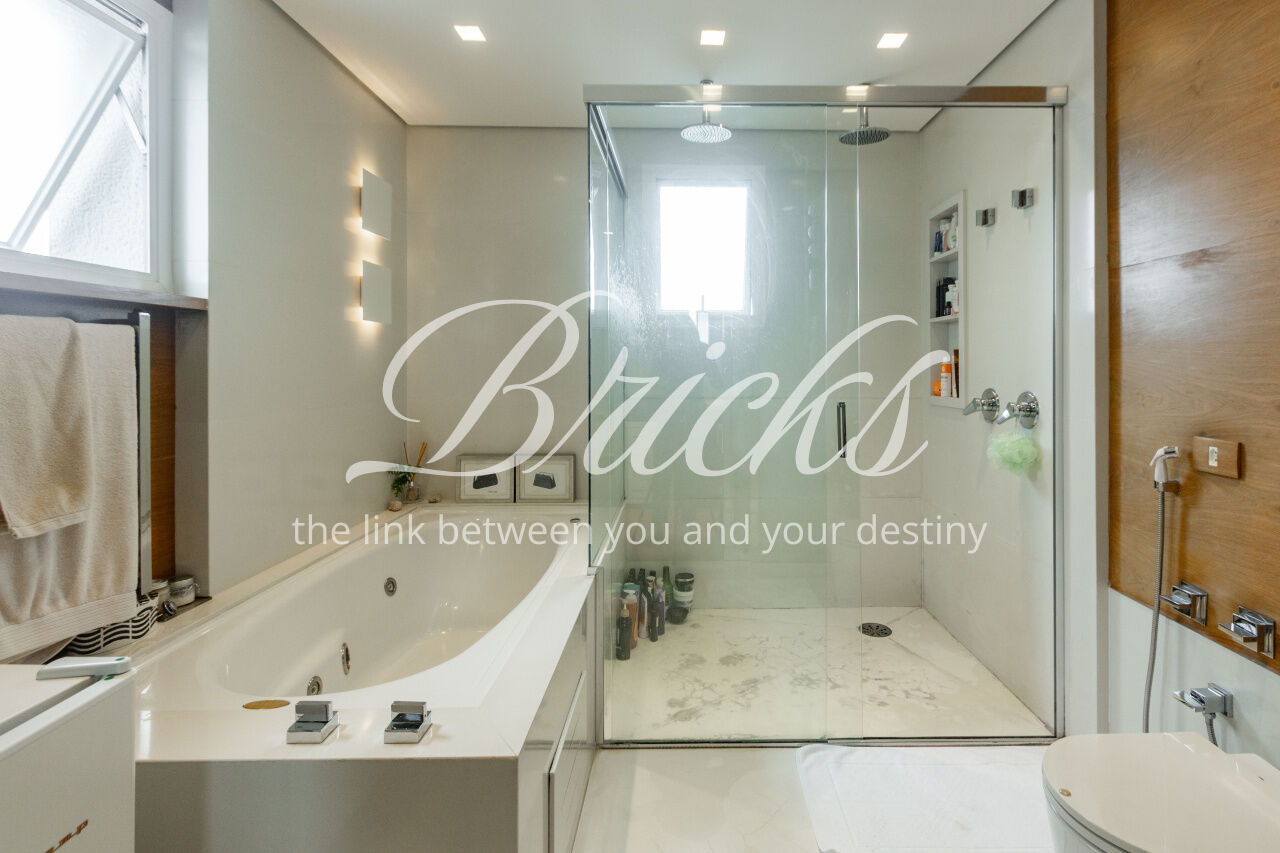 São 4 vagas de garagem, com carregador de carro elétrico e um depósito no subsolo. O condomínio, possui piscina externa, academia, jardins, salão de festas, churrasqueira, portaria 24h, além de gerador que atende todos os apartamentos.