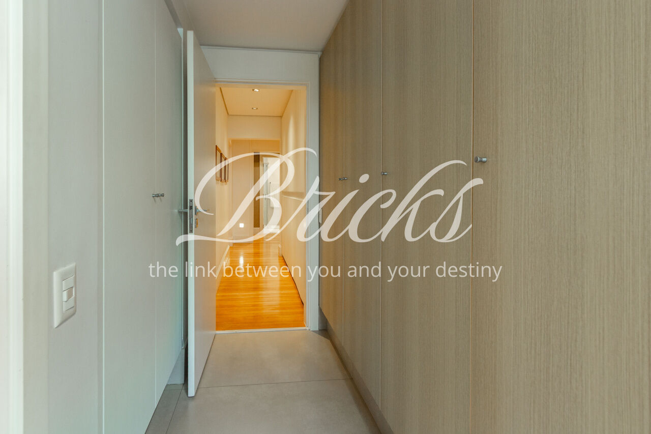 Falando em detalhes os armários da cozinha, copa e área de serviço são da Kitchens. A planta circular faz com que tenhamos acesso à área íntima pela cozinha, através de um corredor que possui um excelente roupeiro, ou pela sala.
