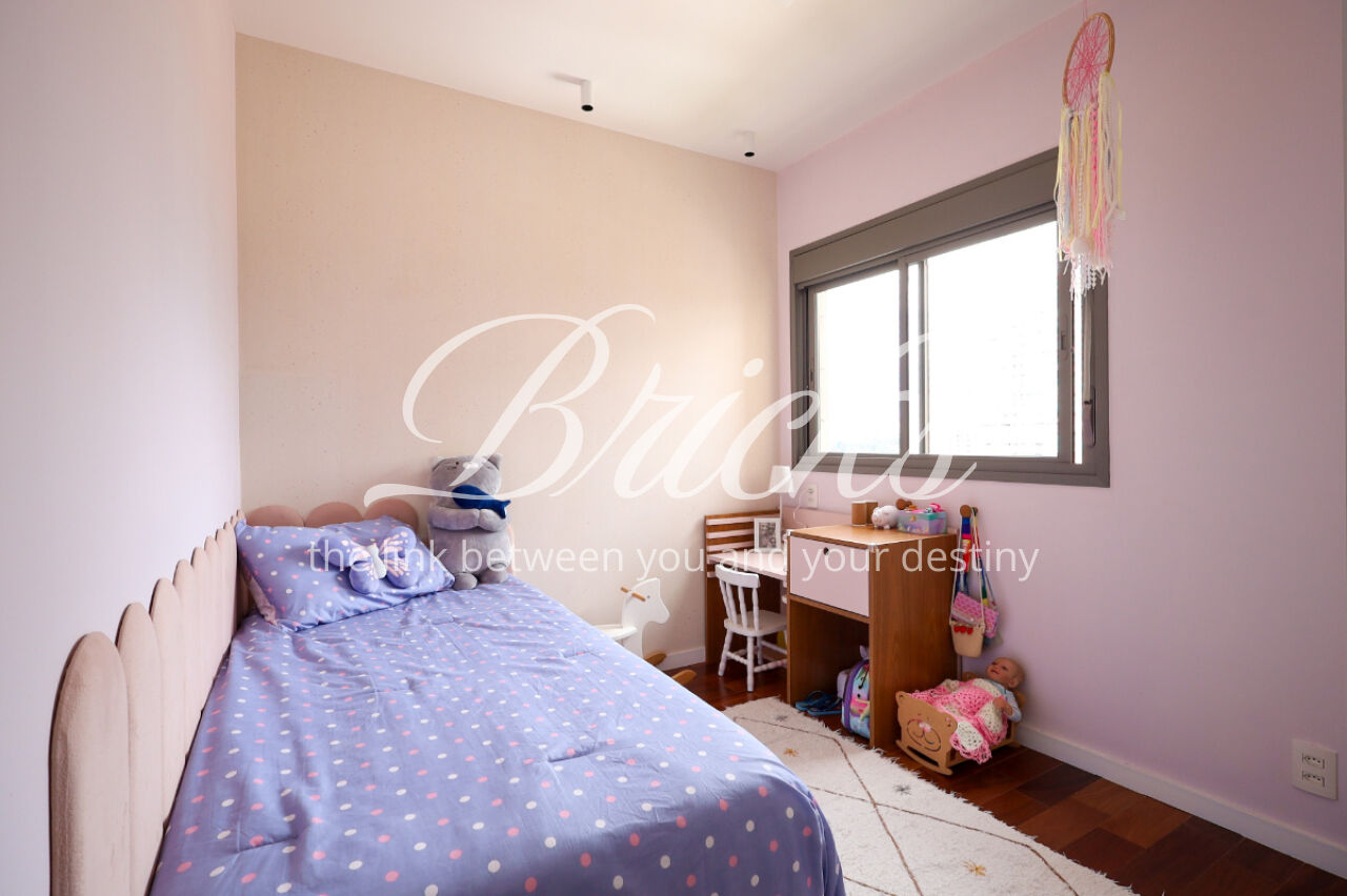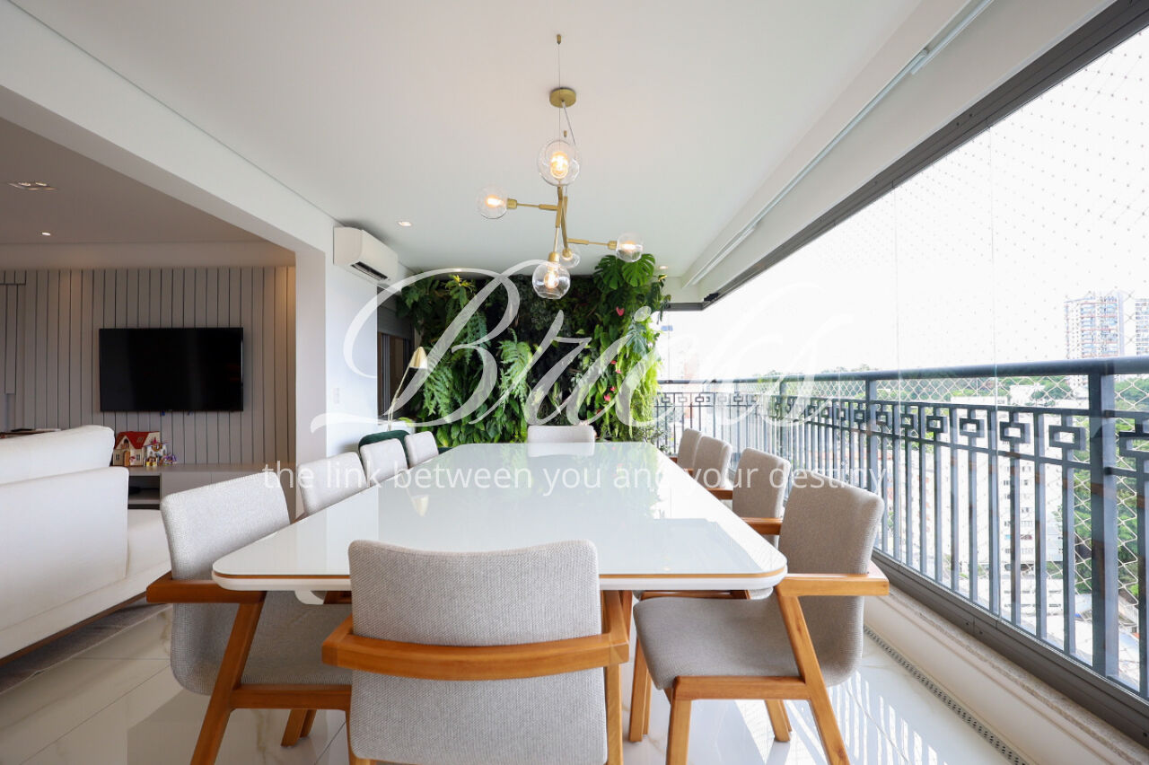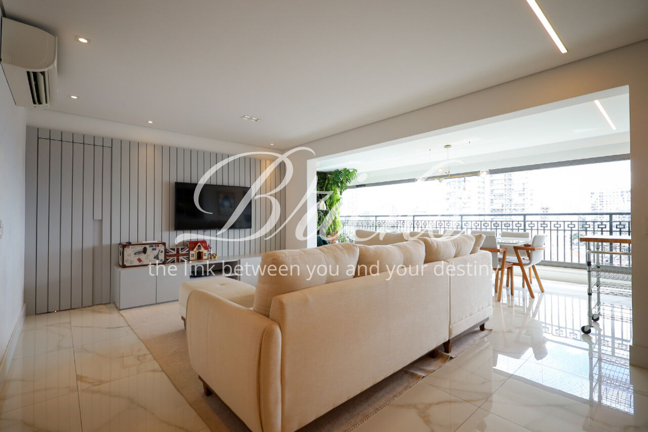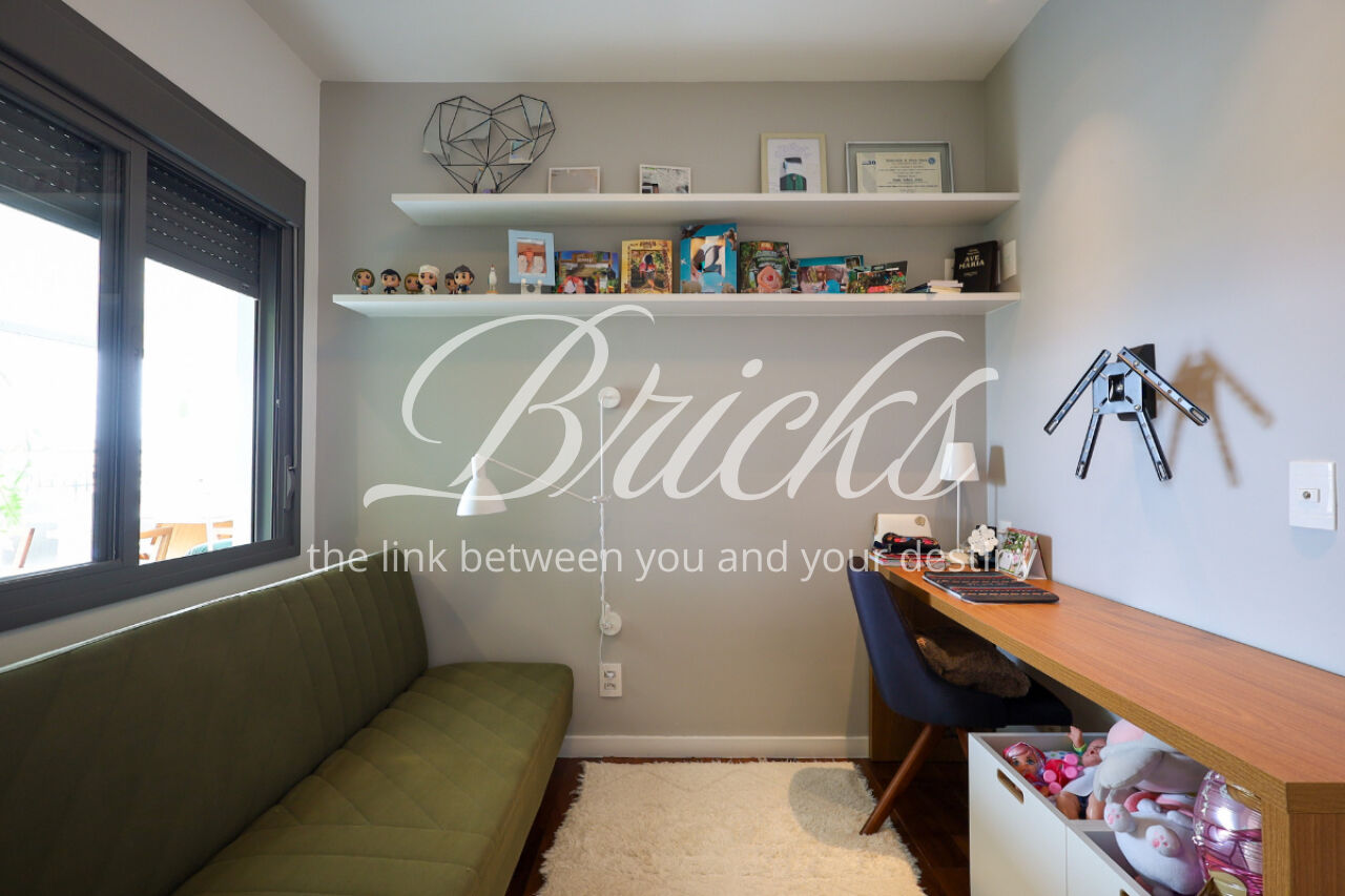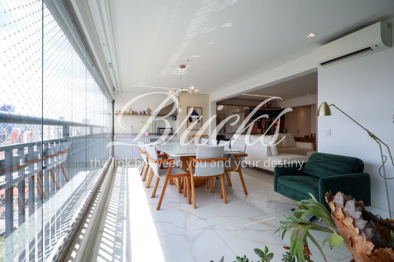 A ampla sala , integrada à varanda, dá uma sensação de maior amplitude, deixando o ambiente agradável e bastante iluminado. O lavabo com a porta disfarçada, integrando a parede, trouxe um toque especial. A cozinha com armários planejados e eletrodomésticos ainda na caixa e a área de serviço com dependência de empregada atendem todas as suas necessidades do dia a dia. Além disto o apartamento tem 3 vagas e um depósito.