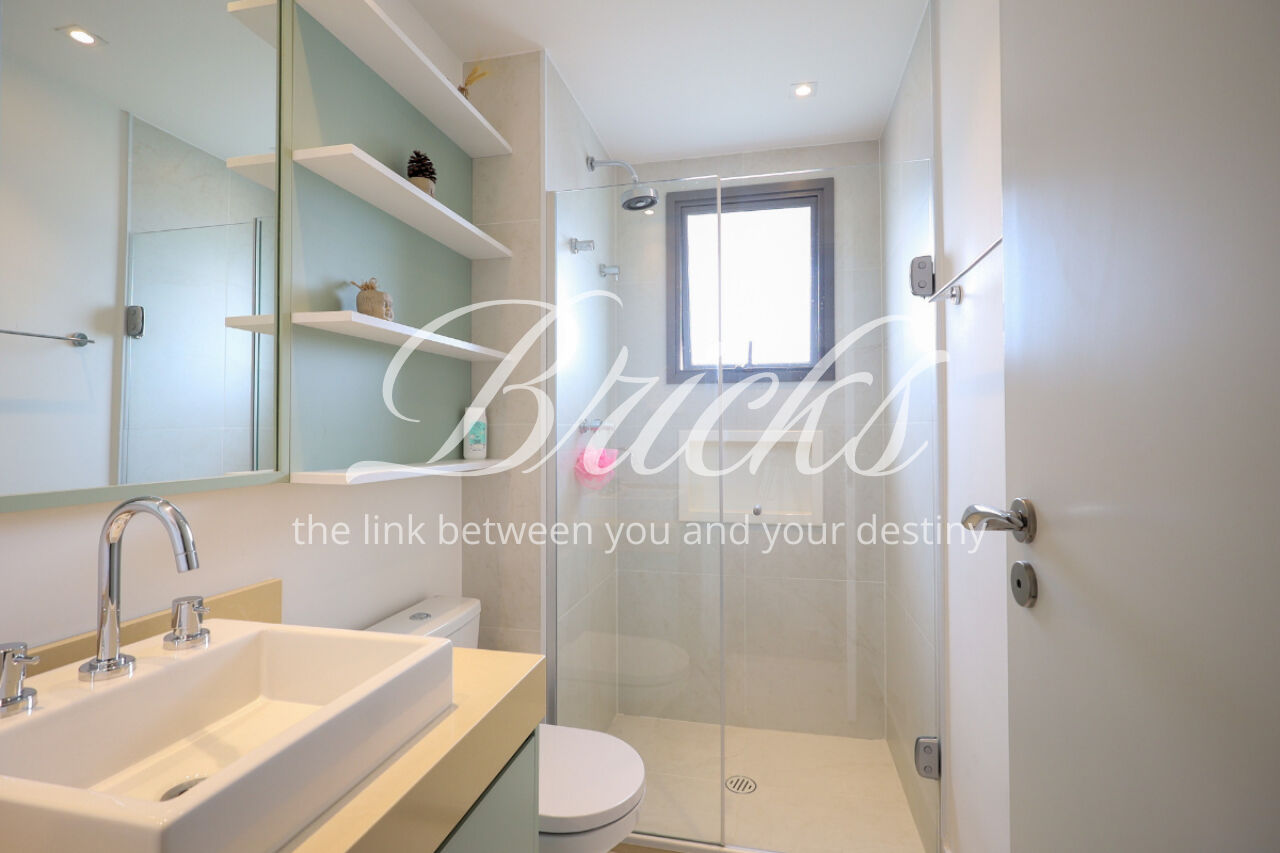 Localizado um edifício novo e de arquitetura moderna, o apartamento dispõe de 3 suítes com armários planejados e persianas elétricas trazendo ainda mais conforto. Este apartamento está com toda a infra estrutura de ar condicionado pronta tanto nas 3 suítes como na sala.