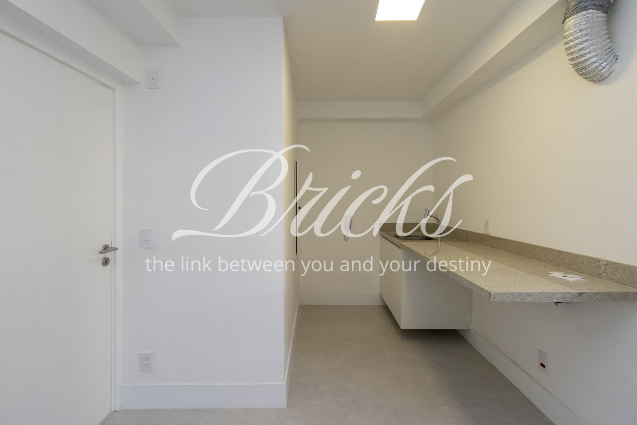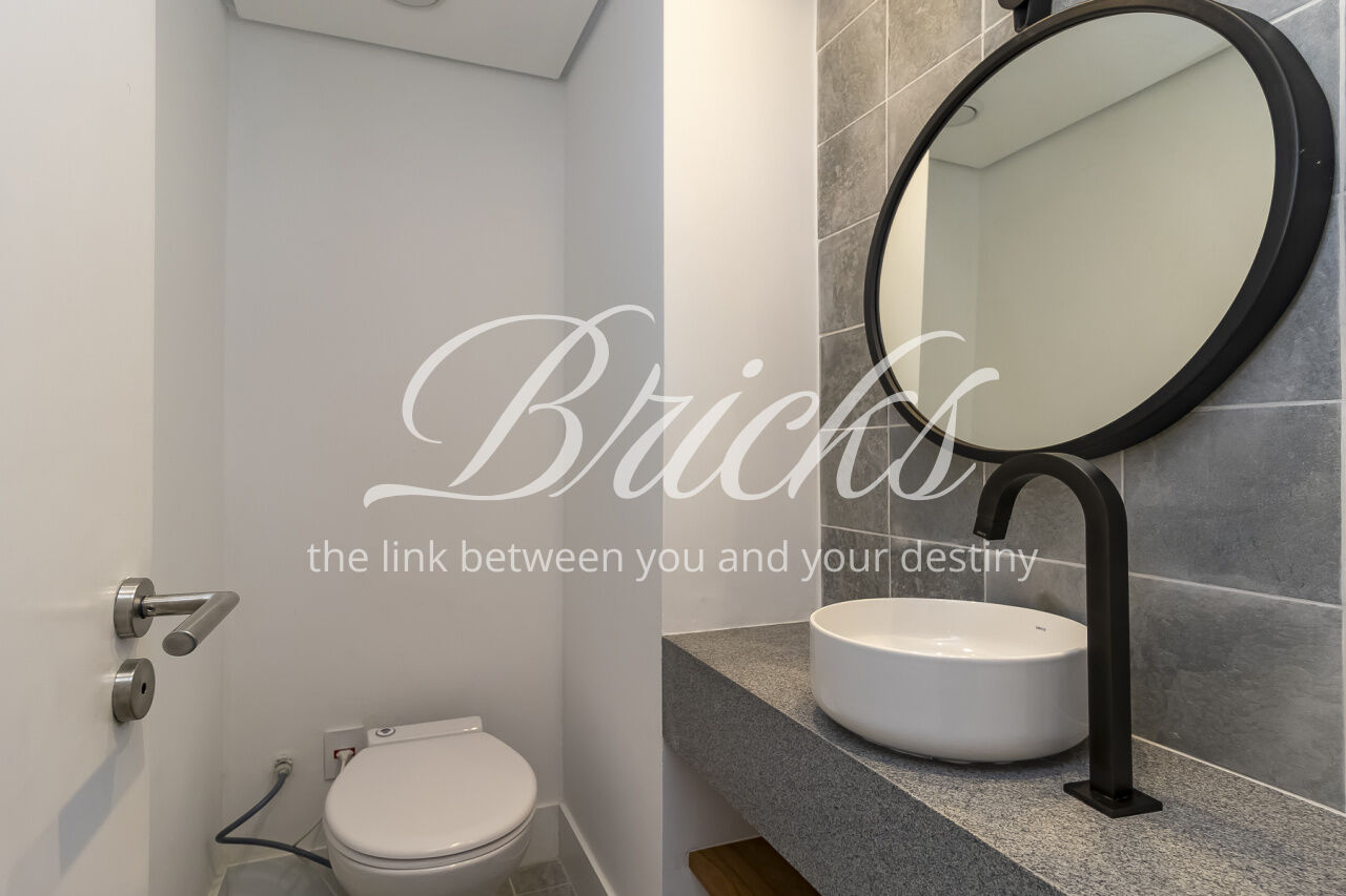 Será entregue com marcenaria (cozinha, área de serviço, gabinetes dos banheiros), cooktop, coifa, forno elétrico e aqecedor a gás.