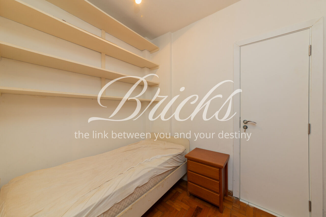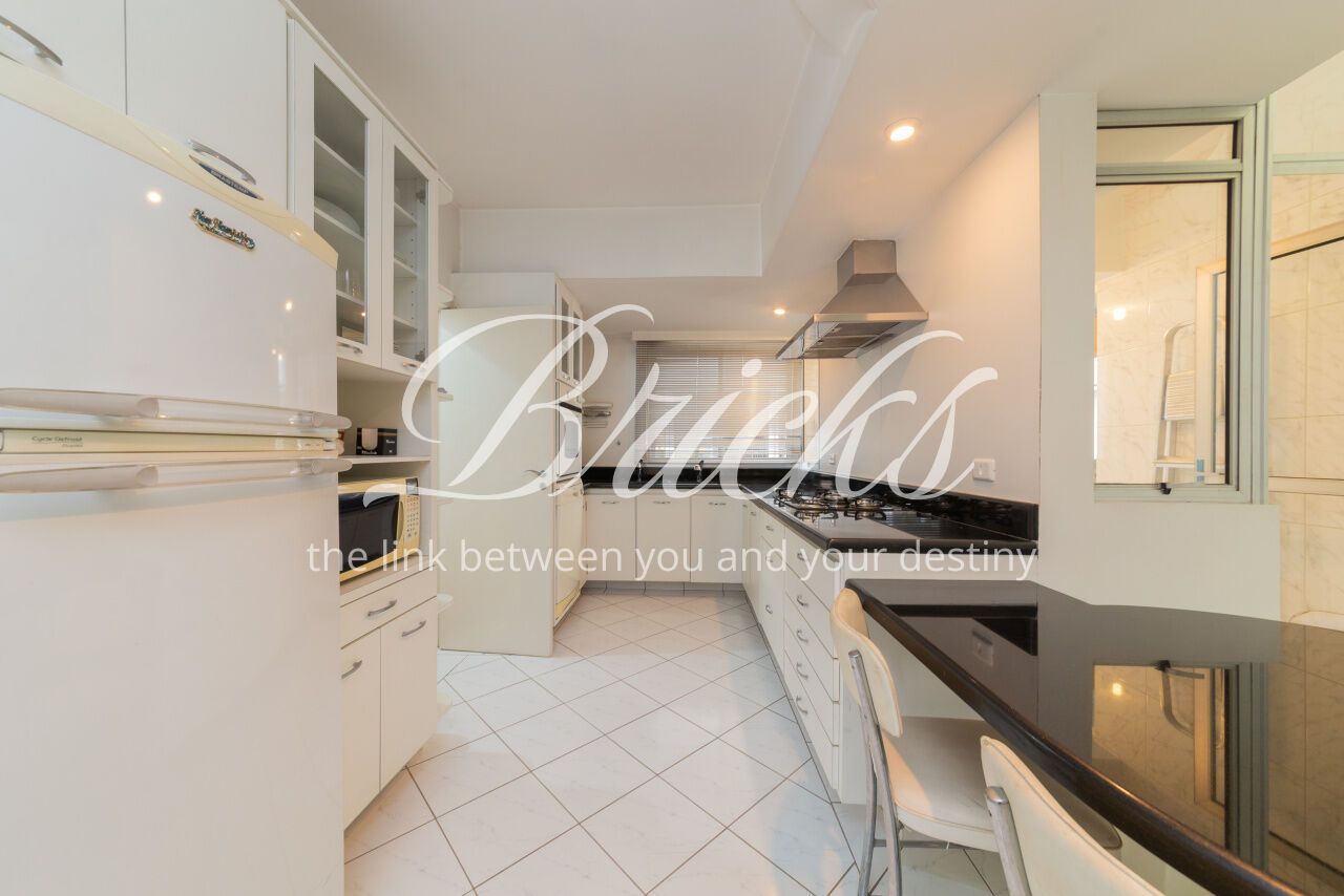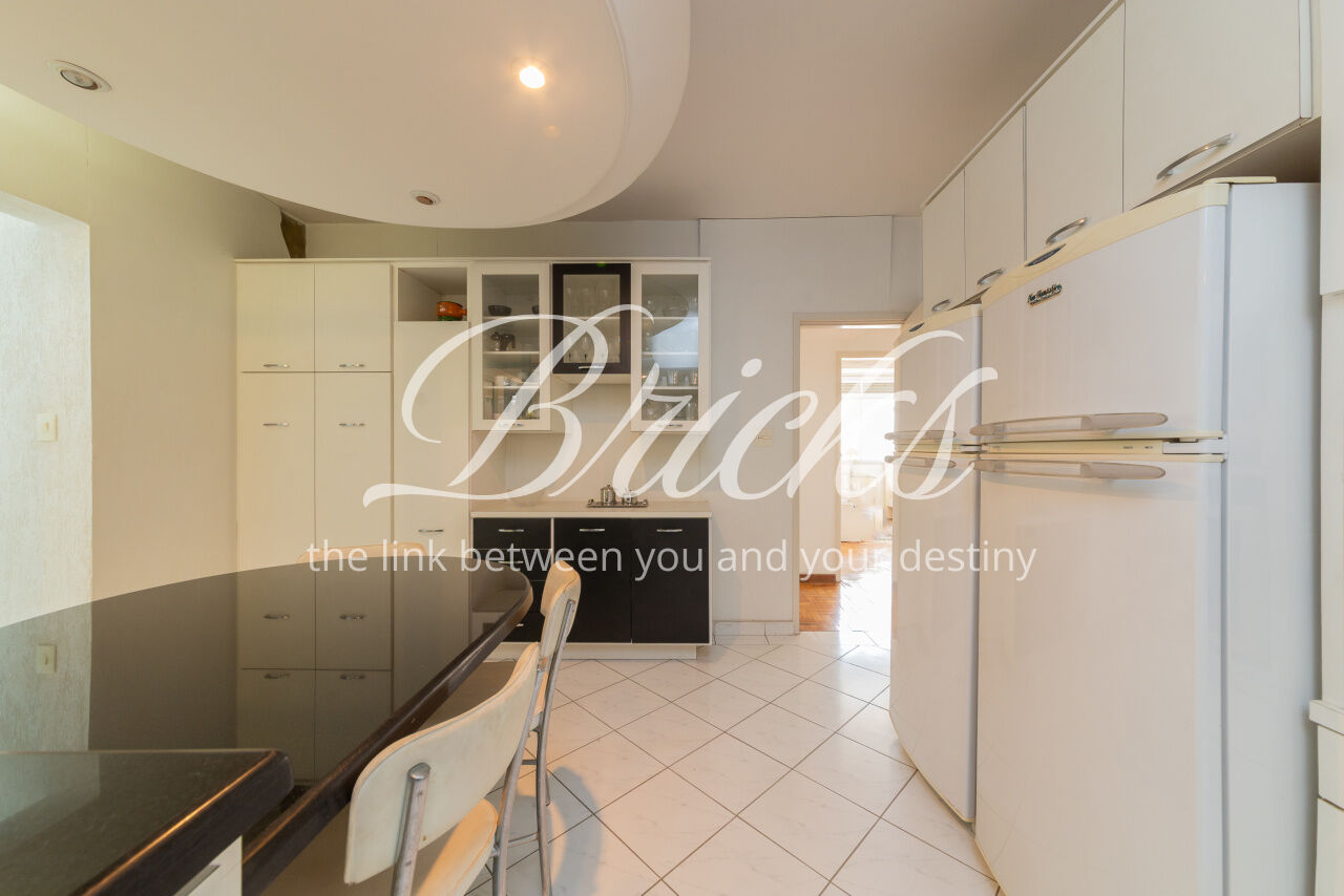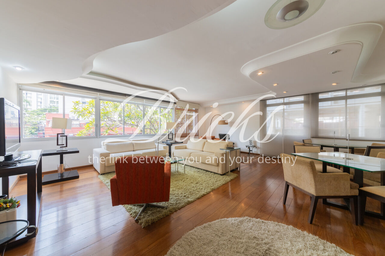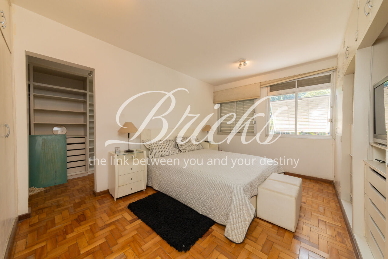 Ótimo apartamento de 180m2, 3 dormitórios (sendo 1 suíte e 2 americanas) com 3 vagas, muito bem localizado no Itaim - a 300m do Colégio Pueri Domus e 4 minutos a pé até a Escola Concept. De planta retangular com excelente aproveitamento da metragem, oferece generoso living para ao menos 3 ambientes confortavelmente integrados servidos por elegante piso em tábua larga de madeira nobre, janelão de parede à parede para a copa das árvores e lavabo. Os 3 dormitórios são notavelmente espaçosos, sobretudo a suíte principal. Dois deles estão com piso em taco nobre de peroba na clássica disposição espinha de peixe e o outro em tábua larga. A copa-cozinha é enorme, rica em marcenaria, com bancadas em granito negro São Gabriel e bastante luminosidade natural. A área de serviço também é ampla e com ótima ventilação. Há dependência para funcionária, pode ser usada como despensa.