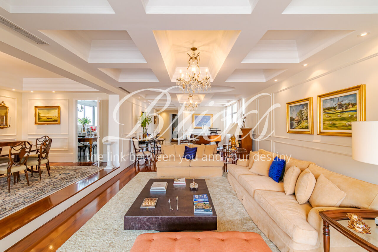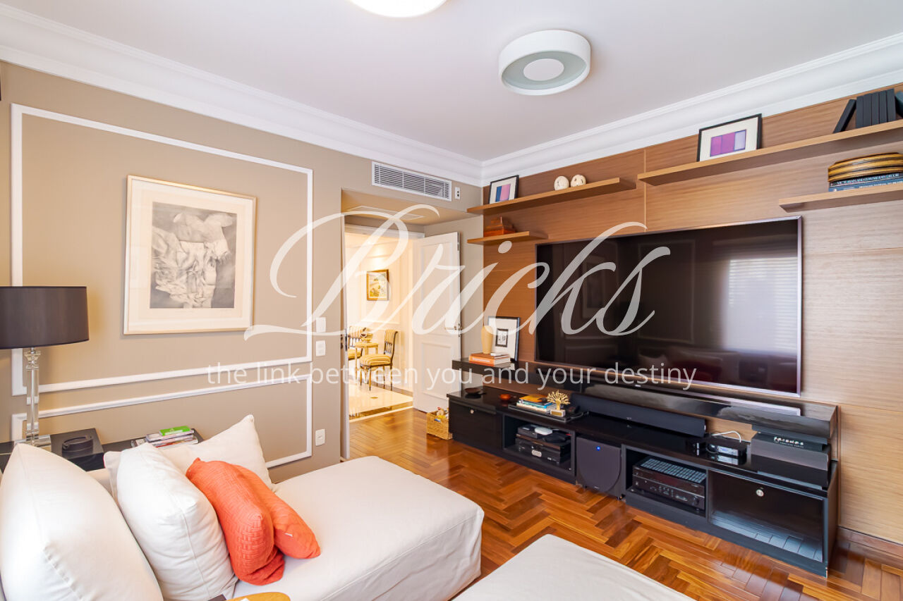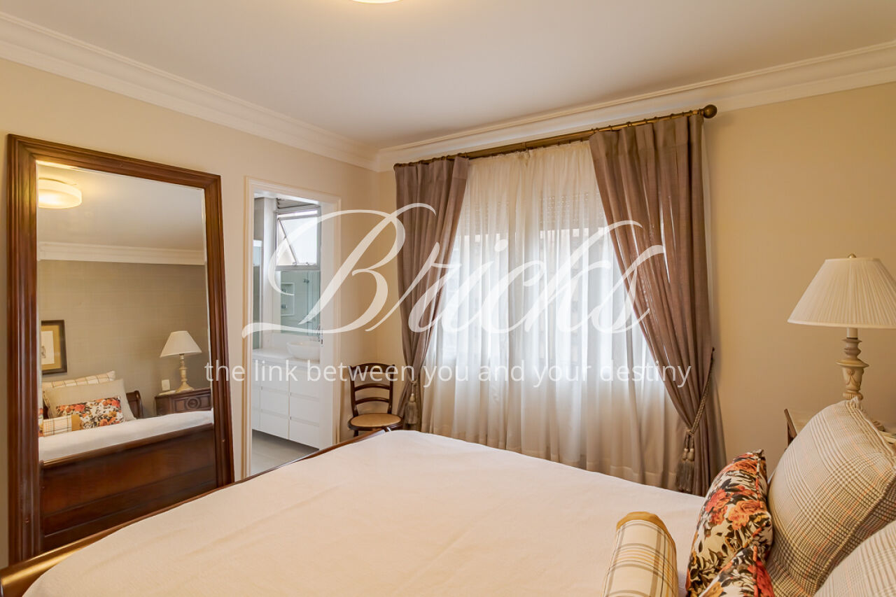 DESTAQUES DE ACABAMENTOS: painéis e portas em lâmina de madeira natural freijó na área social. Piso em madeira maciça perobinha tanto na área social como na área íntima Porta social com fechadura biométrica. Iluminação 100% LED, janelas acústicas nos dormitórios e living, redes hidráulica e elétrica totalmente renovadas, ar condicionado, aquecedor a gás e boiler já instalados, este apartamento garante conforto, eficiência e tranquilidade para uma vida plena.