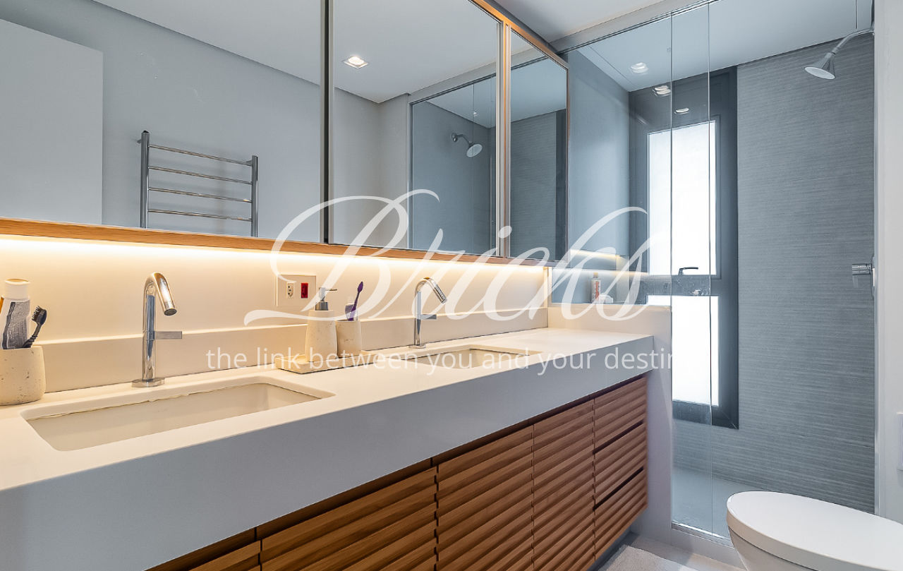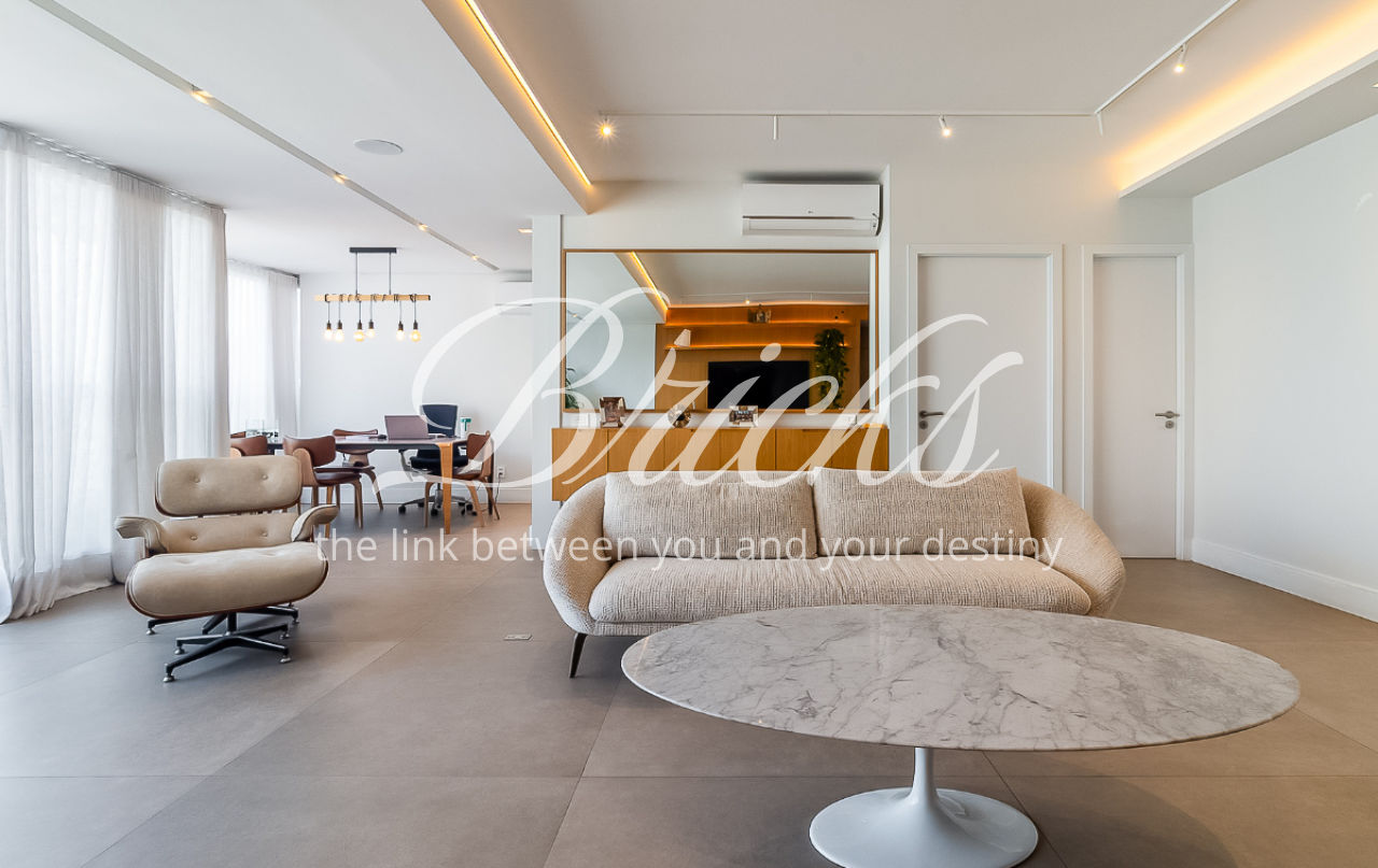 O apartamento está equipado com ar-condicionado em todos os ambientes, marcenaria sob medida e uma distribuição que privilegia o equilíbrio entre funcionalidade e elegância.