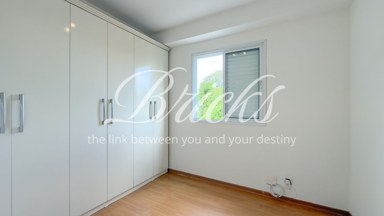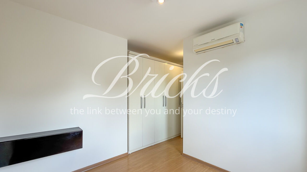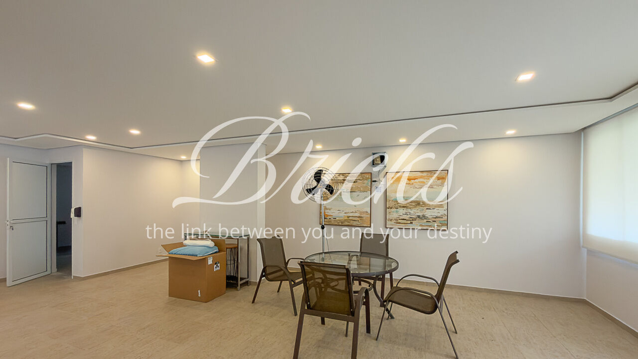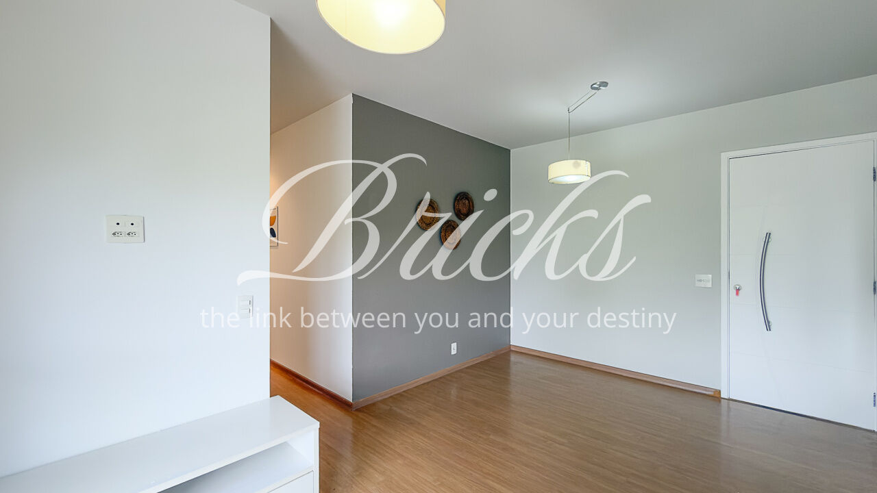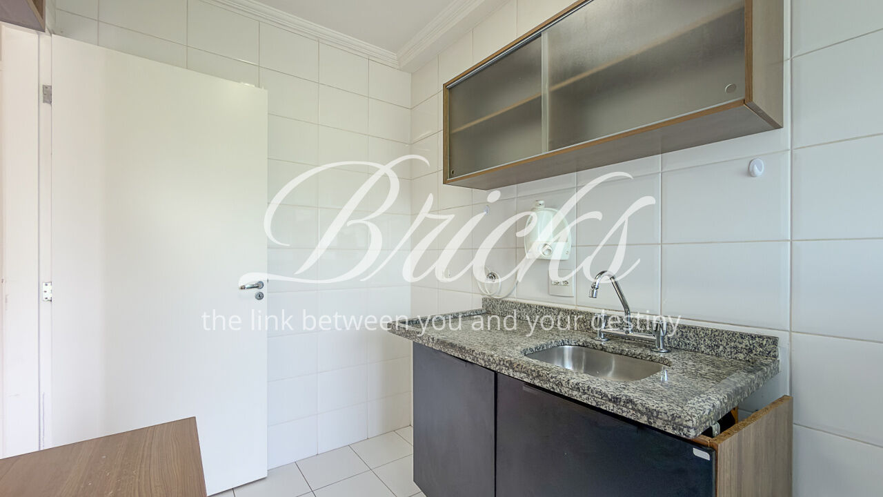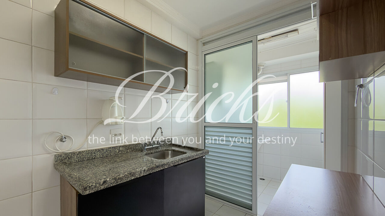 O apartamento é composto por dois dormitórios, sendo uma suíte, sala de estar integrada à sacada com churrasqueira, favorecendo iluminação e ventilação natural, banheiro social, cozinha e área de serviço independente. Possui ar-condicionado instalado na sala e na suíte, sistema de aquecimento de água a gás e uma vaga de garagem fixa e livre, definida em assembleia, sem sistema de rodízio. A área útil total é de 62 m².