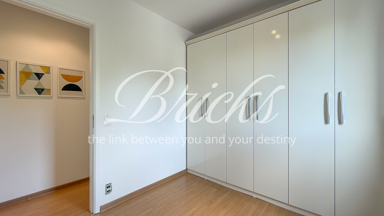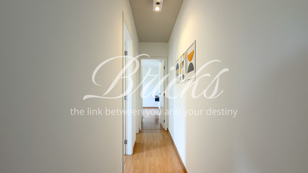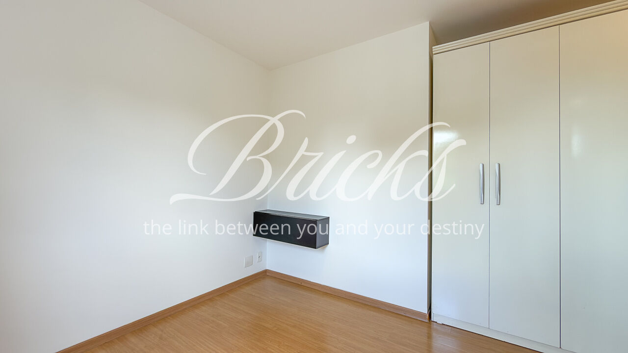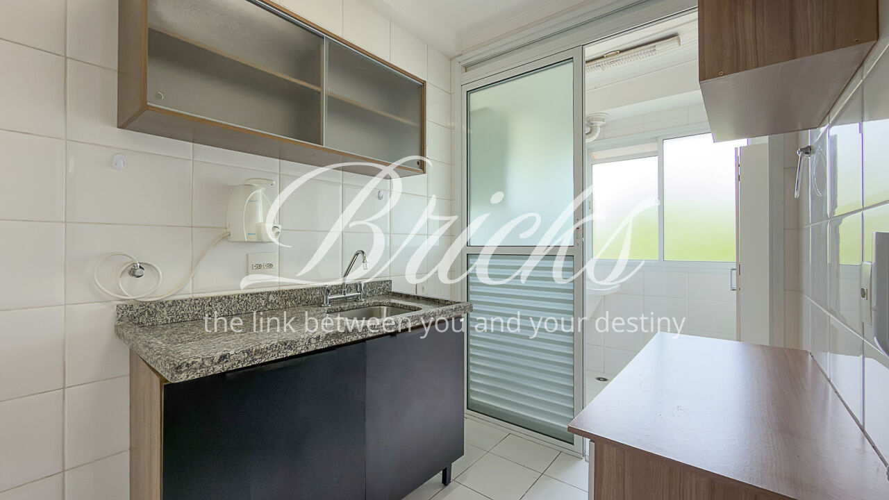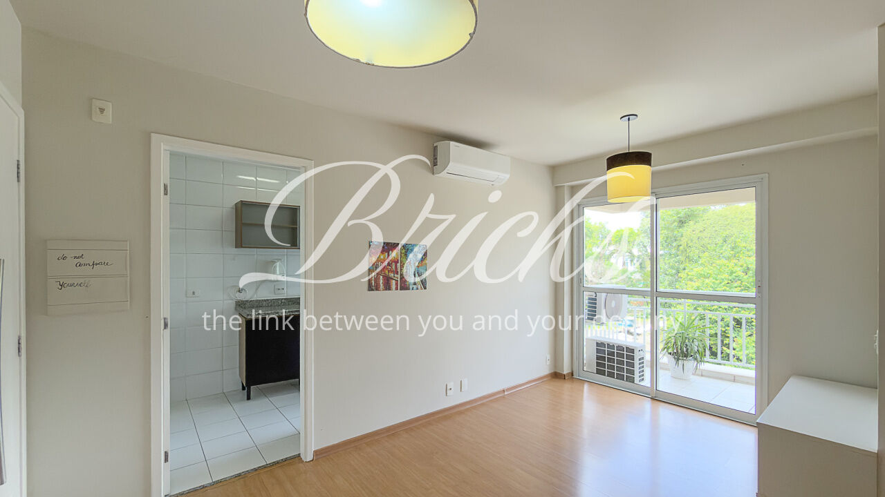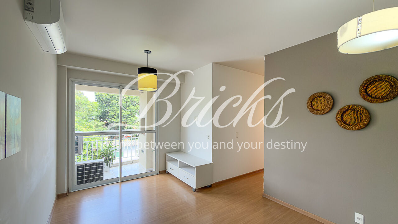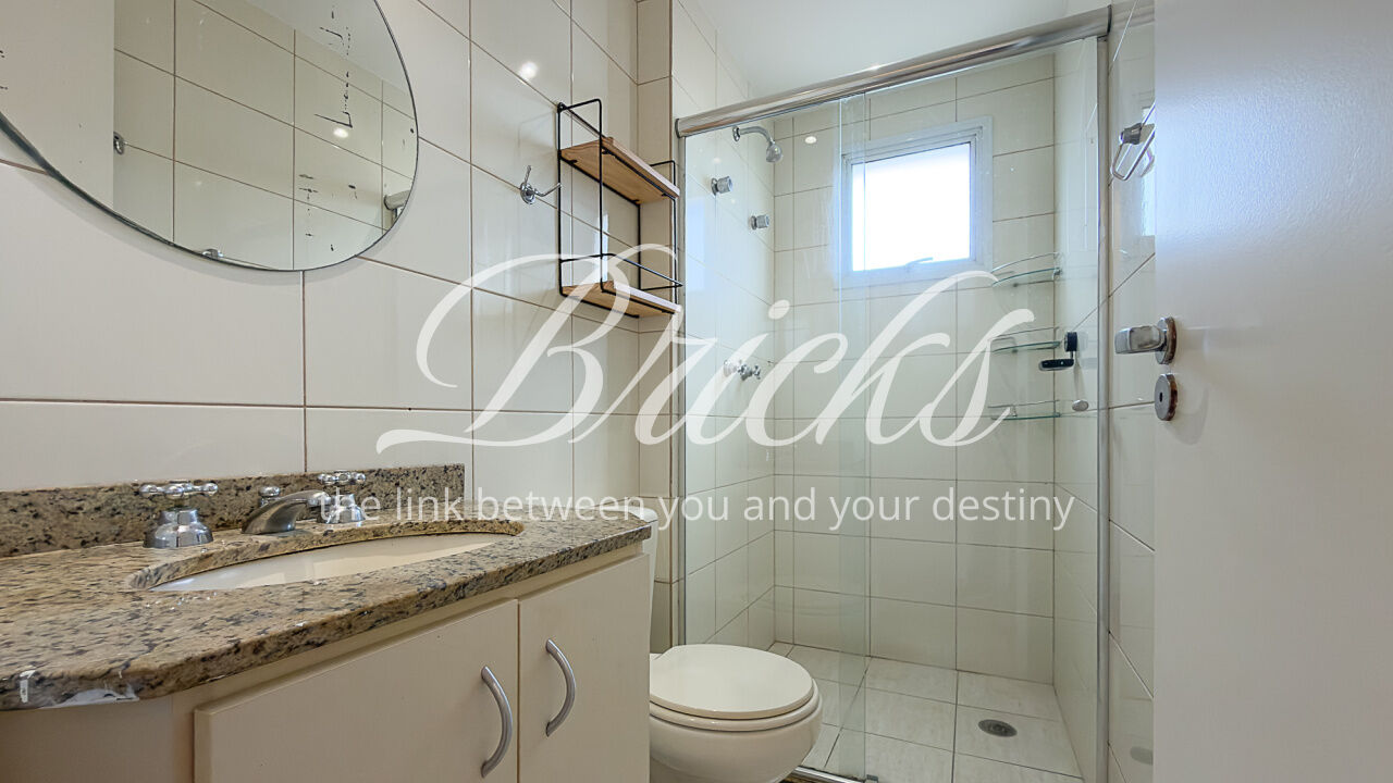 O apartamento é composto por dois dormitórios, sendo uma suíte, sala de estar integrada à sacada com churrasqueira, favorecendo iluminação e ventilação natural, banheiro social, cozinha e área de serviço independente. Possui ar-condicionado instalado na sala e na suíte, sistema de aquecimento de água a gás e uma vaga de garagem fixa e livre, definida em assembleia, sem sistema de rodízio. A área útil total é de 62 m².