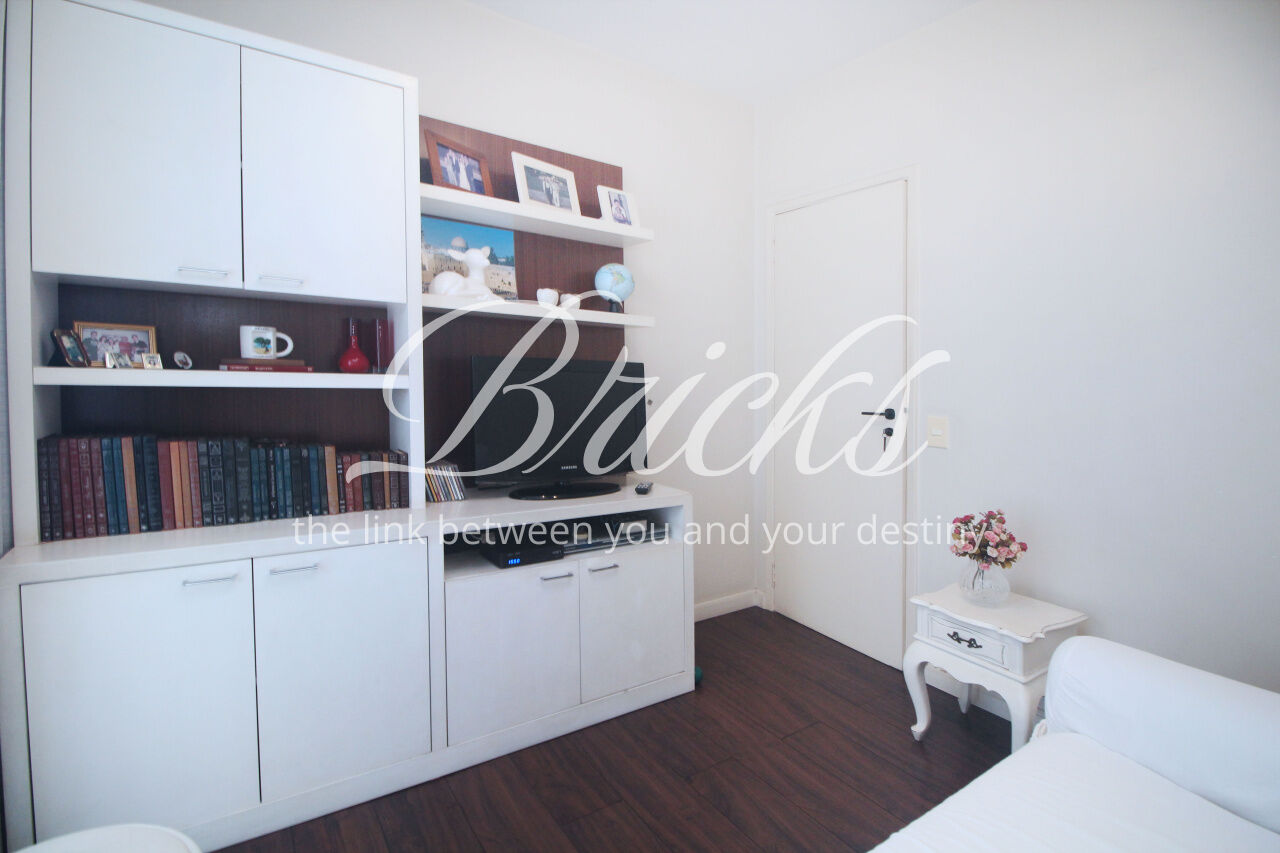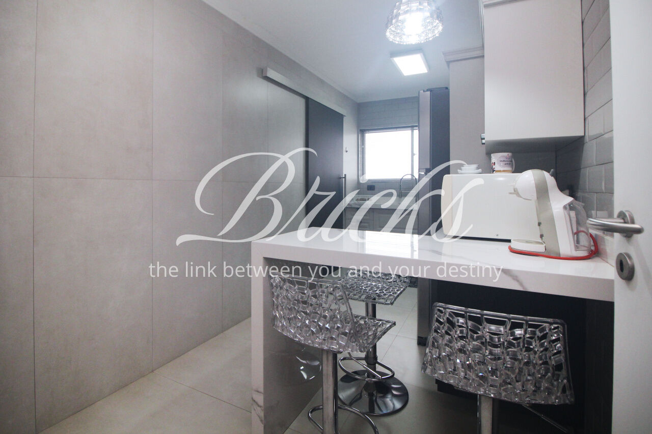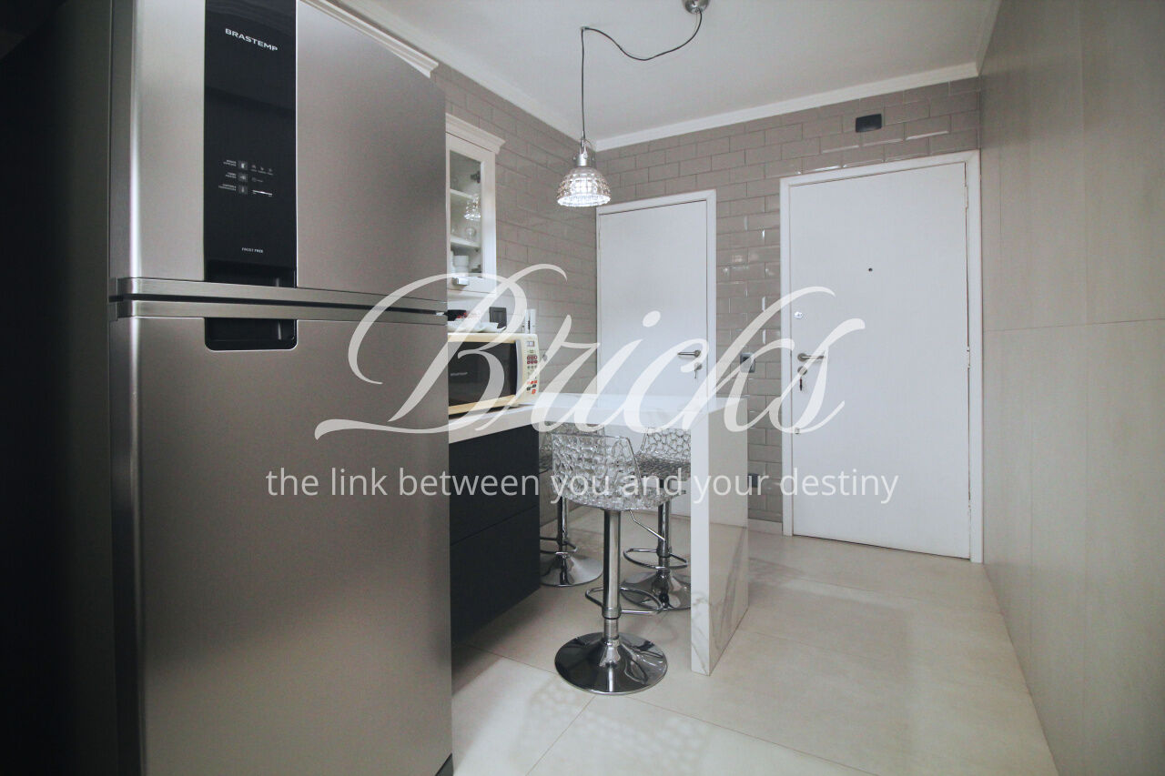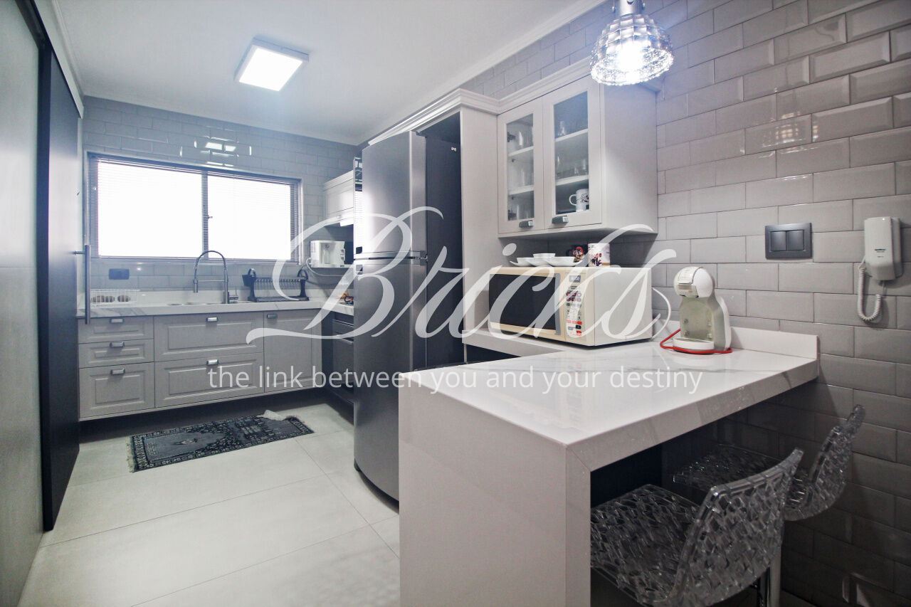 Andar alto, com bastante luz natural. Cozinha linda, equipada com fogão cooktop sem uso. Área de serviço grande, com janelões, além de quarto de empregada com banheiro.