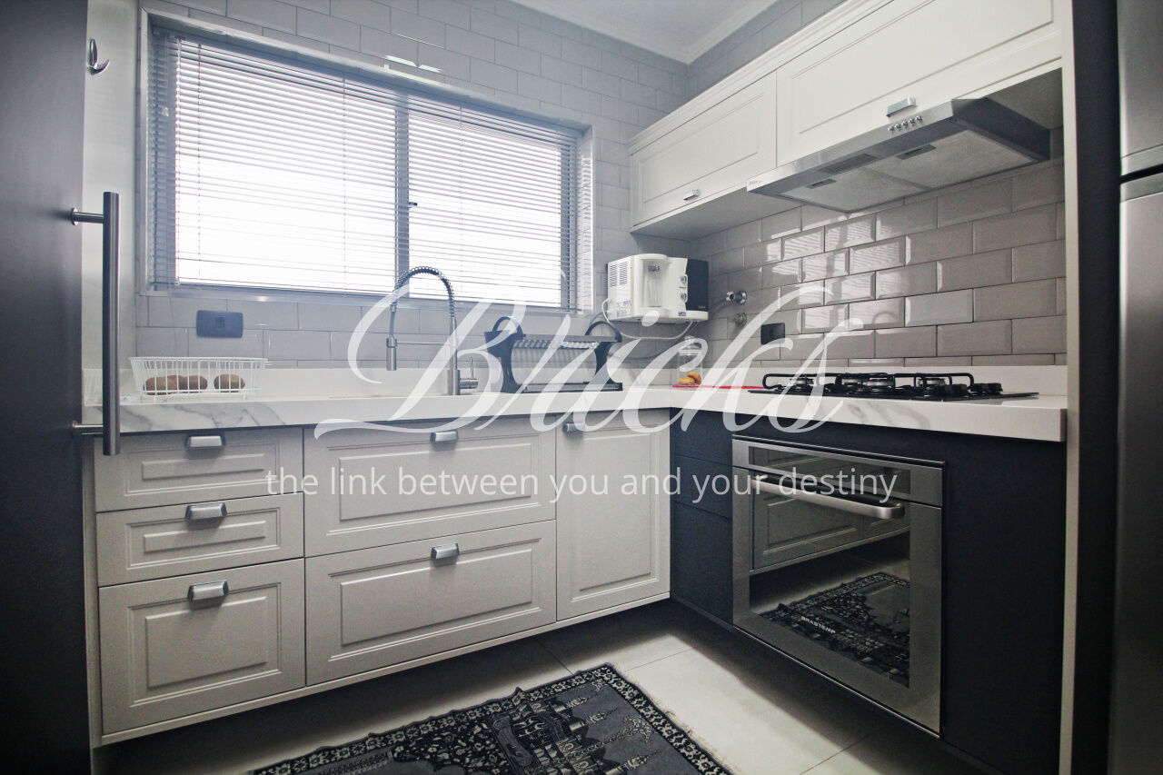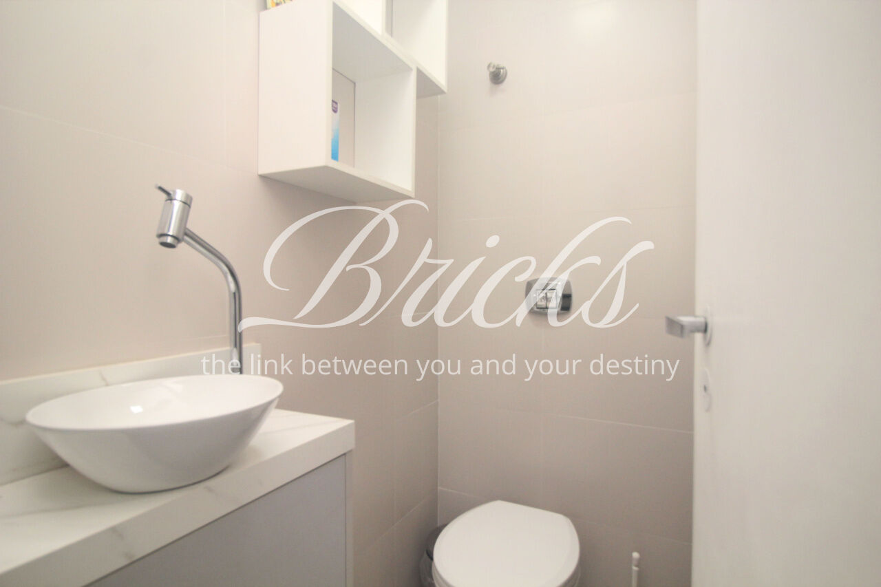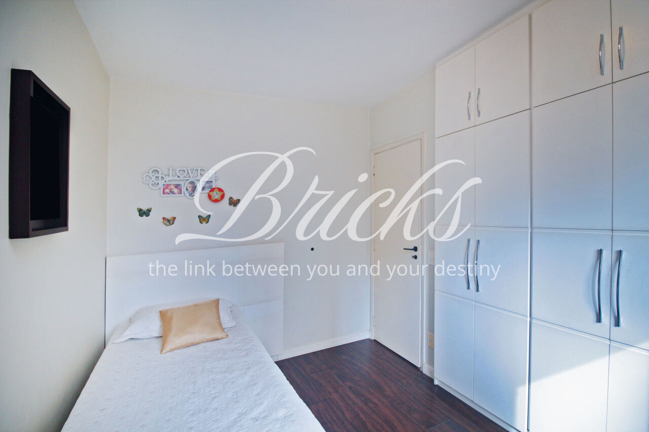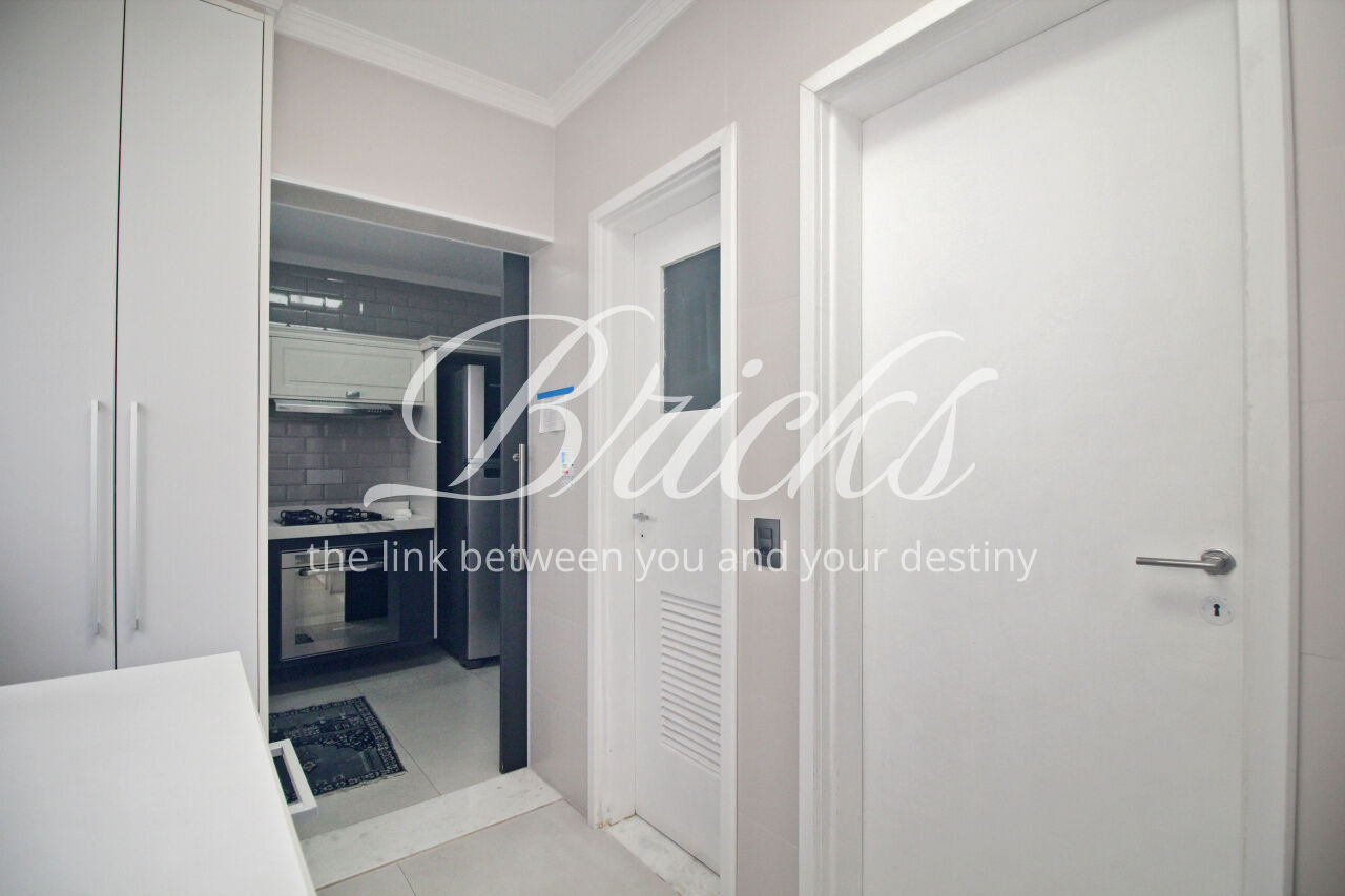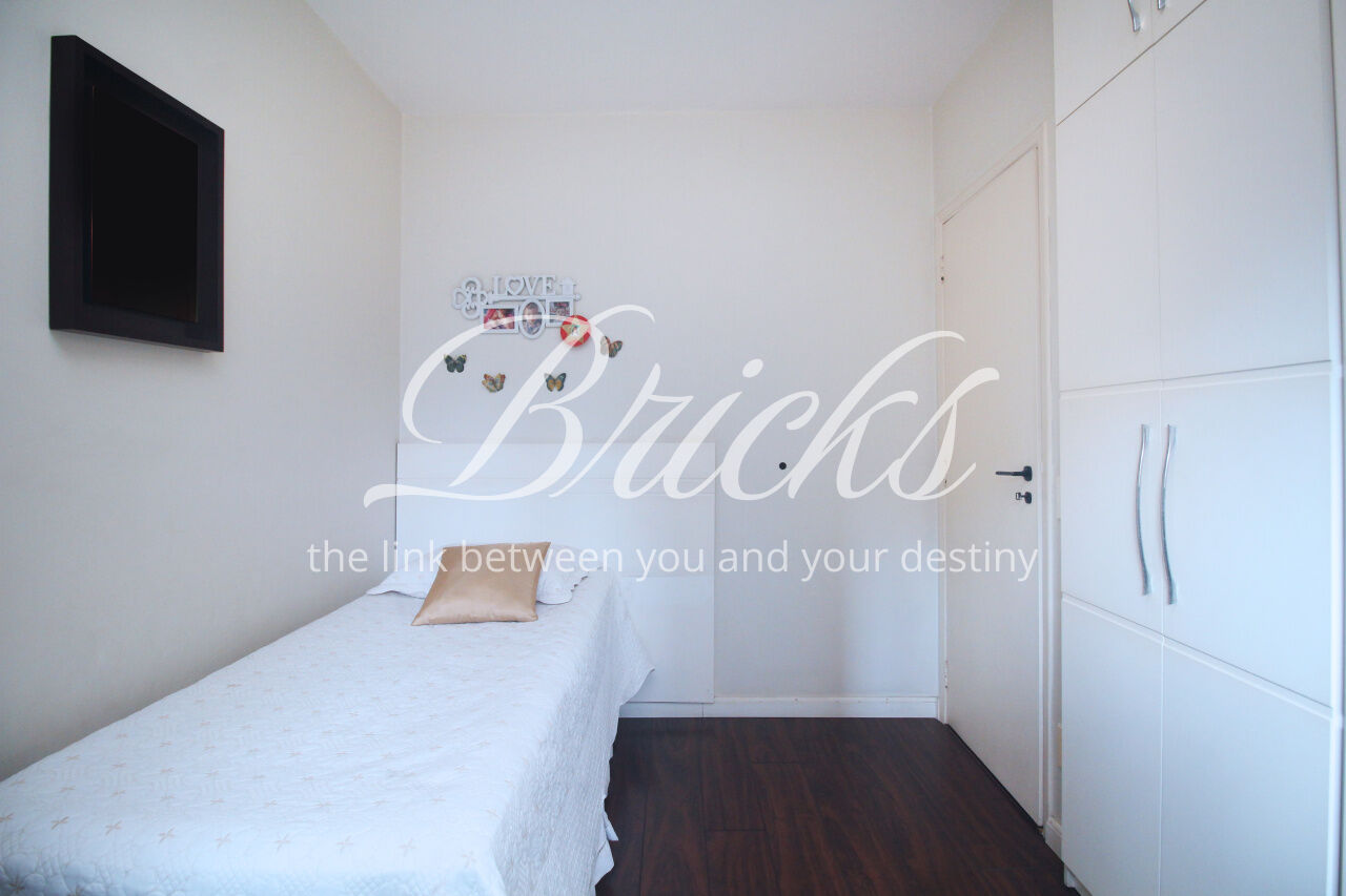 Andar alto, com bastante luz natural. Cozinha linda, equipada com fogão cooktop sem uso. Área de serviço grande, com janelões, além de quarto de empregada com banheiro.