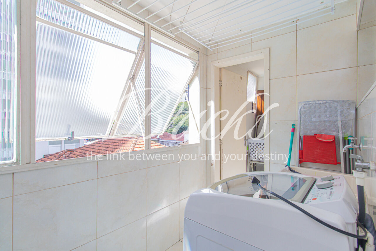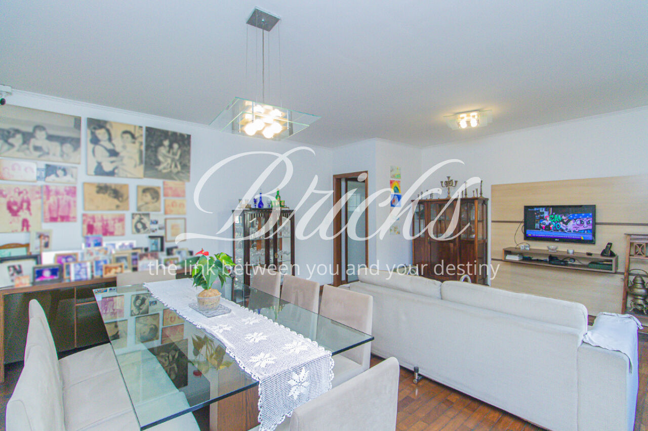 Com uma área útil de 110 m², o apartamento conta com 3 quartos, sendo uma suíte, e 2 banheiros. A sala ampla oferece uma vista permanente e ainda possui uma sacada, perfeita para relaxar e apreciar o ambiente. O piso de madeira agrega elegância e aconchego aos espaços.