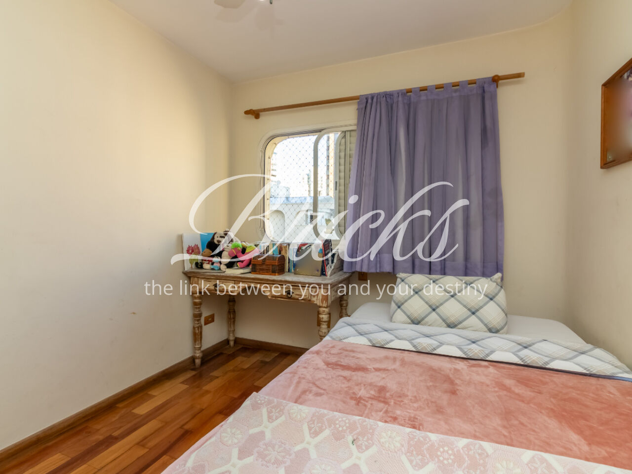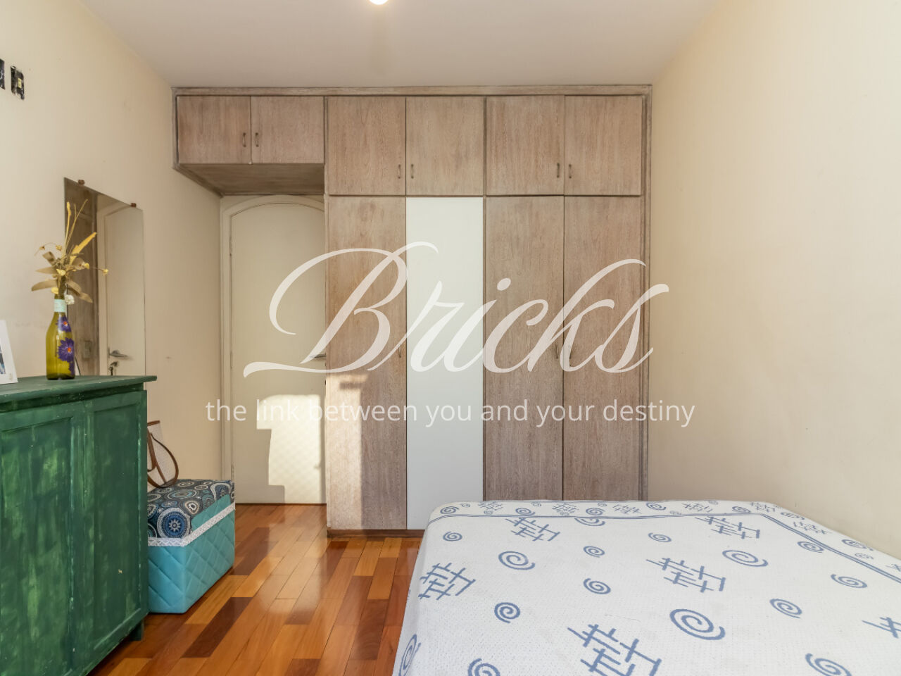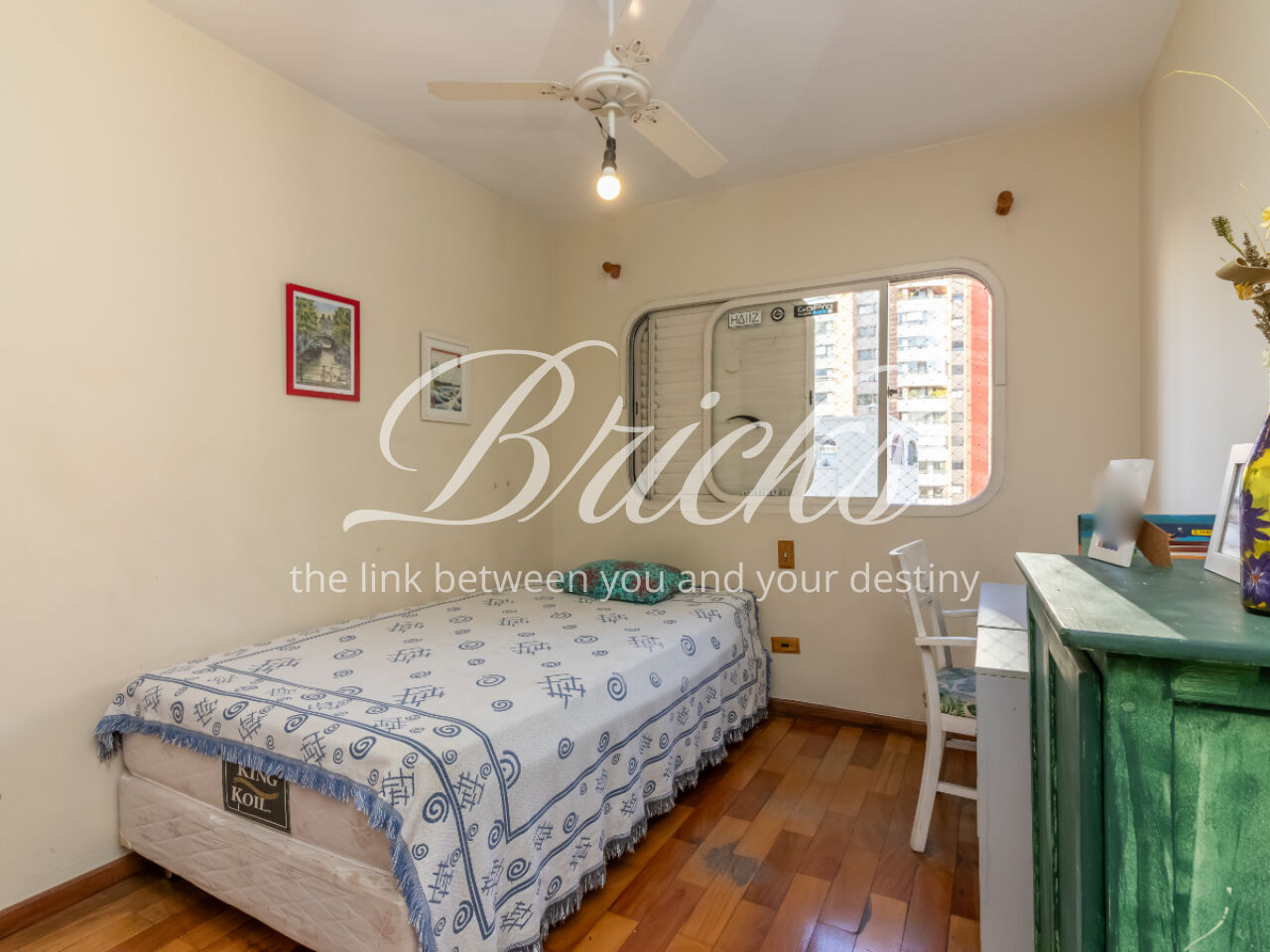 O apartamento tem sala ampla com varanda, muita iluminação e ventilação natural, a cozinha é espaçosa, com corredor largo para circulação, possui armários brancos e planejados, ao lado ficam a área de serviço, banheiro e quarto de serviço, que podem ser transformados em escritório ou despensa. Os quartos contam com armários embutidos.