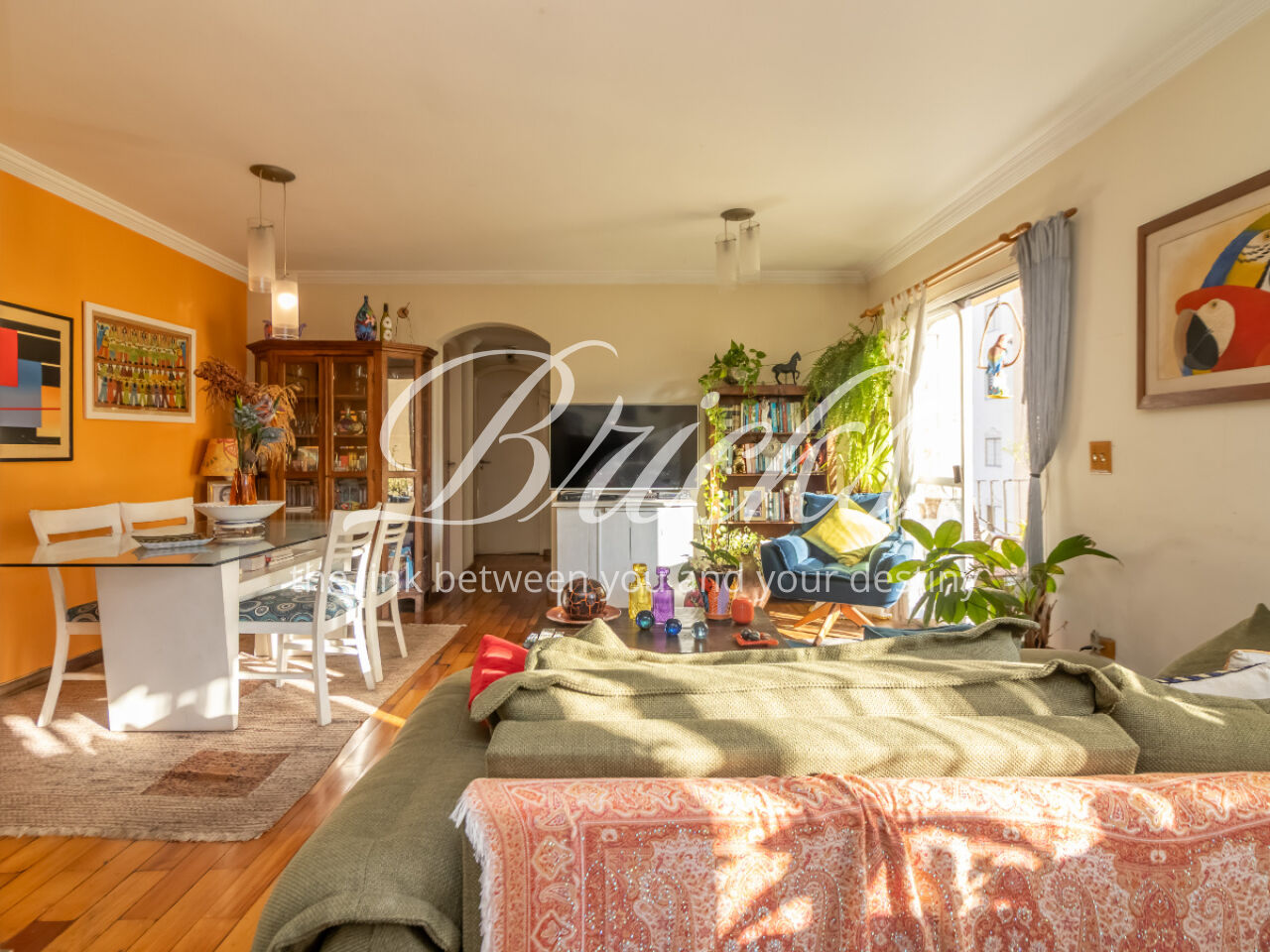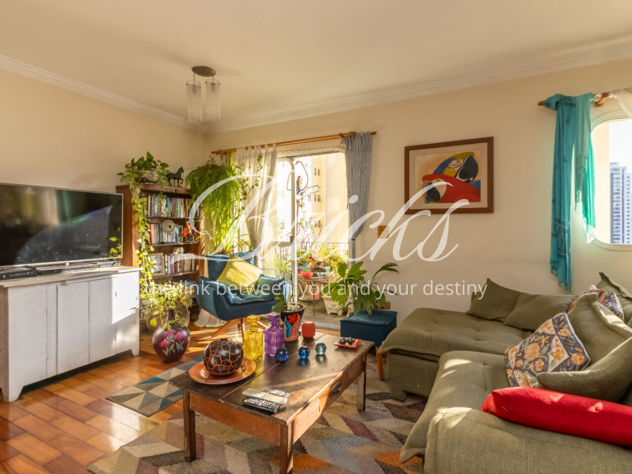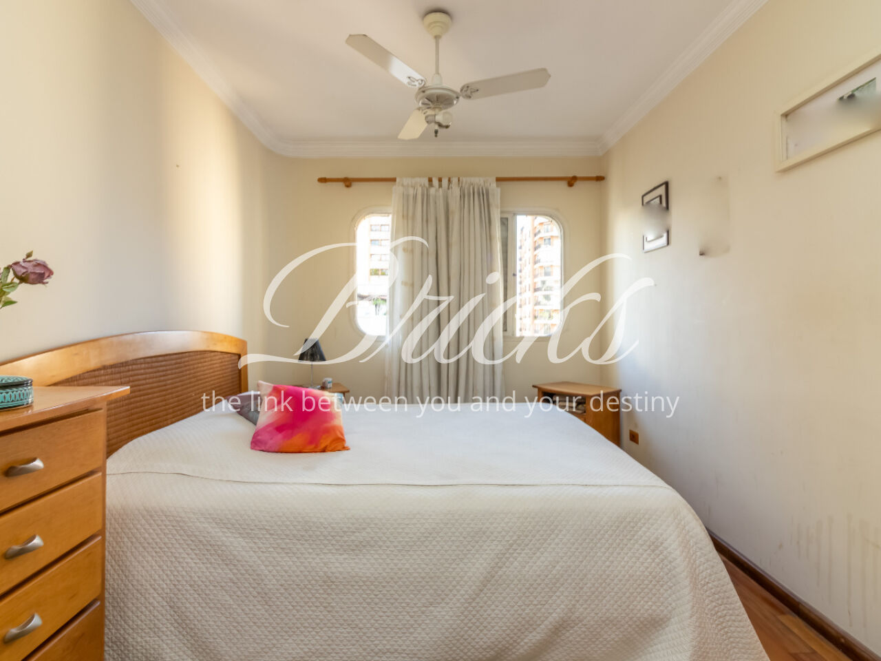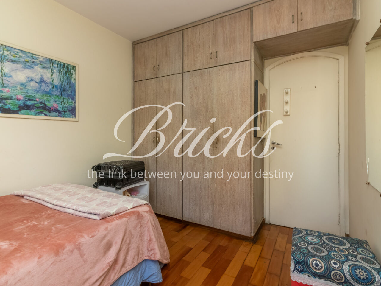 O apartamento tem sala ampla com varanda, muita iluminação e ventilação natural, a cozinha é espaçosa, com corredor largo para circulação, possui armários brancos e planejados, ao lado ficam a área de serviço, banheiro e quarto de serviço, que podem ser transformados em escritório ou despensa. Os quartos contam com armários embutidos.