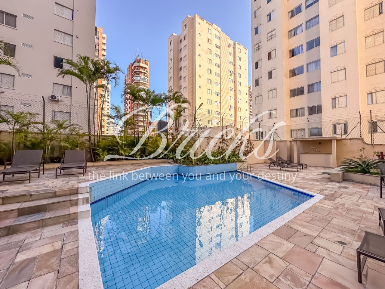 O condomínio oferece piscina, salão de festas, playground e academia.
