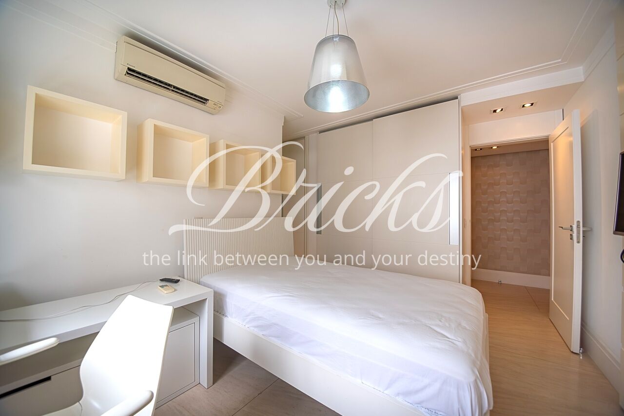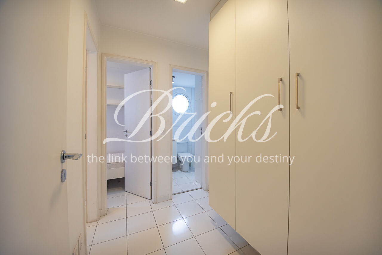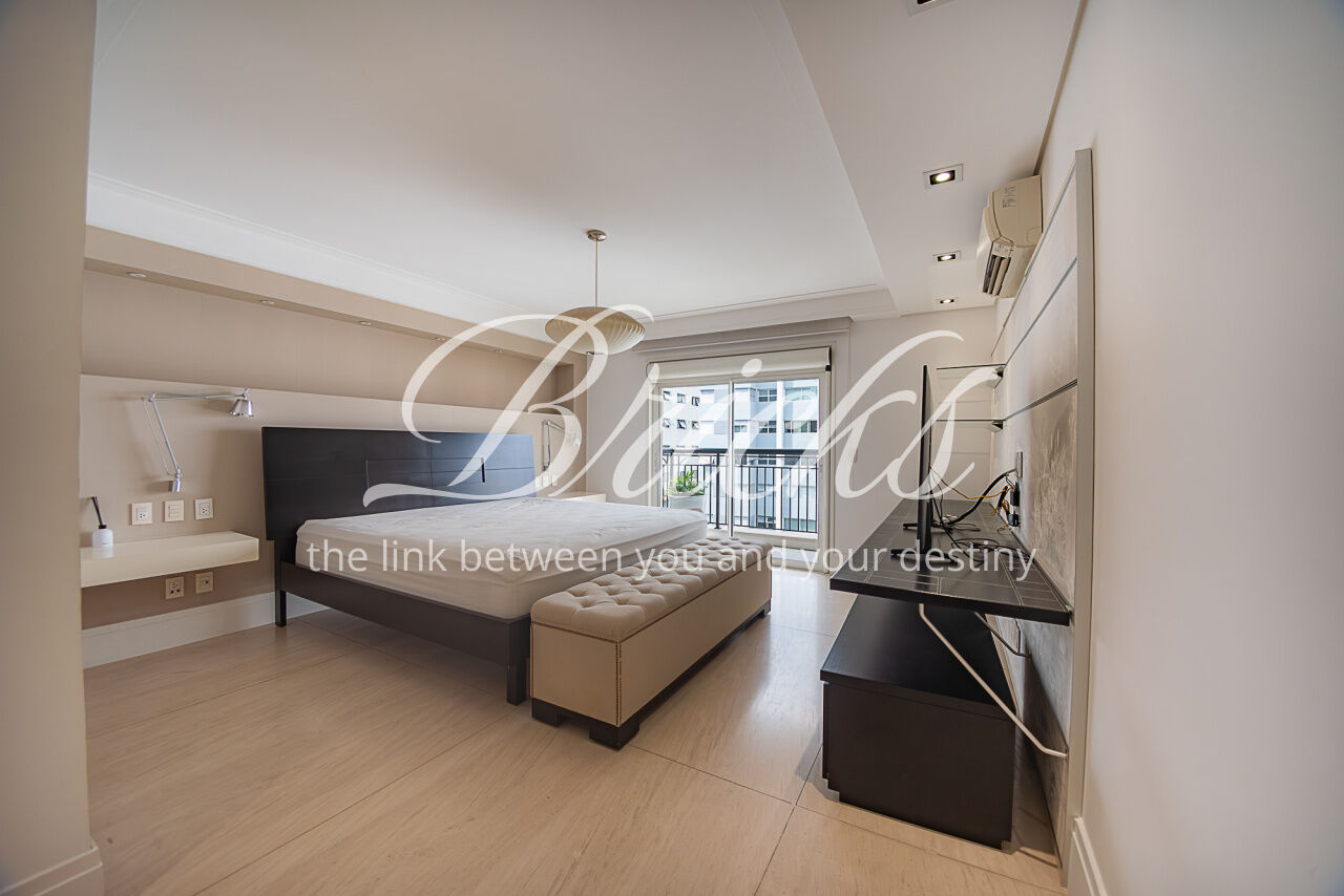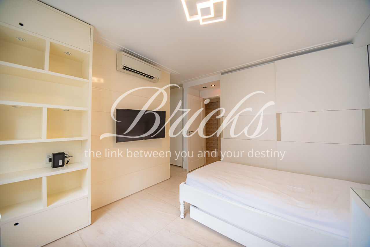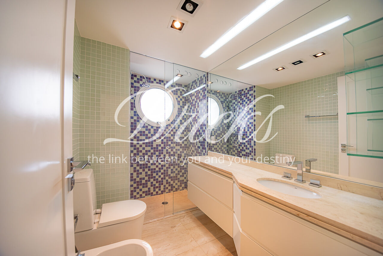 Um largo e amplo corredor privativo, atendido por enorme roupeiro, dá acesso às 4 generosas suítes, todas com ar condicionado, marcenaria Ornare e tudo para lhes receber com o mais elevado rigor estético, harmonia e funcionalidade. A Máster, além de dispor de excelente espaço e varanda, possui closet e banheiro sr. e sra surpreendentes.