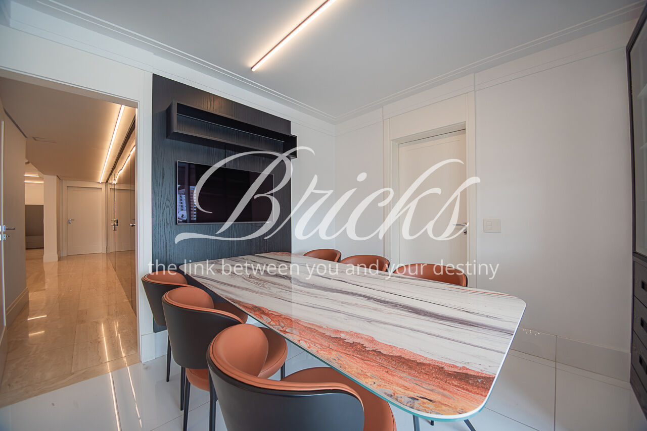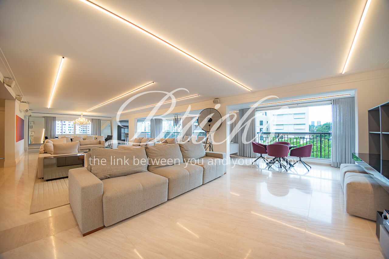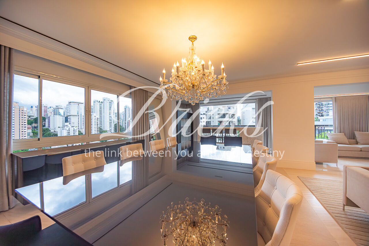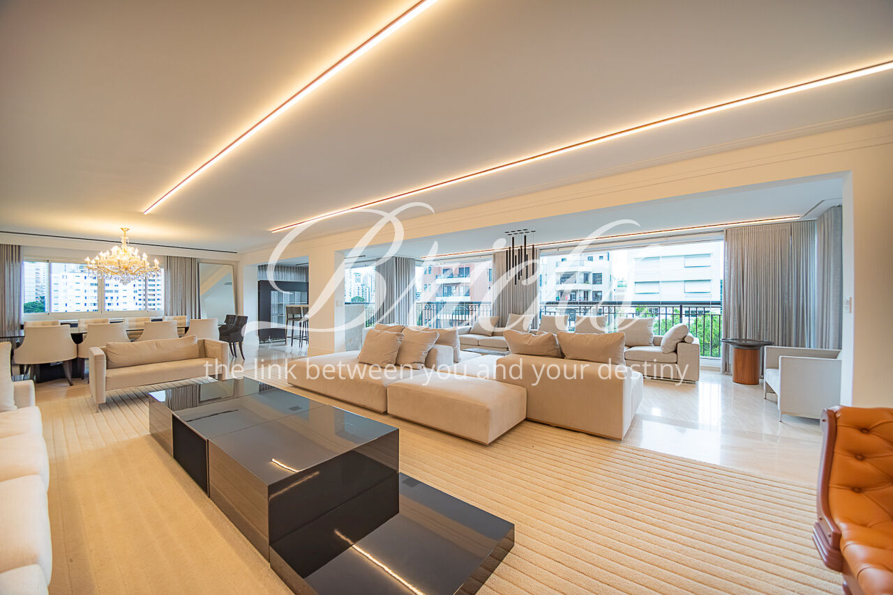 Apartamento lindo, de alto luxo, inteiramente mobiliado com 415 m², 4 suítes e 6 vagas, 100% reformado com projeto de interiores assinado pelo premiado arquiteto Francisco Cálio, situado no coração do Pacaembu/Perdizes em um dos, se não o mais distinto e seleto condomínio neoclássico do bairro (who knows, knows). Hall de entrada do apartamento em mármore italiano negro com elevador social privativo de duas entradas: uma para o living e outra diretamente para área privativa das suítes. Sonorização automatizada e projeto de iluminação única no imóvel inteiro; living com persianas blackout também automatizadas, envidraçamento das varandas todas, Casa Mansur.