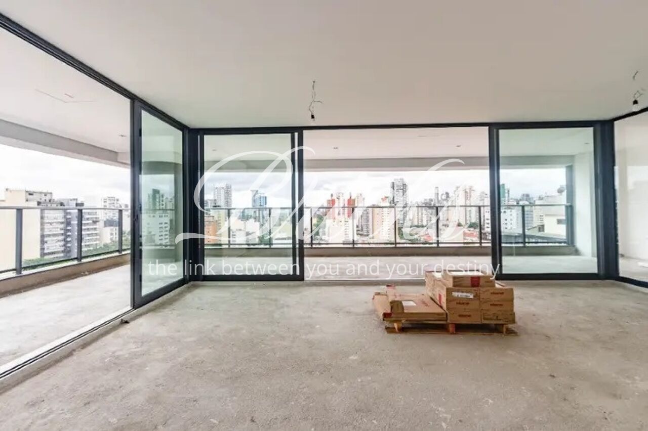 Com 230 m², o imóvel possui 4 suítes, 3 vagas de garagem e depósito privativo. A área social é marcada por uma varanda ampla, que circunda toda a sala, criando um ambiente contínuo, bem iluminado e com vista aberta, além de favorecer diferentes possibilidades de uso e layout. O apartamento está no contrapiso, ideal para o desenvolvimento de um projeto arquitetônico personalizado, permitindo total liberdade de acabamento e configuração.