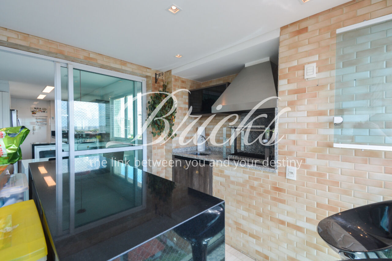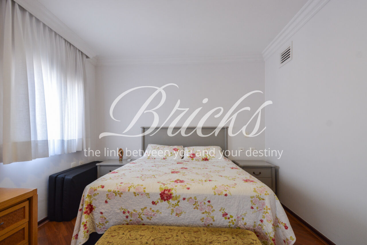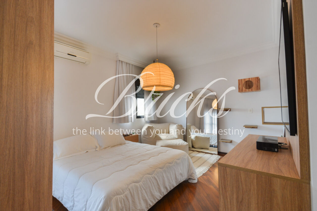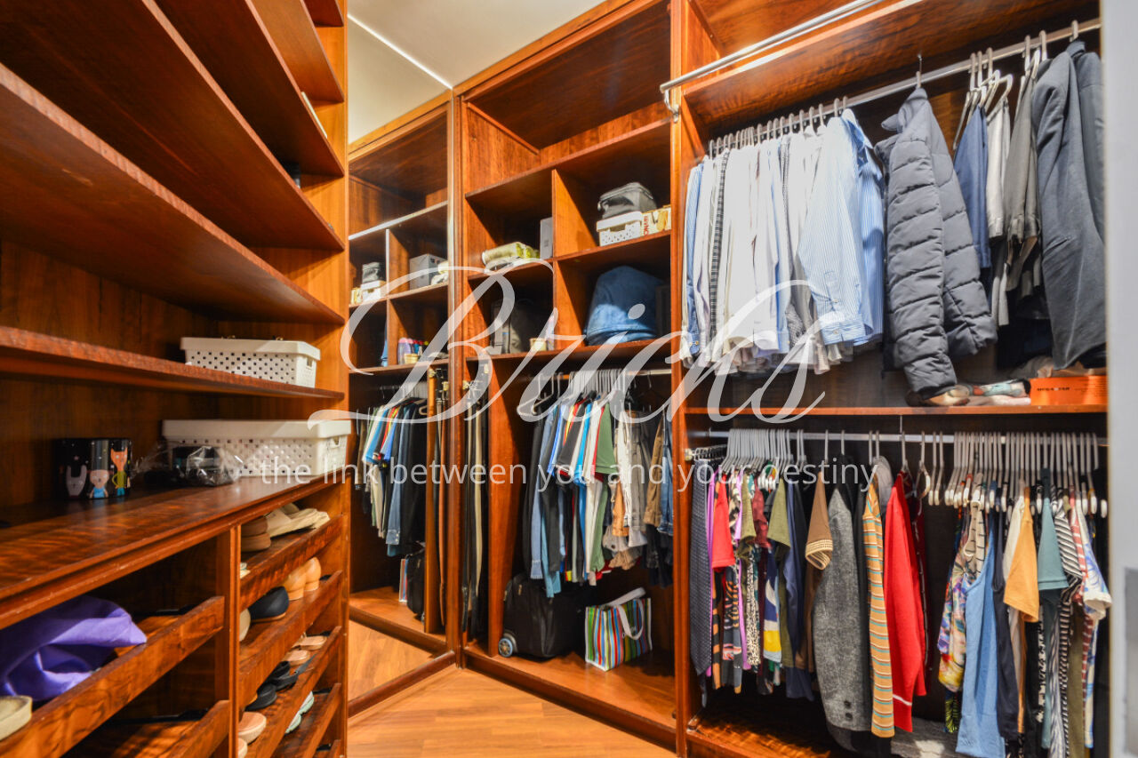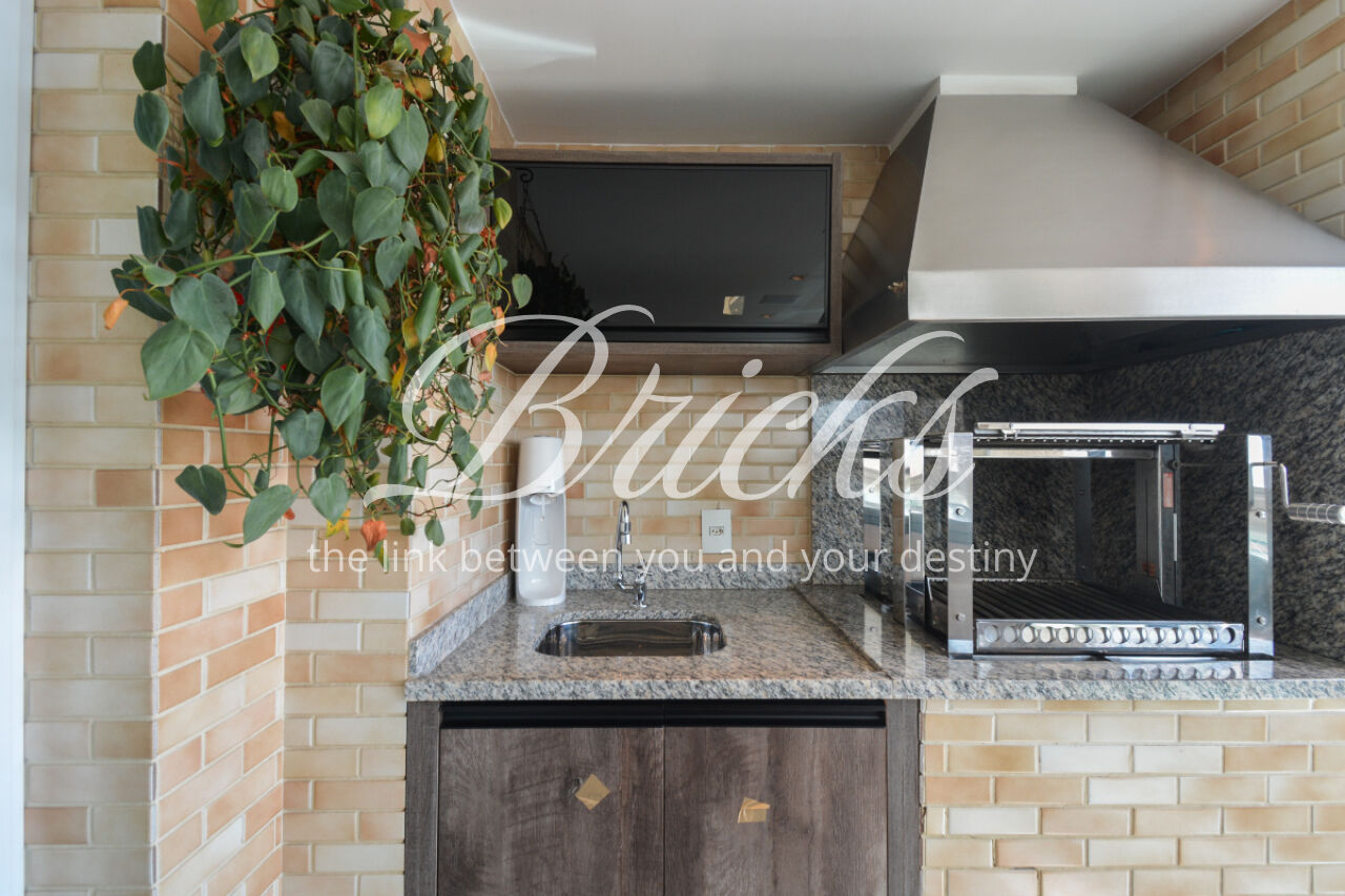 O imóvel está totalmente mobiliado e equipado, pronto para morar, e dispõe de quatro suítes amplas, todas com varanda, ar-condicionado, closet e armários em madeira maciça, sendo que três delas contam com banheira. A sala de estar, com impressionantes 80m², é integrada a três varandas que proporcionam luminosidade em todas as faces do apartamento, enquanto o hall de entrada e os rodapés da sala foram finalizados em mármore Travertino, reforçando o padrão de sofisticação. A cozinha e a área de serviço Kitchens apresentam acabamentos de altíssimo nível e, como diferencial, há uma adega de mármore com capacidade para 220 garrafas, projetada para manter sua coleção de vinhos sempre na temperatura ideal.