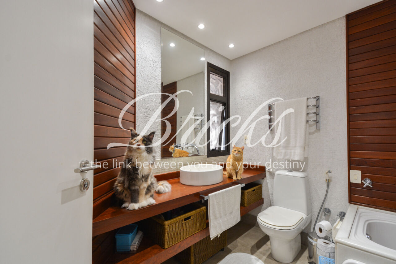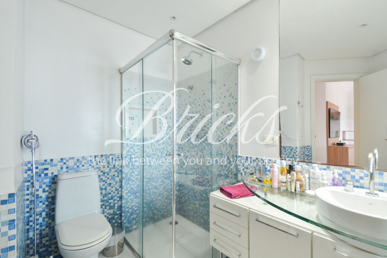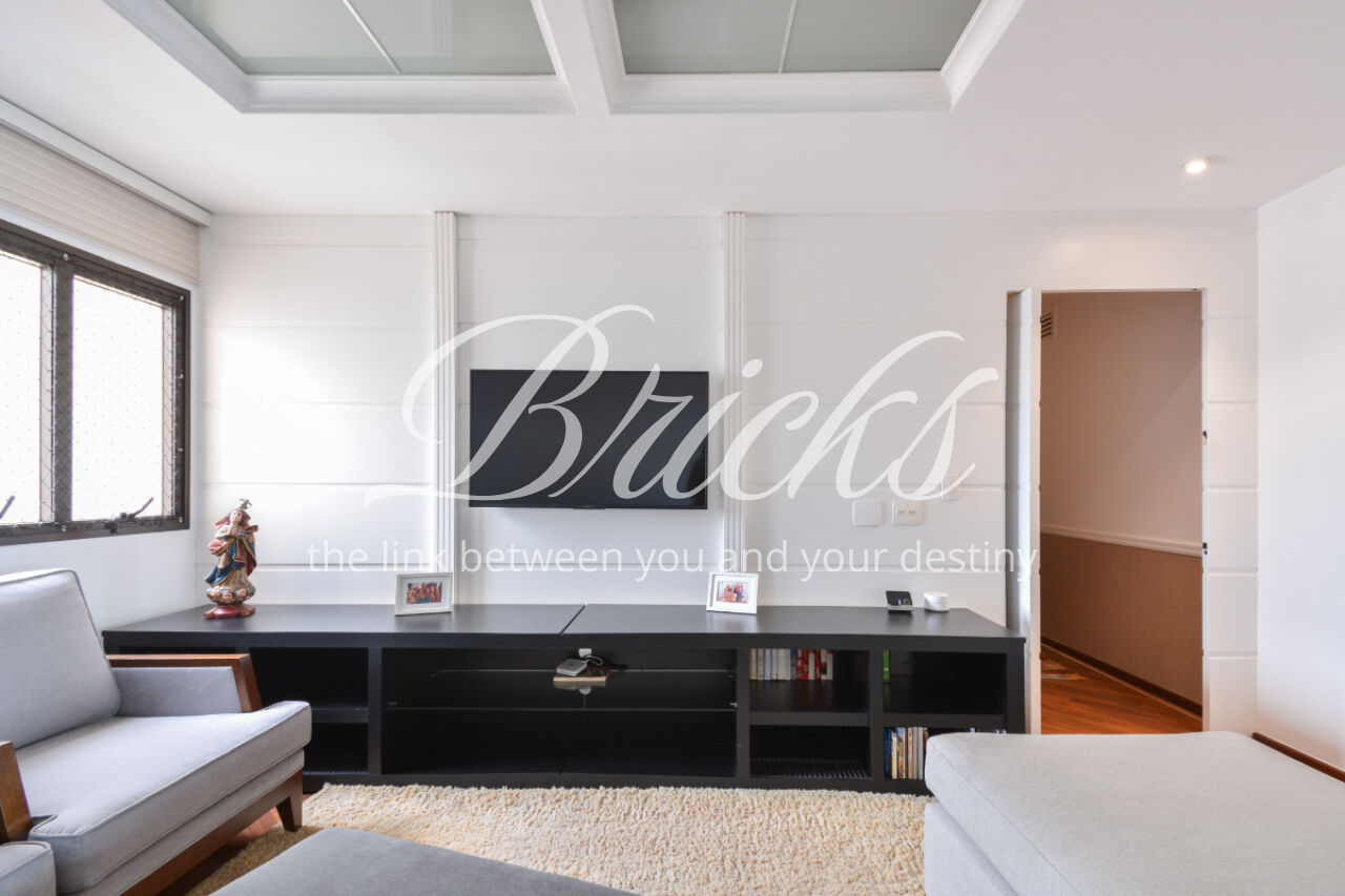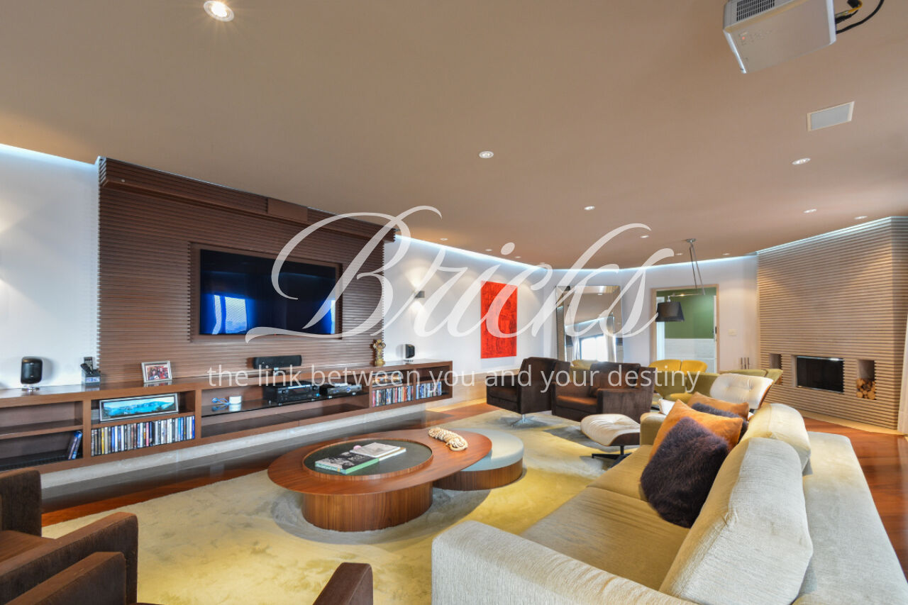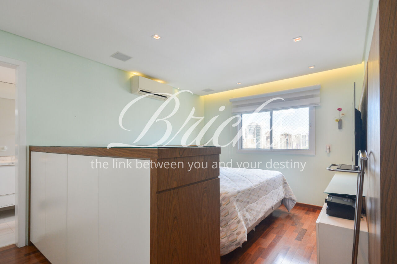 O imóvel está totalmente mobiliado e equipado, pronto para morar, e dispõe de quatro suítes amplas, todas com varanda, ar-condicionado, closet e armários em madeira maciça, sendo que três delas contam com banheira. A sala de estar, com impressionantes 80m², é integrada a três varandas que proporcionam luminosidade em todas as faces do apartamento, enquanto o hall de entrada e os rodapés da sala foram finalizados em mármore Travertino, reforçando o padrão de sofisticação. A cozinha e a área de serviço Kitchens apresentam acabamentos de altíssimo nível e, como diferencial, há uma adega de mármore com capacidade para 220 garrafas, projetada para manter sua coleção de vinhos sempre na temperatura ideal.