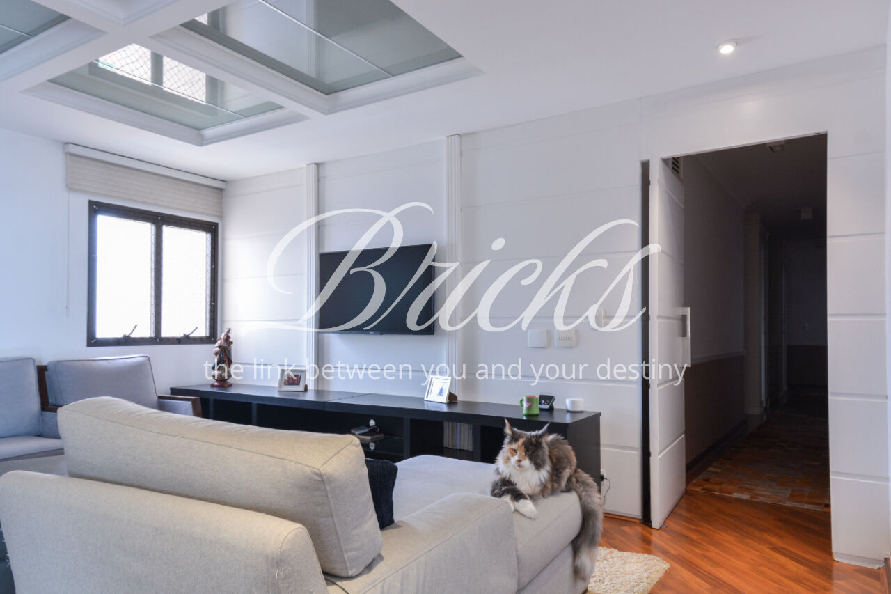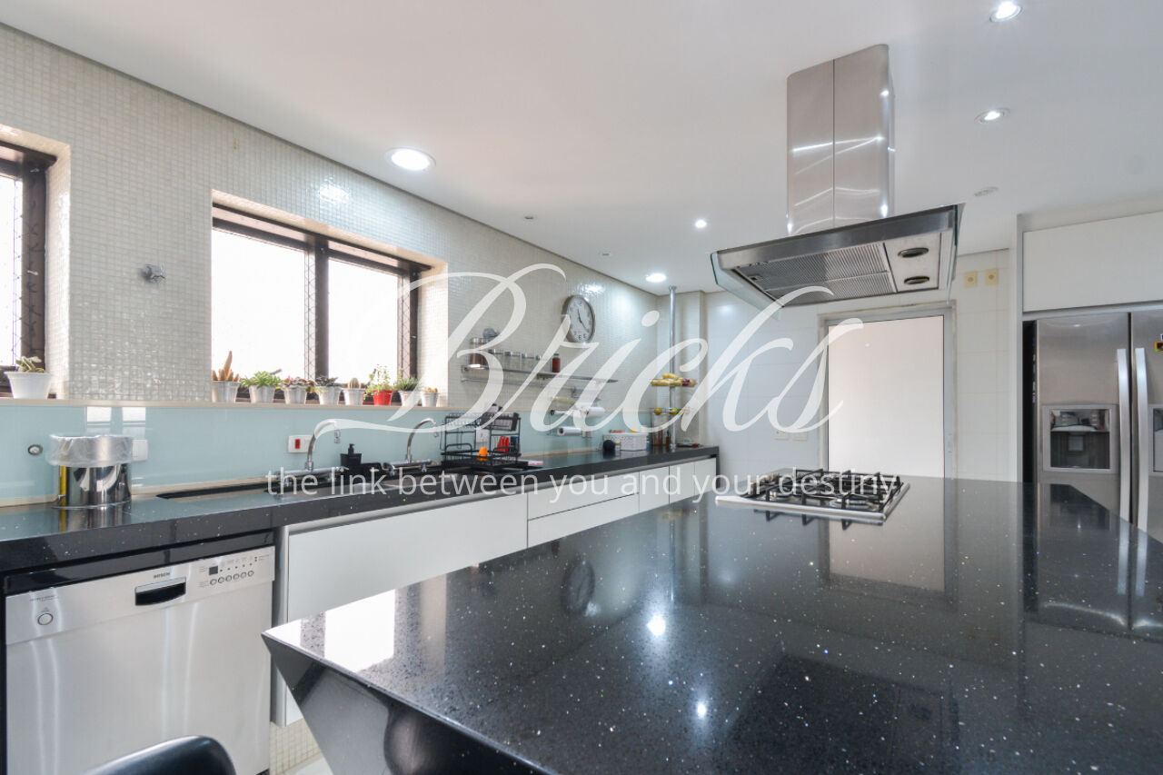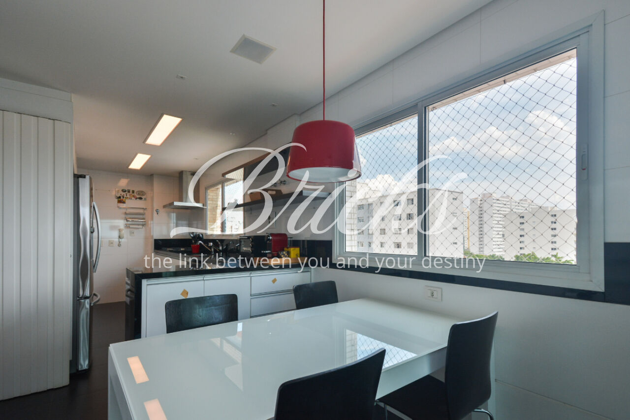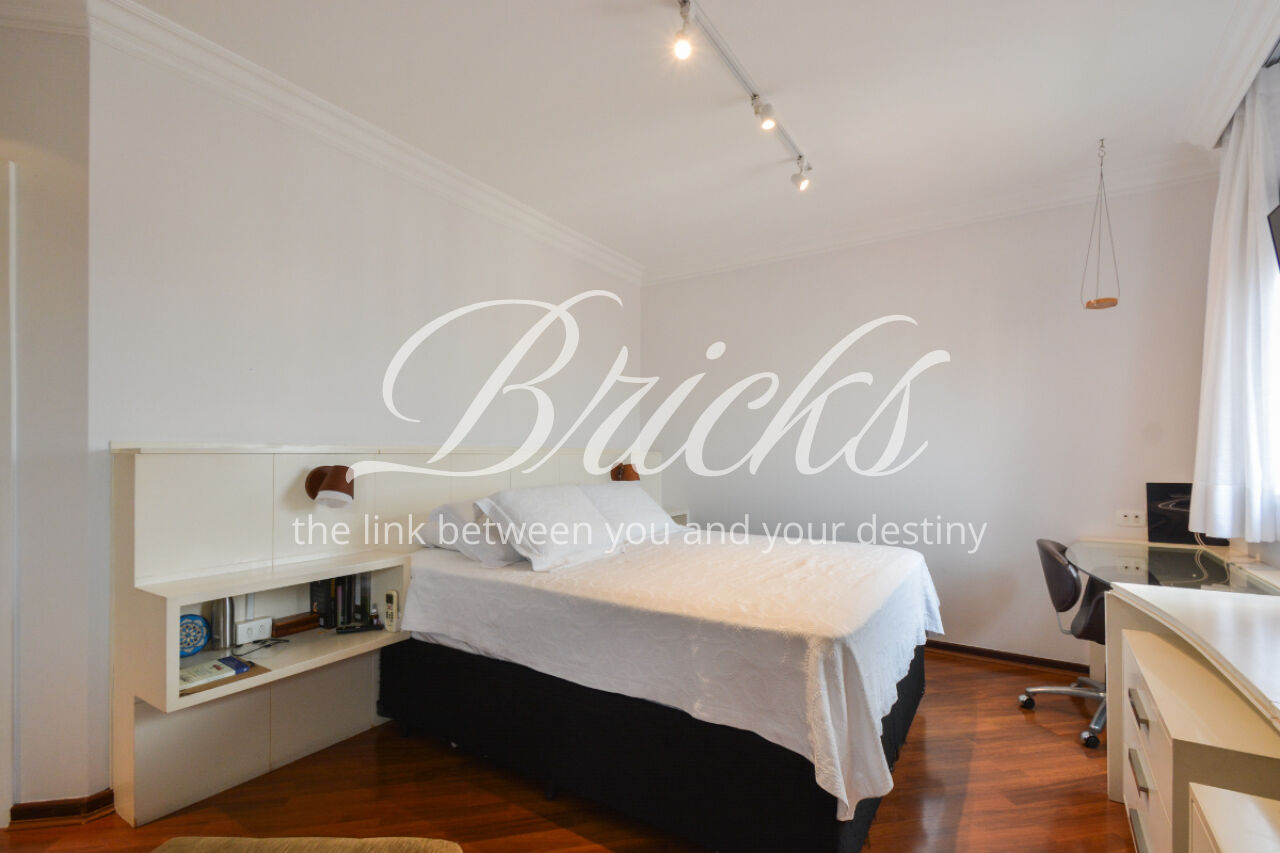 O espaço também oferece escritório, sala de TV íntima e um home Theather totalmente equipado com estrutura para telão, além de um aconchegante jardim de inverno e uma cozinha gourmet com ilha central. A dependência de serviço é completa, com dois quartos, sala e banheiro, garantindo funcionalidade no dia a dia. Para maior comodidade, o apartamento possui quatro vagas de garagem, além de um box fechado com o tamanho de uma vaga.