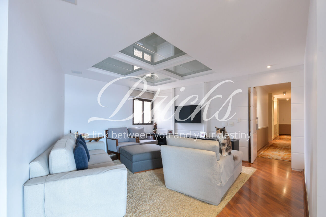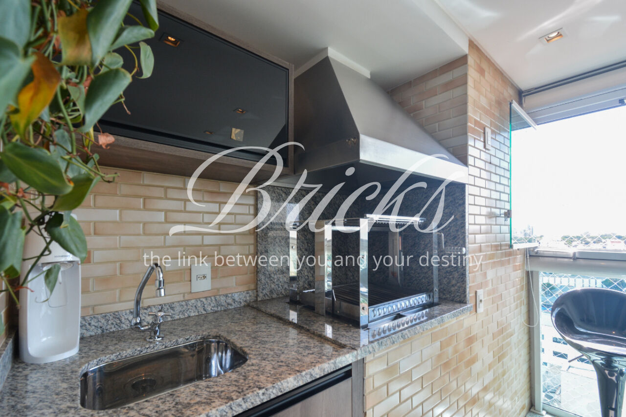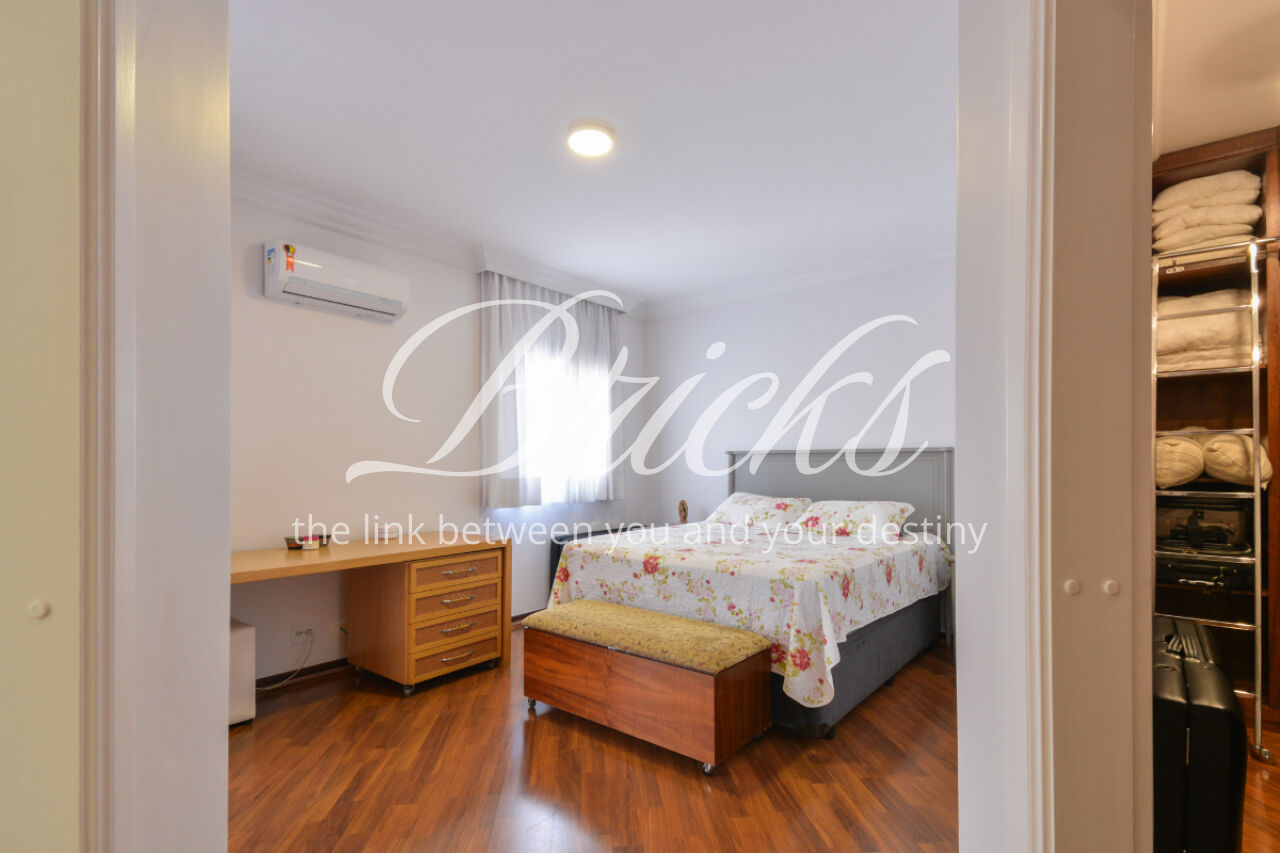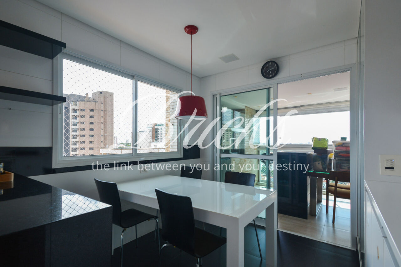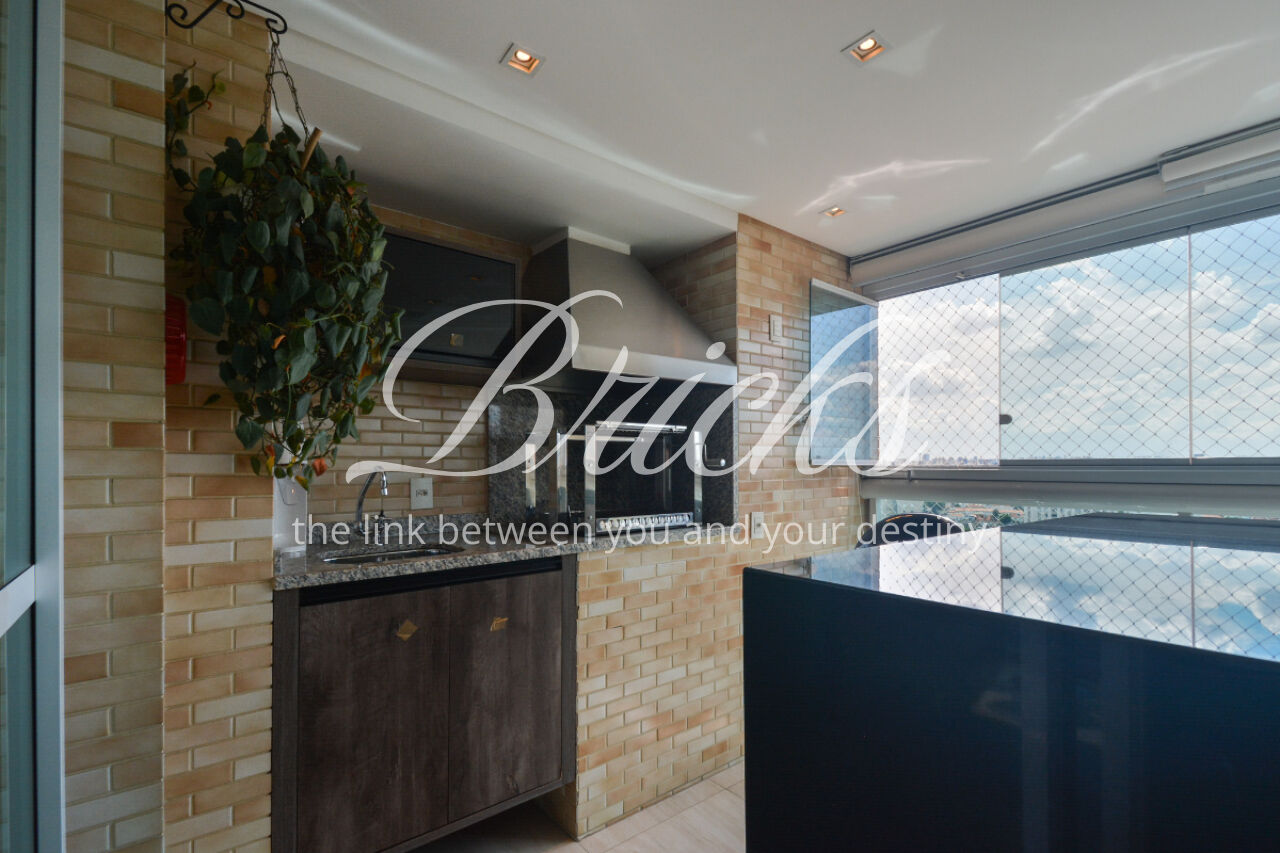 O espaço também oferece escritório, sala de TV íntima e um home Theather totalmente equipado com estrutura para telão, além de um aconchegante jardim de inverno e uma cozinha gourmet com ilha central. A dependência de serviço é completa, com dois quartos, sala e banheiro, garantindo funcionalidade no dia a dia. Para maior comodidade, o apartamento possui quatro vagas de garagem, além de um box fechado com o tamanho de uma vaga.