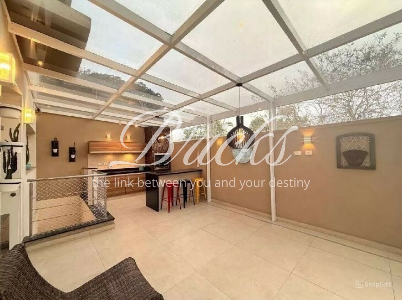 Destaque para a boa distribuição de planta e pelo jardim com churrasqueira .