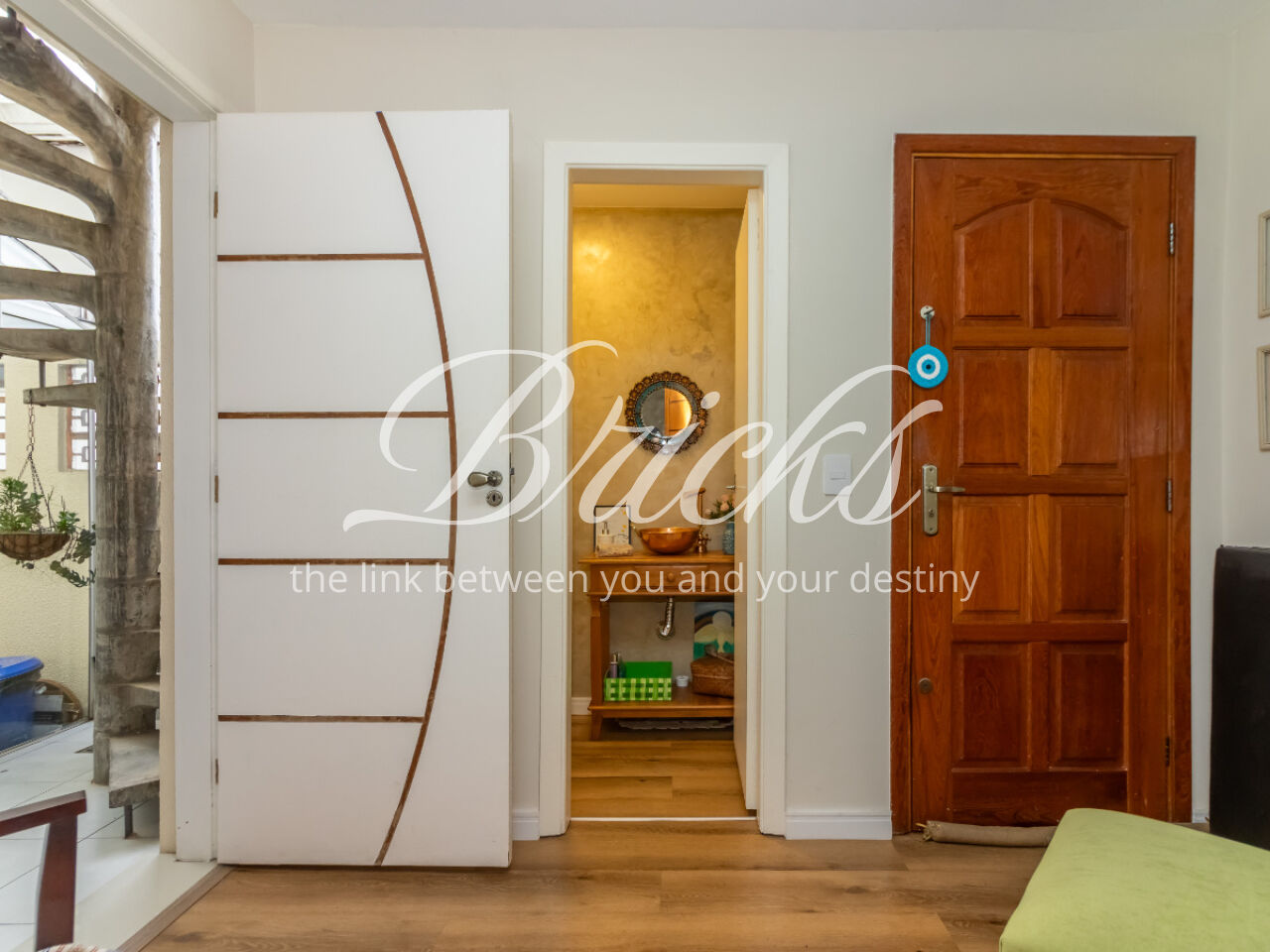 No térreo, há também um lavabo, lavanderia espaçosa e um ambiente independente com hall, quarto e lavabo perfeito para quem trabalha de casa, precisa de um estúdio criativo ou deseja receber visitas com total privacidade. Esse espaço conta, inclusive, com entrada separada da principal.