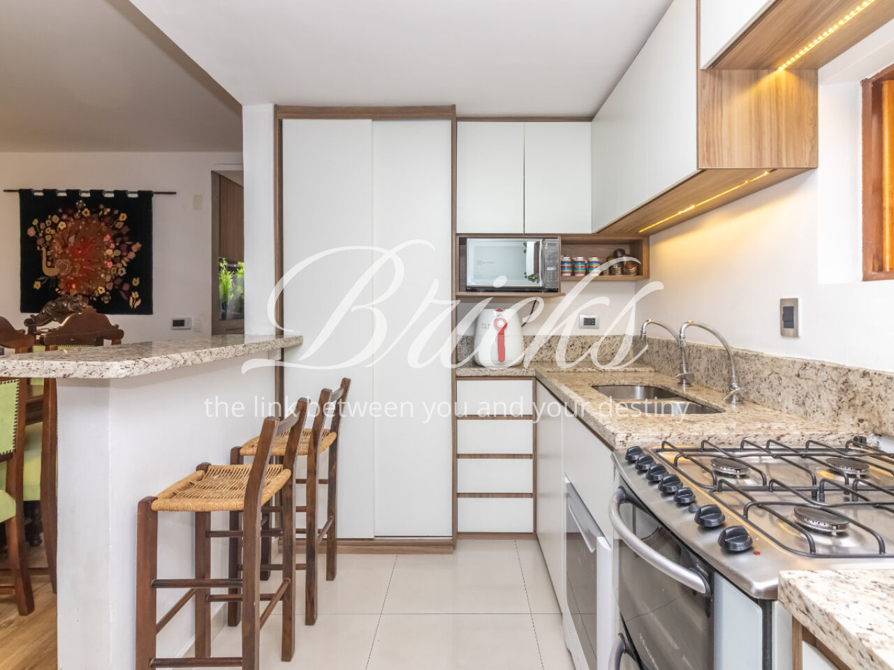 Com ambientes integrados e muita luz natural, ela foi pensada para o dia a dia de quem valoriza conforto e convivência. A sala de estar, totalmente reformada, se conecta a sala de jantar e a cozinha americana, criando um espaço amplo e acolhedor, ideal para reunir a família e os amigos.