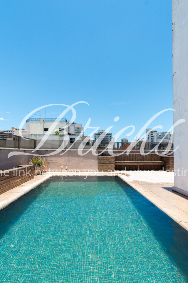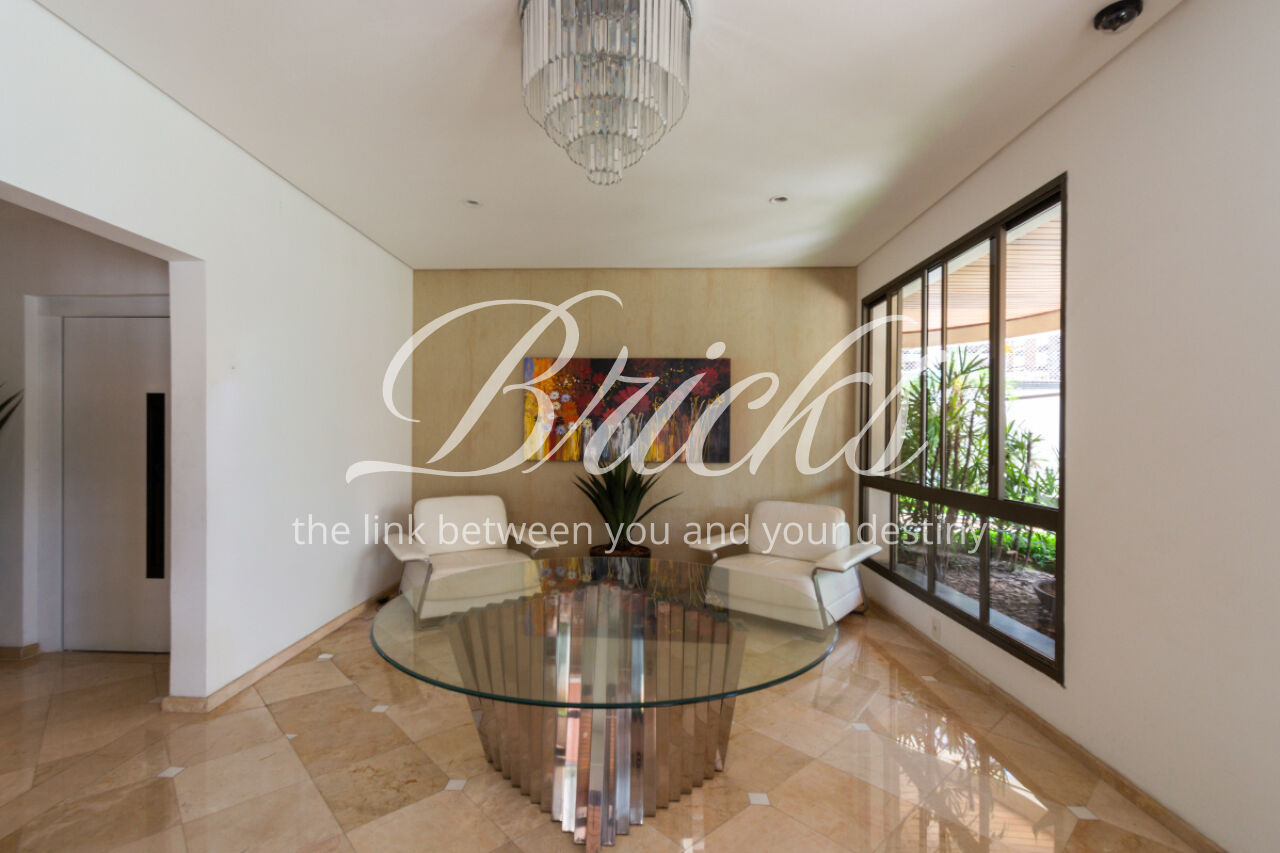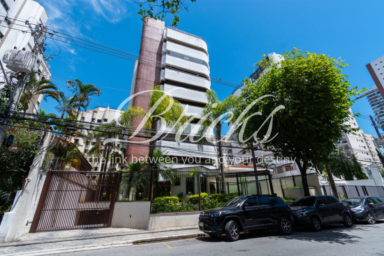 O prédio é discreto e exclusivo, com um apartamento por andar. A cobertura conta com 5 vagas de garagem e depósito privativo. Ele conta ainda com piscina e salão de festas