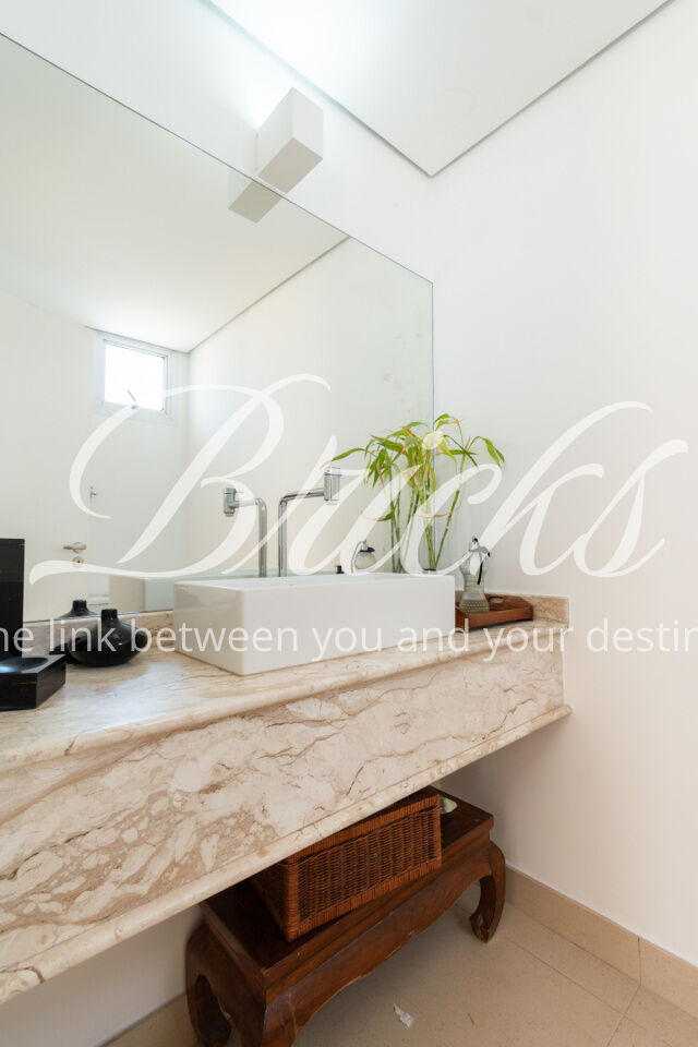 No piso inferior, a área social é bem distribuída e funcional, com sala de estar, sala de jantar e sala de almoço. A varanda próxima à área social é um convite para sentar, conversar, ler ou simplesmente ficar ali, ouvindo os passarinhos algo raro para um endereço tão bem localizado. Na área íntima, há um espaço de distribuição que pode funcionar como sala de TV ou home office.