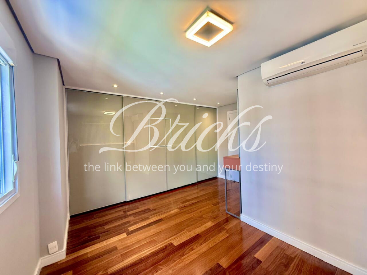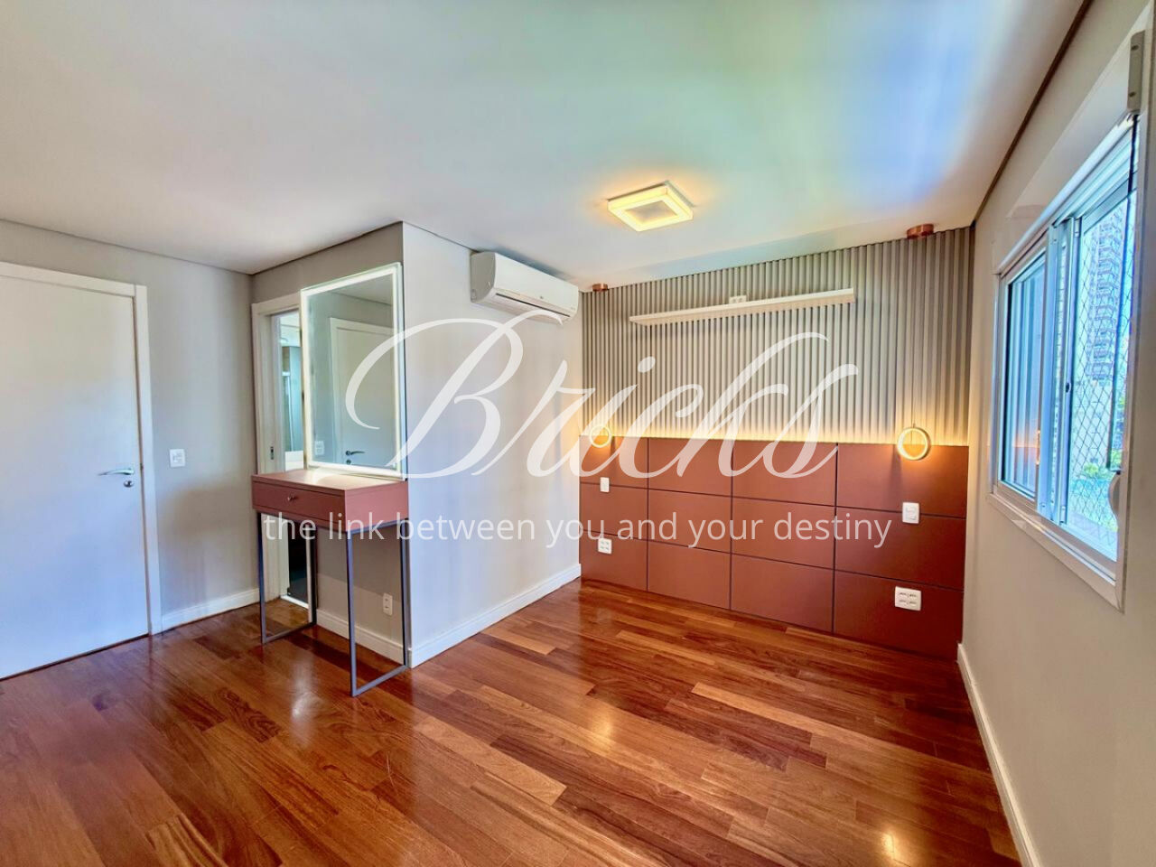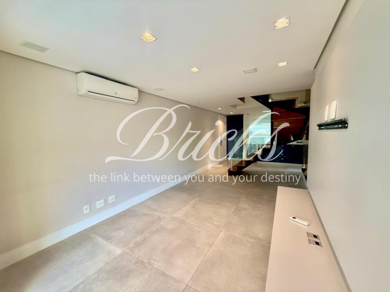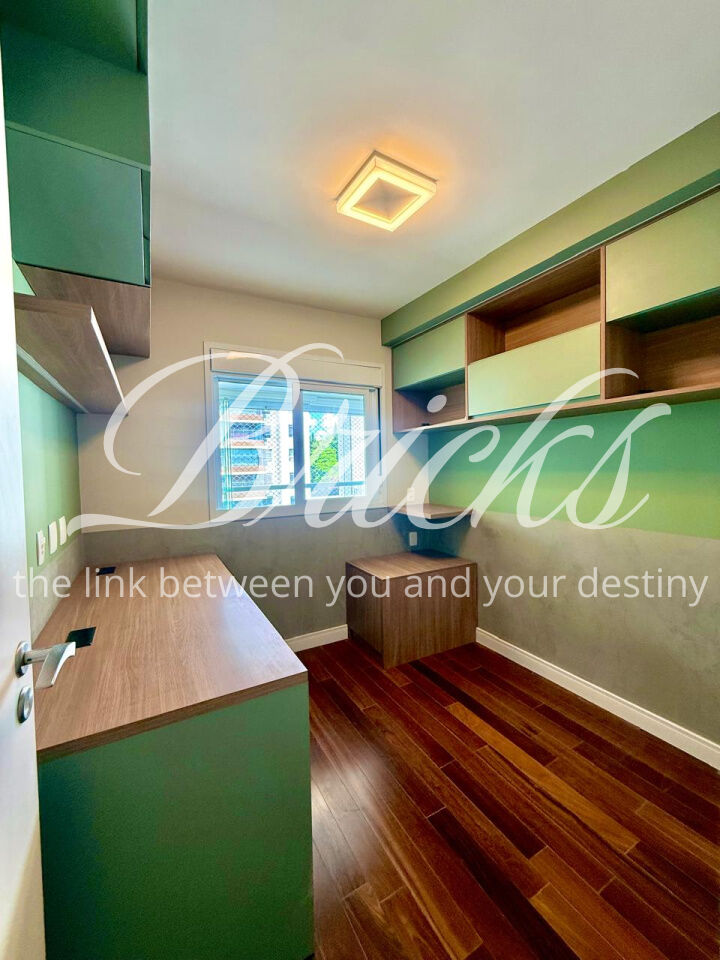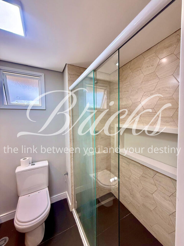 São 3 dormitórios, sendo 1 suíte, todos com móveis planejados, além de ar-condicionado na sala, em todos os quartos e na sala de TV do segundo andar, garantindo conforto térmico em todos os ambientes.