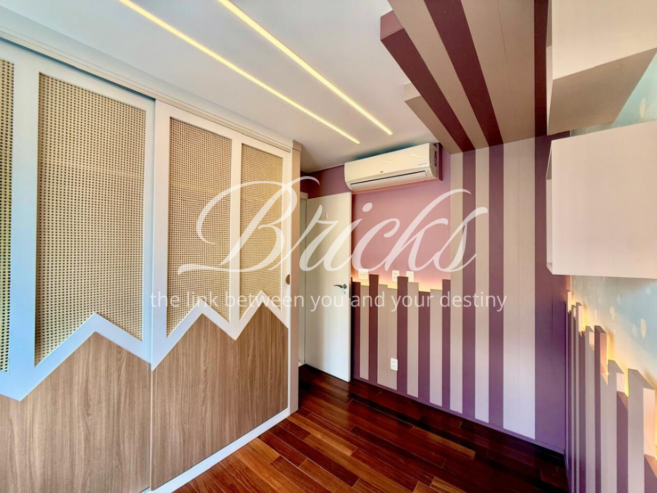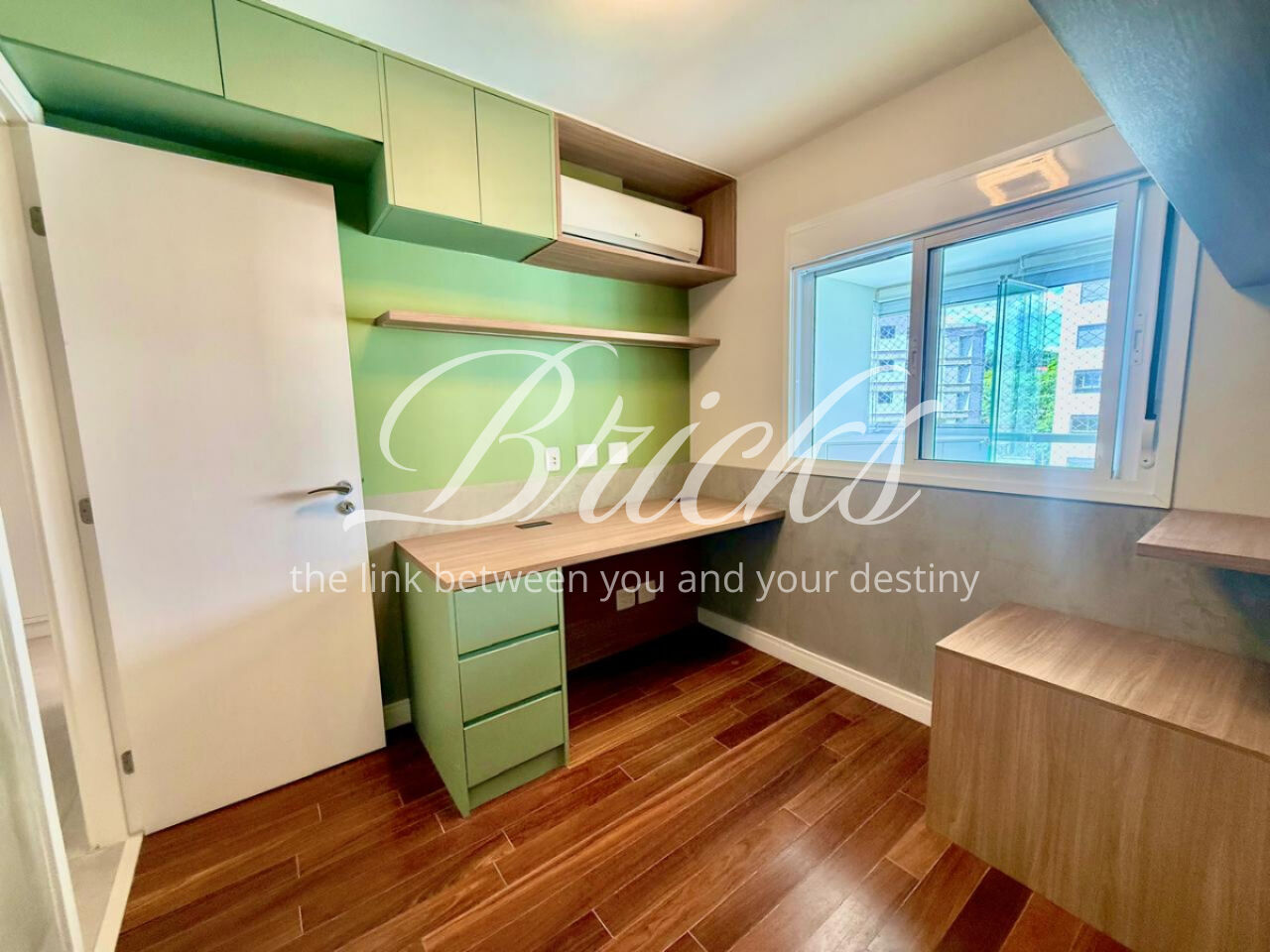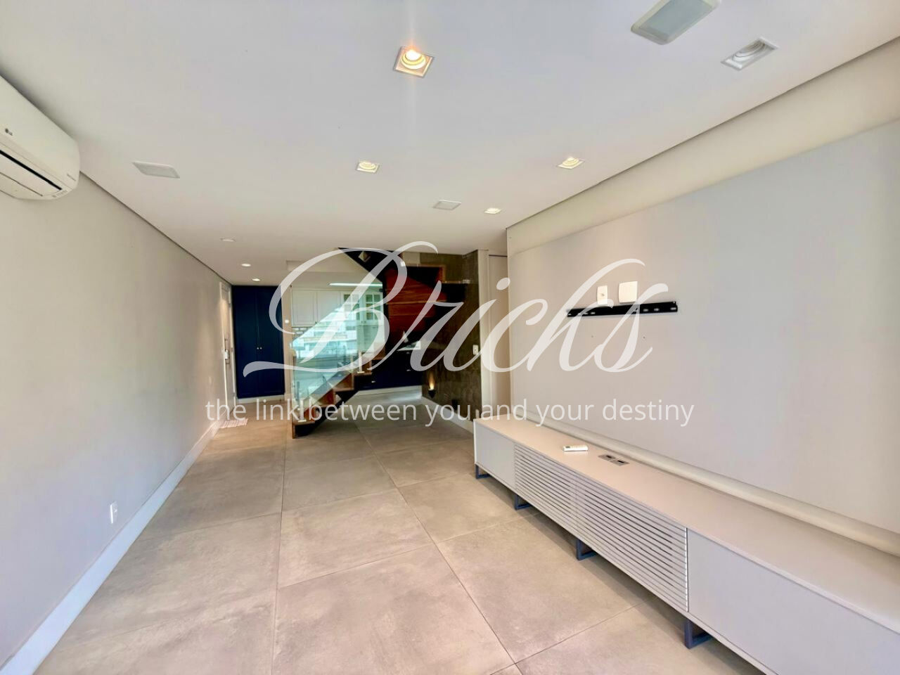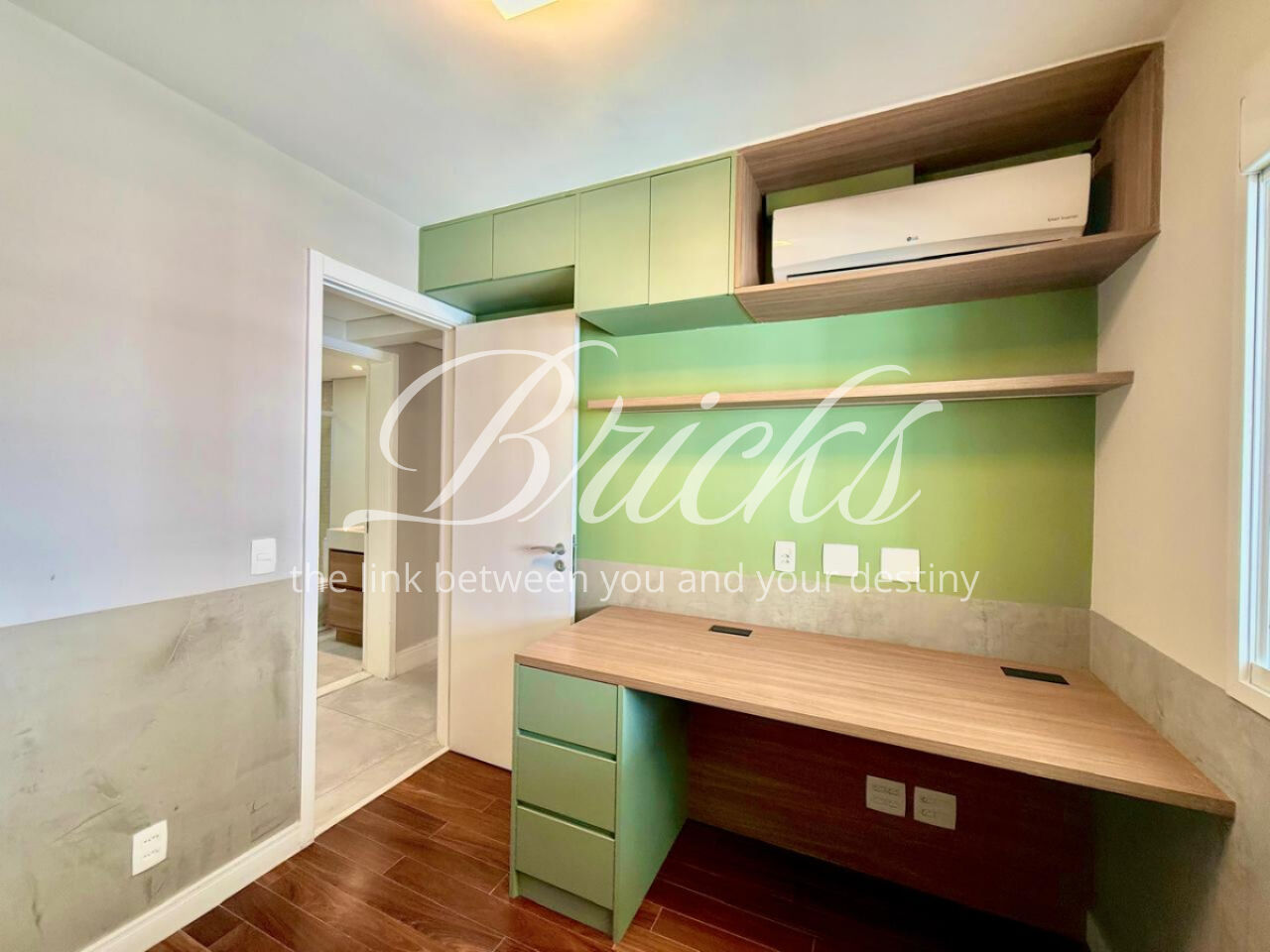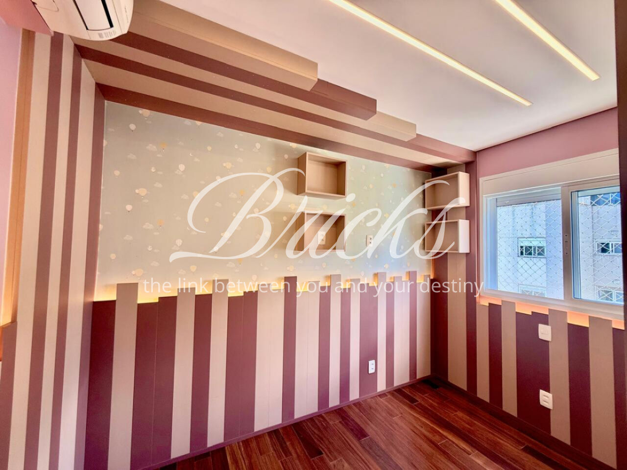 São 3 dormitórios, sendo 1 suíte, todos com móveis planejados, além de ar-condicionado na sala, em todos os quartos e na sala de TV do segundo andar, garantindo conforto térmico em todos os ambientes.