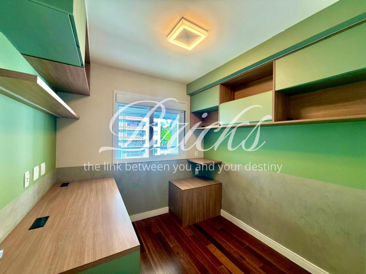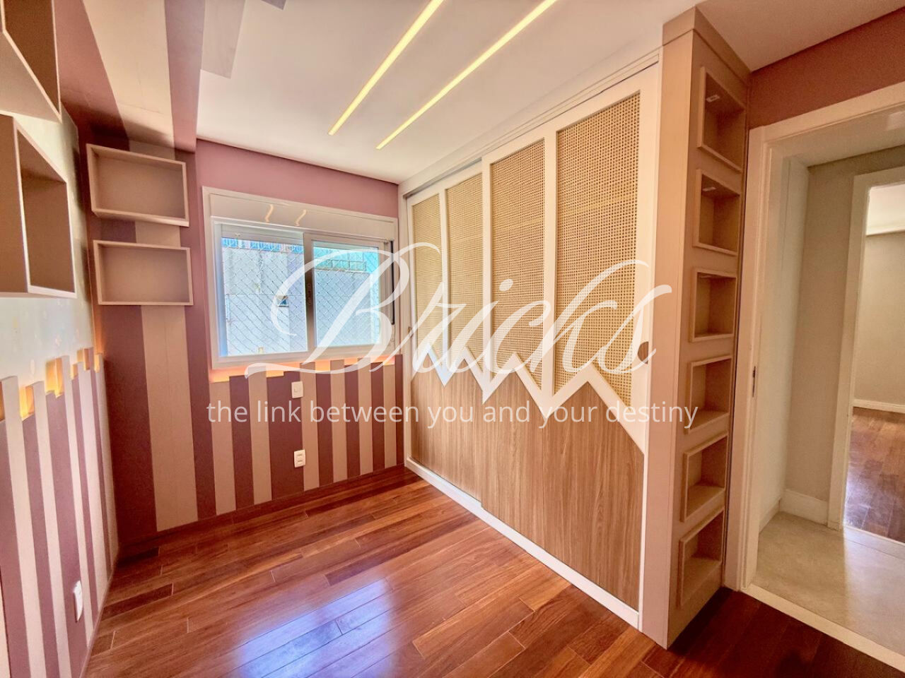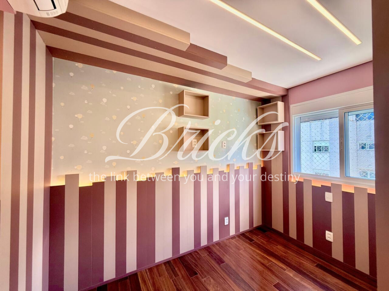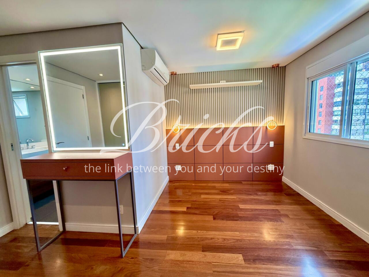 São 3 dormitórios, sendo 1 suíte, todos com móveis planejados, além de ar-condicionado na sala, em todos os quartos e na sala de TV do segundo andar, garantindo conforto térmico em todos os ambientes.