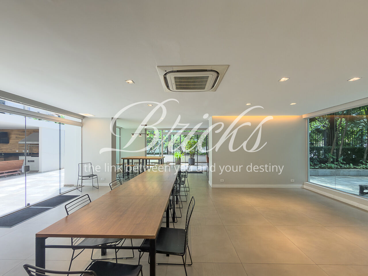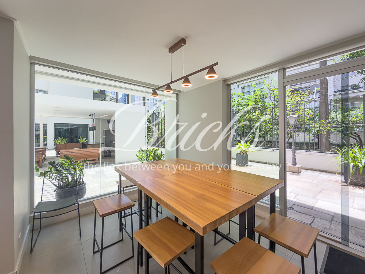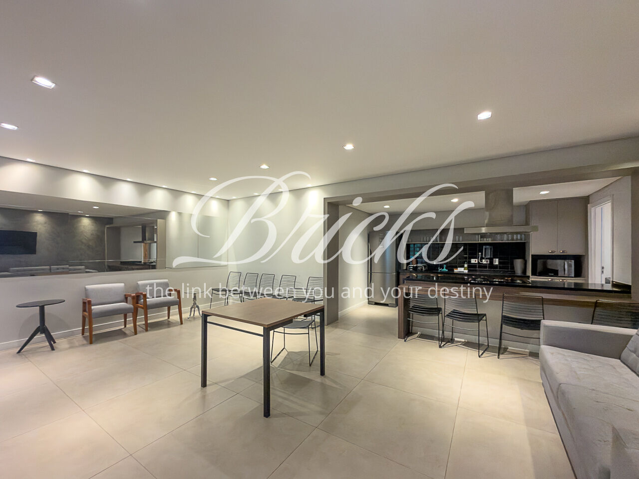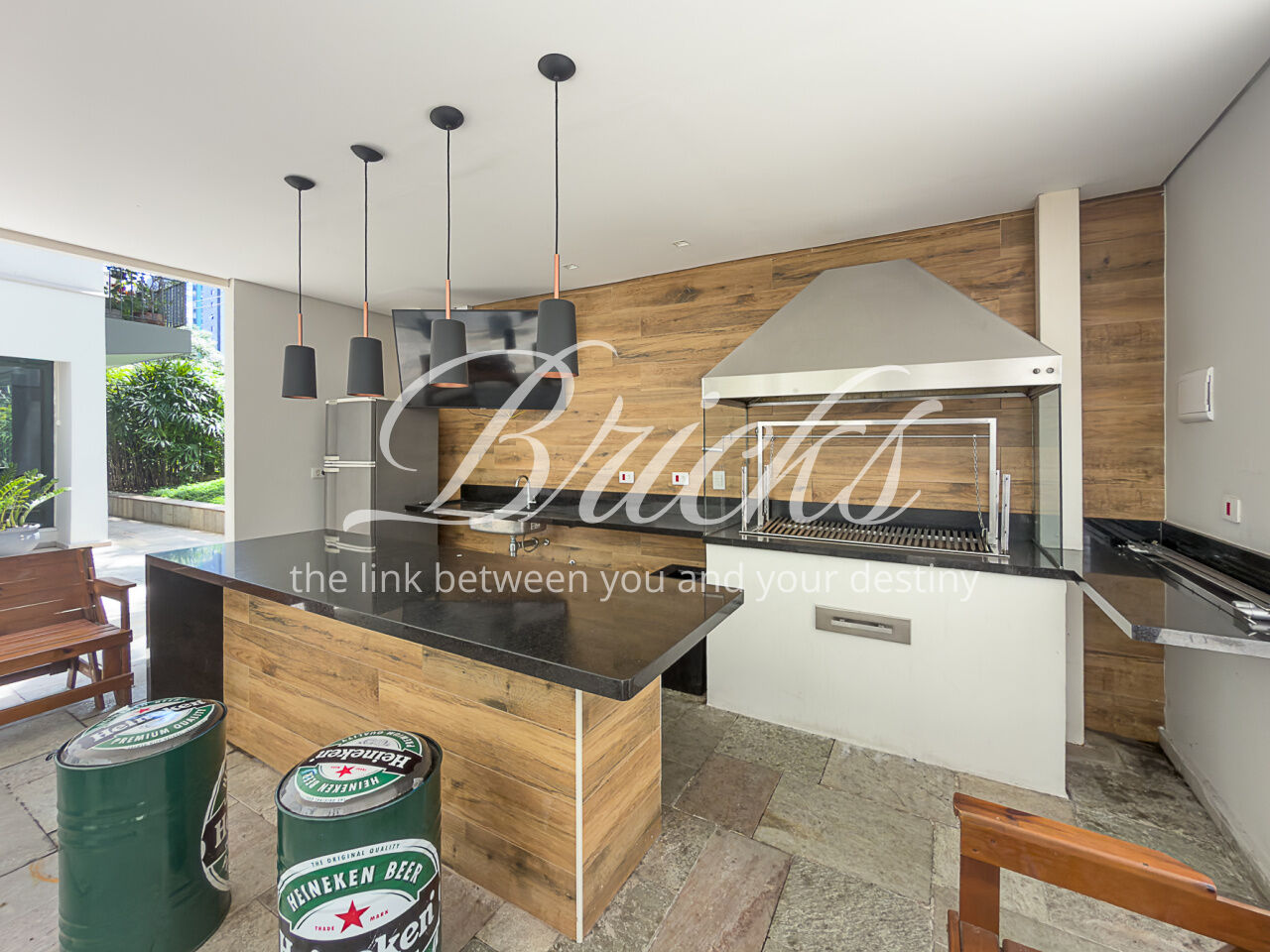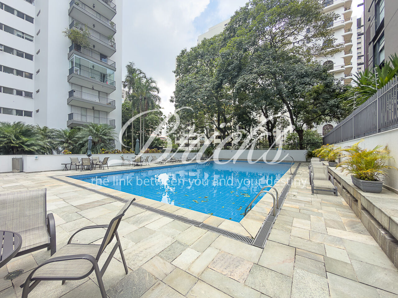 A área externa também conta com uma piscina com controle de temperatura, com acesso a um banheiro que se conecta à sauna, além disso há uma sala de TV/escritório, ideal para momentos de relaxamento e para o home office.