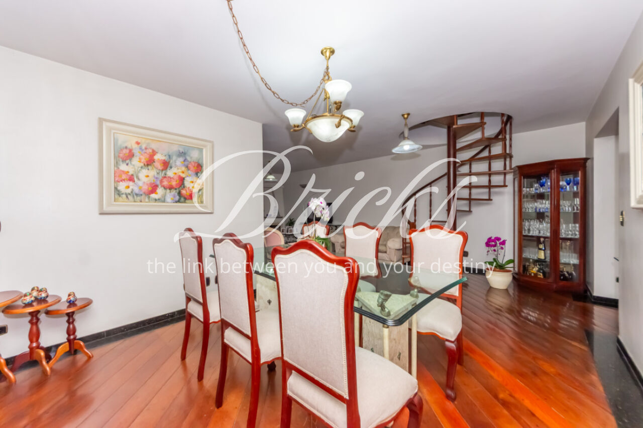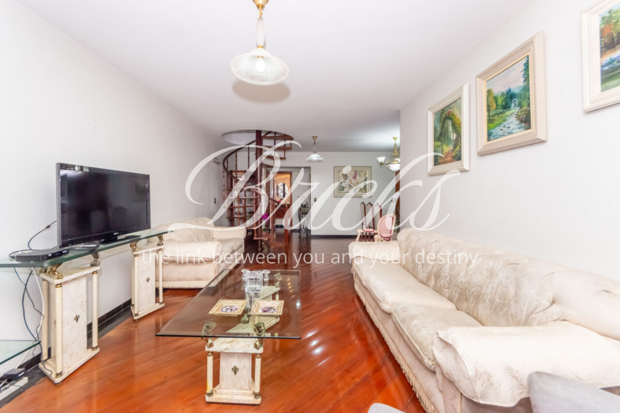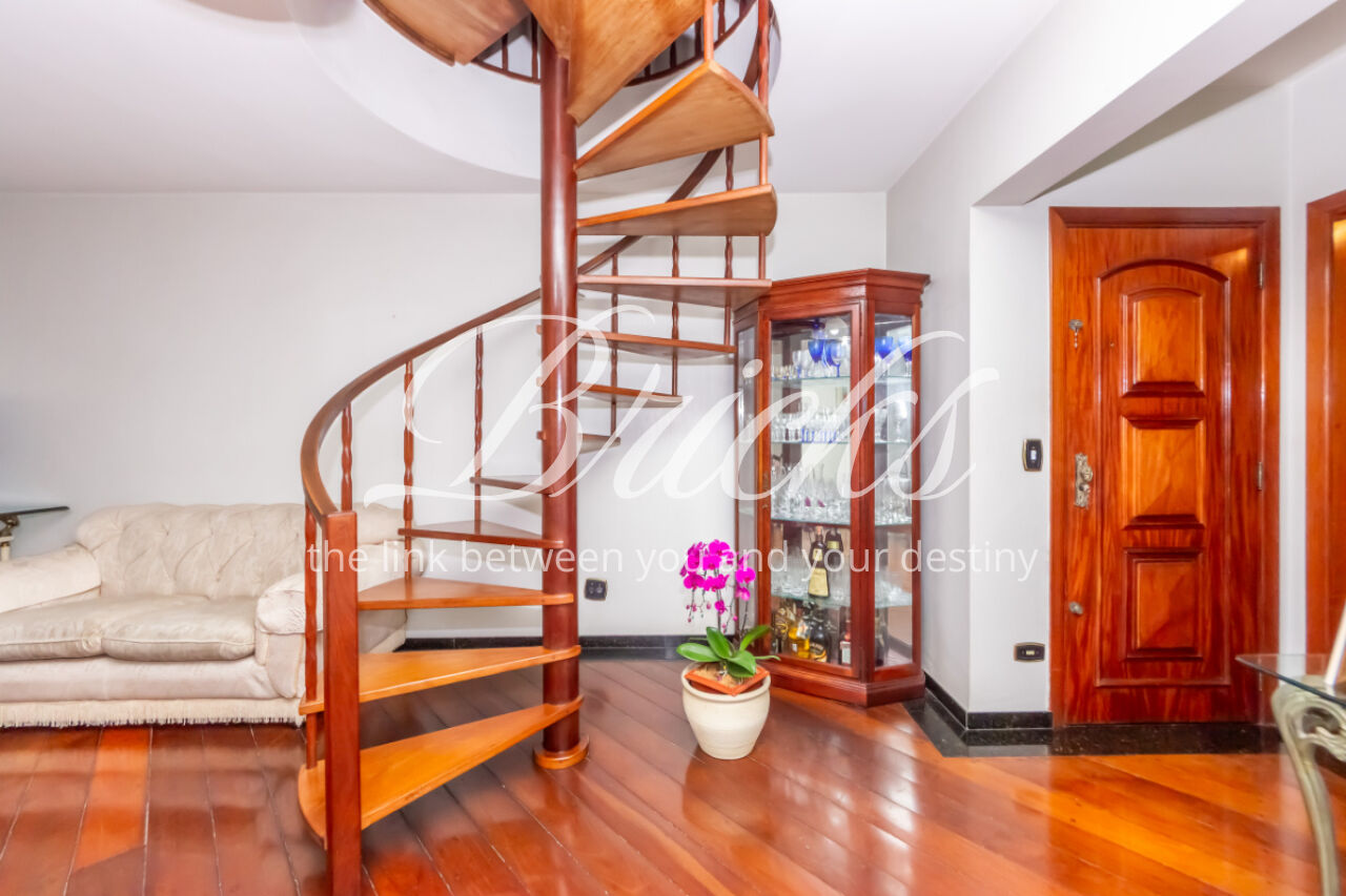 Belíssima Cobertura, na Vila Mariana, conta com quatro dormitórios (4 quartos), sendo 2 suítes, todos eles com armários embutidos, seis banheiros ao todo (incluindo o de serviço) -, ampla sala para dois ambientes, sala de estar (living) e sala de jantar, cozinha repleta de armários, dependência de serviço completa (quarto e banheiro), despensa, lavanderia (área de serviço) e 3 vagas de garagem para carro. Além de, no piso superior, contar com sala, cozinha, banheiro, área gourmet - com churrasqueira e forno de pizza - e piscina privativa.