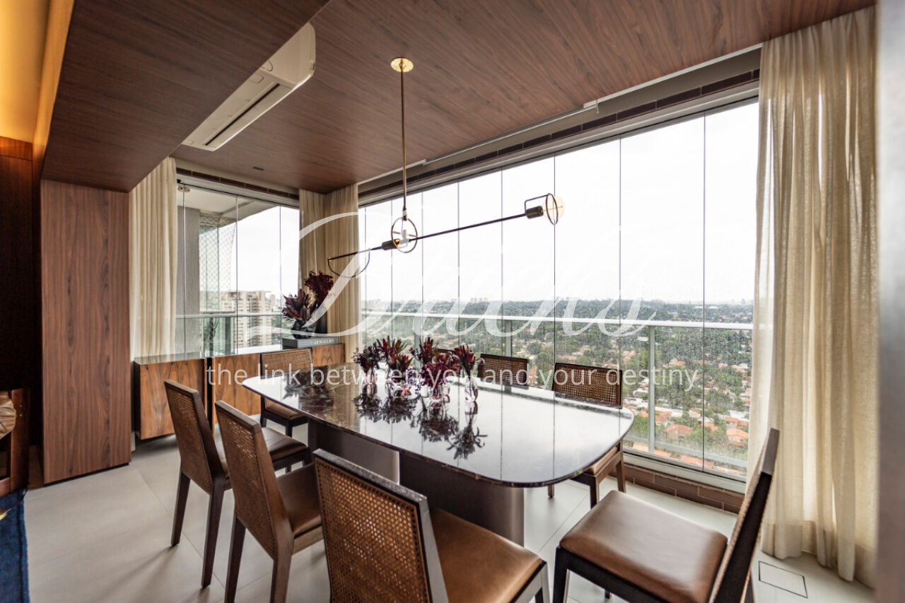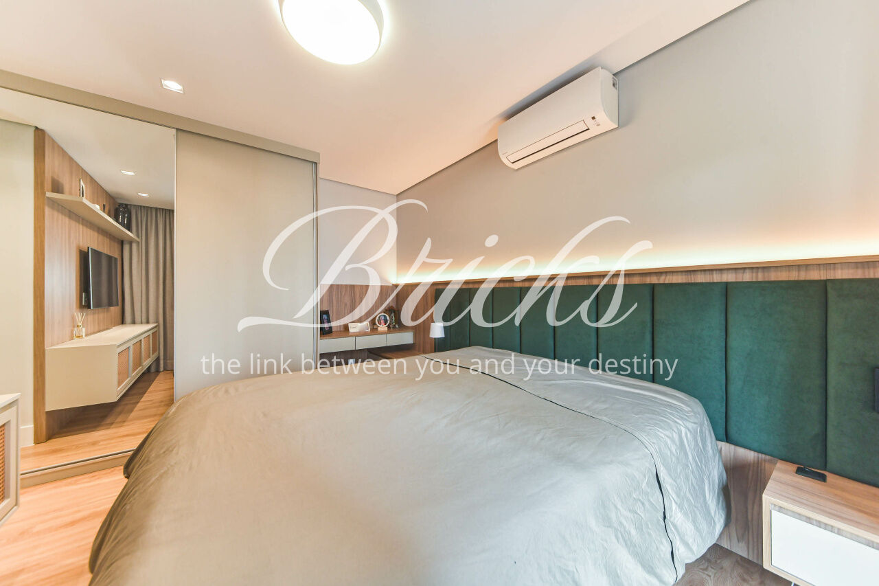 Apartamento em andar alto com uma personalidade ÚNICA e uma VISTA espetacular!!!! É o pôr do sol mais lindo que já vi de uma varanda, acredite!!! São 143 metros quadrados com 1 suíte, tem a opção de fazer o segundo dormitório. Planta muito bem distribuída com integração total da sala com a cozinha e a varanda já nivelada, lavabo, suíte master com closet e banheiros Sr. e Sra., ambos com ventilação natural e uma vista deslumbrante!! O imóvel é supermoderno e tudo foi planejado com muito bom gosto nos mínimos detalhes com marcenaria premium, pedras nobres em todos os banheiros e na cozinha, além de Ar-condicionado em todos os ambientes, além de área serviço, 3 vagas de garagens e depósito no subsolo.